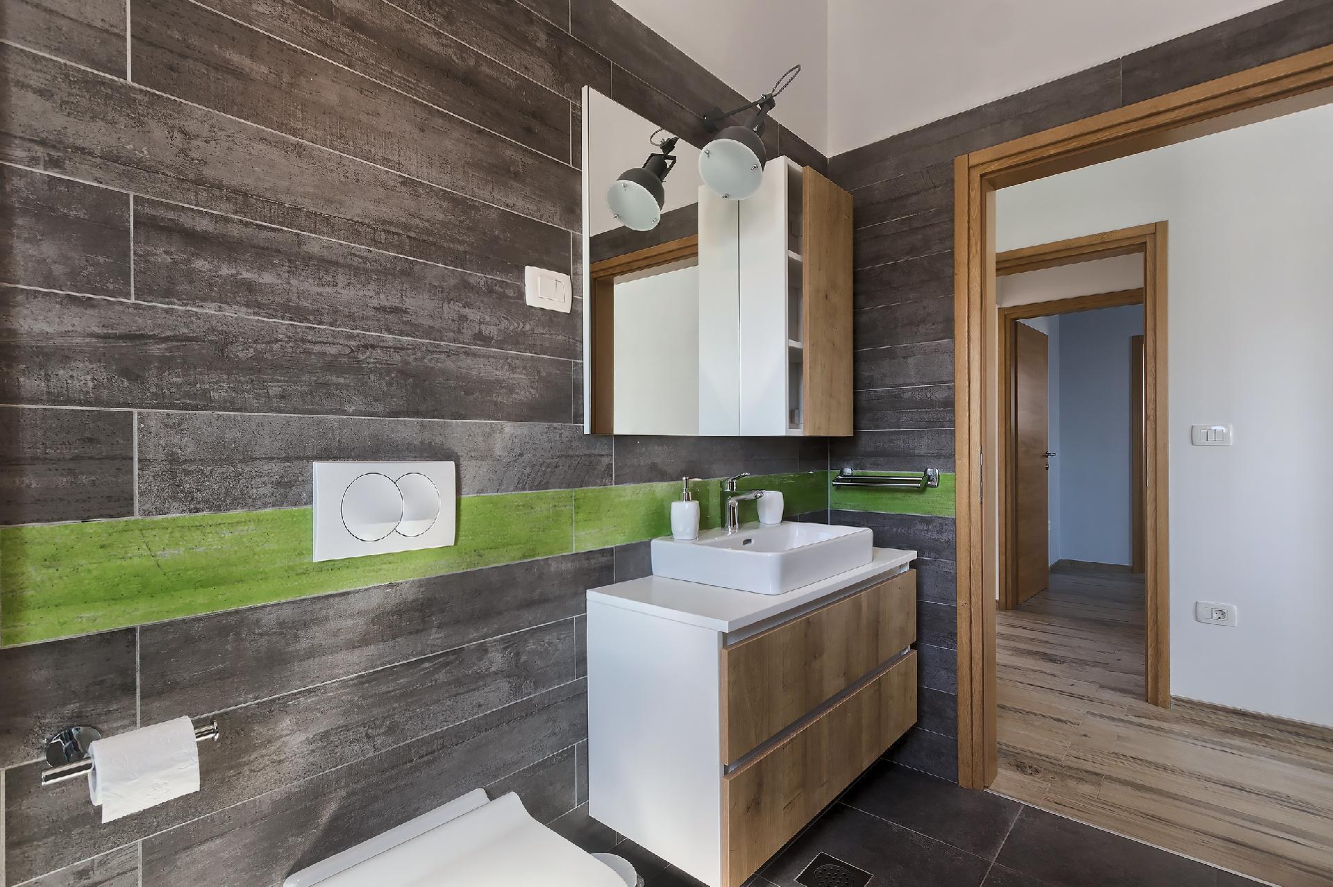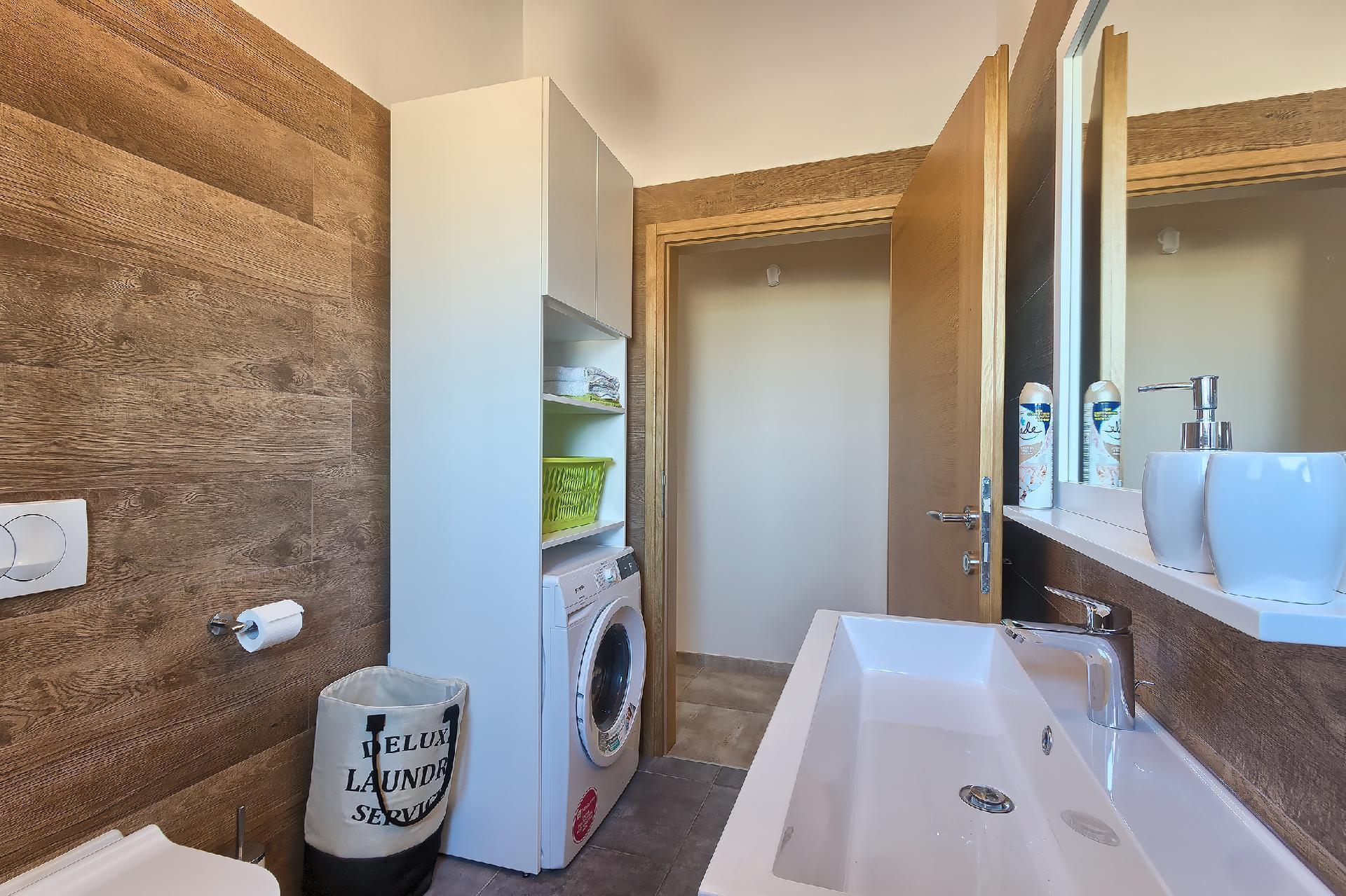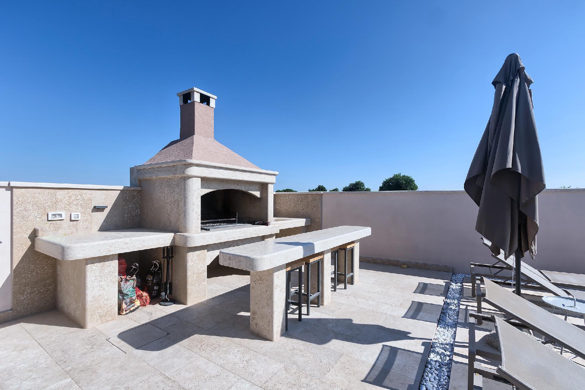 Modern and stylishly furnished villa with private pool. Modern and magical holiday house in Jadreski near Pula with a private pool for 8 people is ideal for a relaxing family vacation. Villa Tea consists of a fully equipped modern kitchen and a living room. The spacious and relaxing living room opens onto a terrace with a dining table, swimming pool and barbecue area. Two bedrooms with private bathroom are located on the ground floor. The first floor of this newly built house consists of two bedrooms with two bathrooms. The rental price includes internet use, air conditioning in each room, bed linen and towels. Private parking is located in a fenced yard. Come to Villa Tea with your family or friends and spend an unforgettable vacation in Istria.