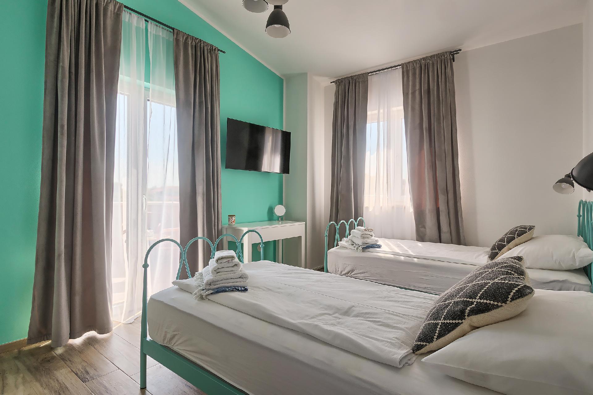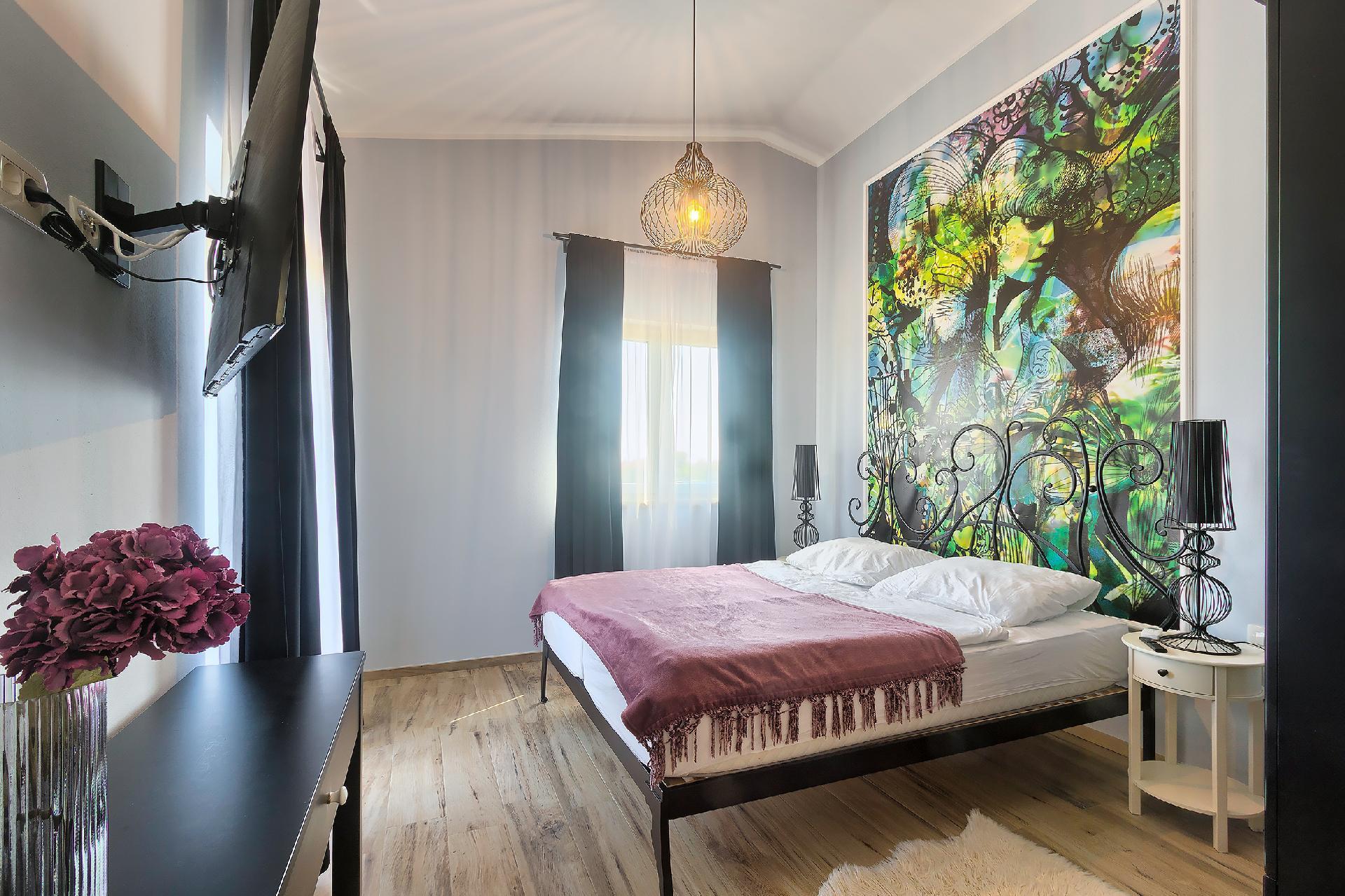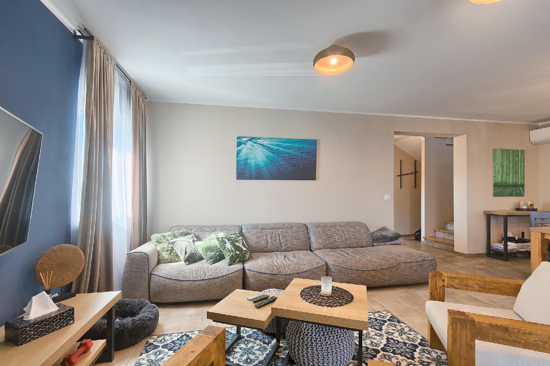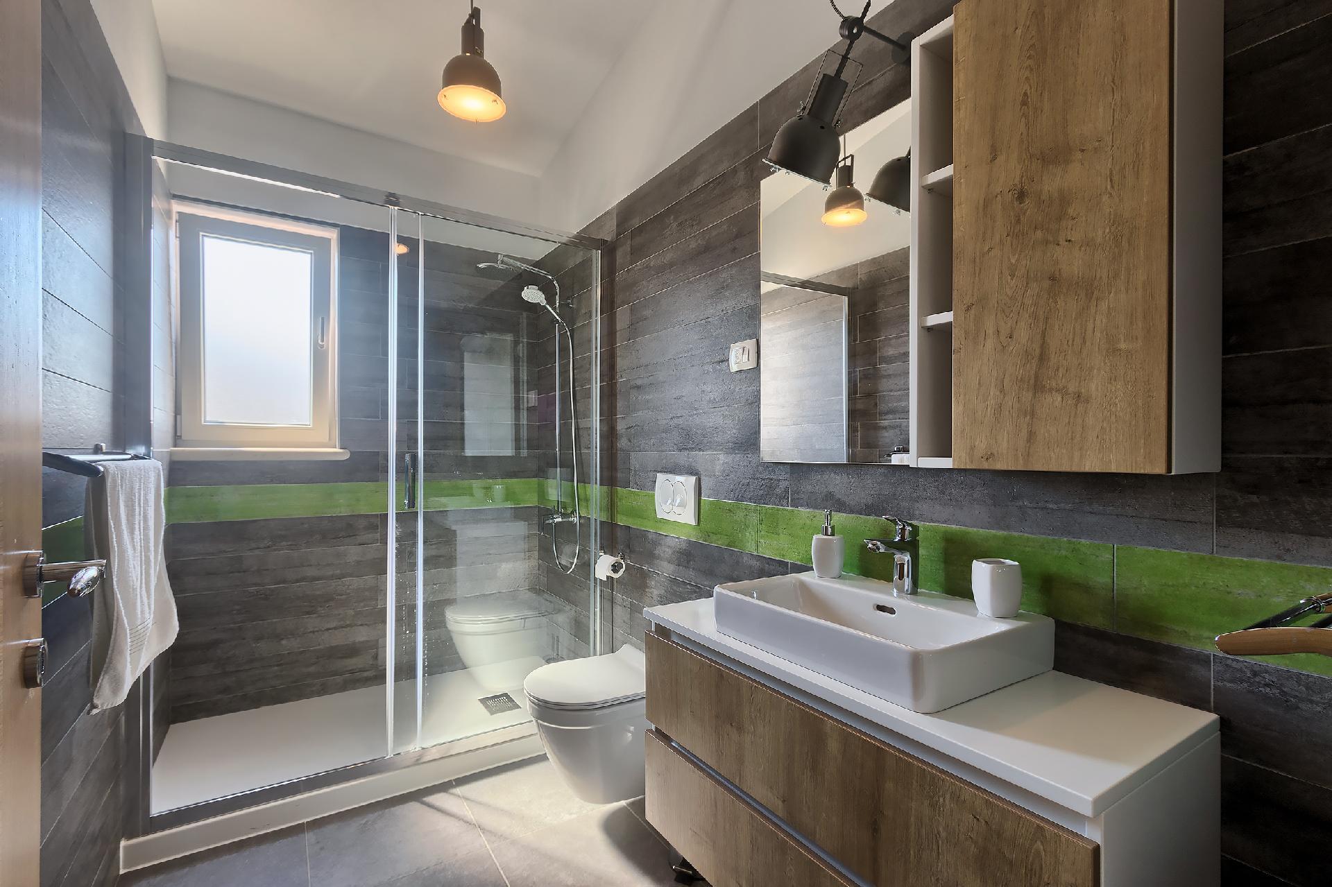 Modern and stylishly furnished villa with private pool. Modern and magical holiday house in Jadreski near Pula with a private pool for 8 people is ideal for a relaxing family vacation. Villa Tea consists of a fully equipped modern kitchen and a living room. The spacious and relaxing living room opens onto a terrace with a dining table, swimming pool and barbecue area. Two bedrooms with private bathroom are located on the ground floor. The first floor of this newly built house consists of two bedrooms with two bathrooms. The rental price includes internet use, air conditioning in each room, bed linen and towels. Private parking is located in a fenced yard. Come to Villa Tea with your family or friends and spend an unforgettable vacation in Istria.