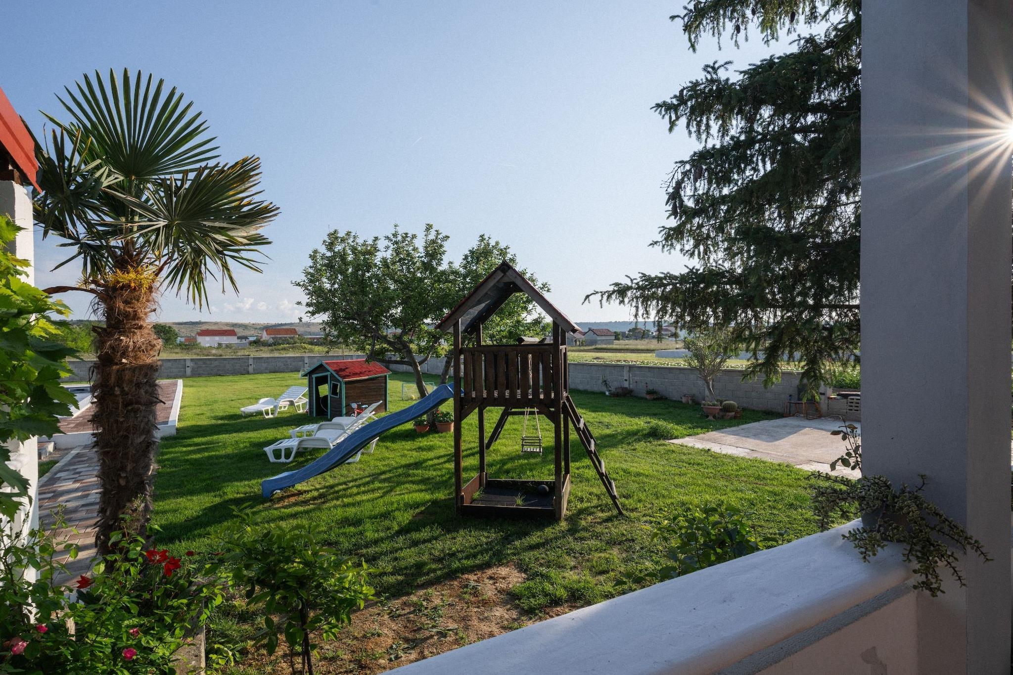 House Rose with Garden and Pool is a charming vacation rental located in Ljubac, a picturesque village near Zadar County, Croatia. This property is known for its inviting atmosphere and beautiful outdoor spaces, making it an ideal destination for relaxation and leisure. This house provides a peaceful retreat with modern comforts and beautiful outdoor spaces, perfect for enjoying the stunning natural beauty of Croatia’s coastline while being close to the cultural richness of Zadar. Note: Baby cot is available on request. Pets are allowed with notice. Private parking, reservation is not required. Wi-Fi is available throughout the property. This three-bedroom can accommodate up to fourteen guests. It features a TV and is combined with a living room and kitchen. The private bathroom is equipped with a shower and toilet. Thanks to its excellent location, everything you'll need for your vacation is just a short walk away from the property. restaurants is within a 5.00 km. The beach is 650.00 m away from the property. The airport is 27.00 km away from the property.
