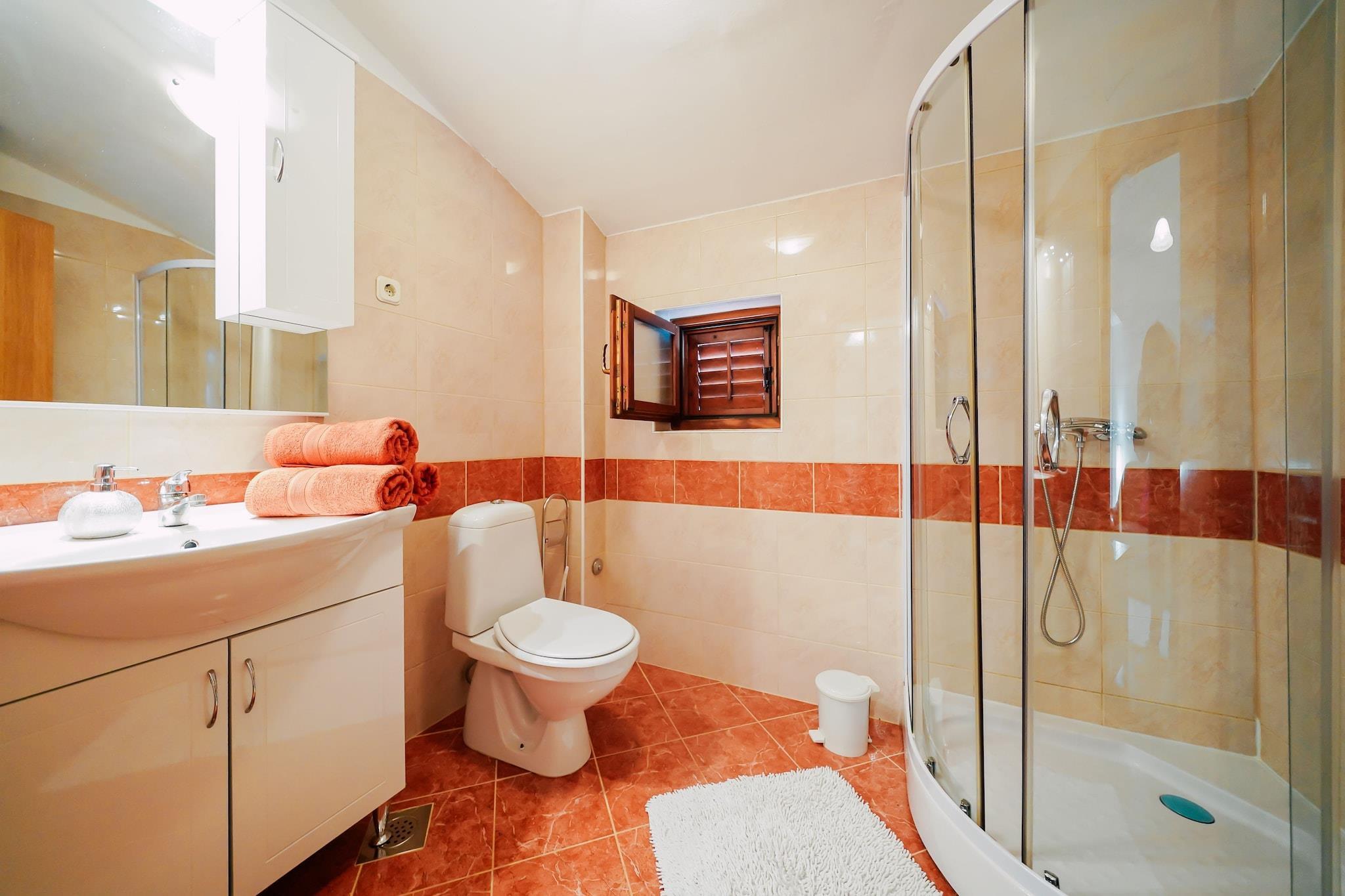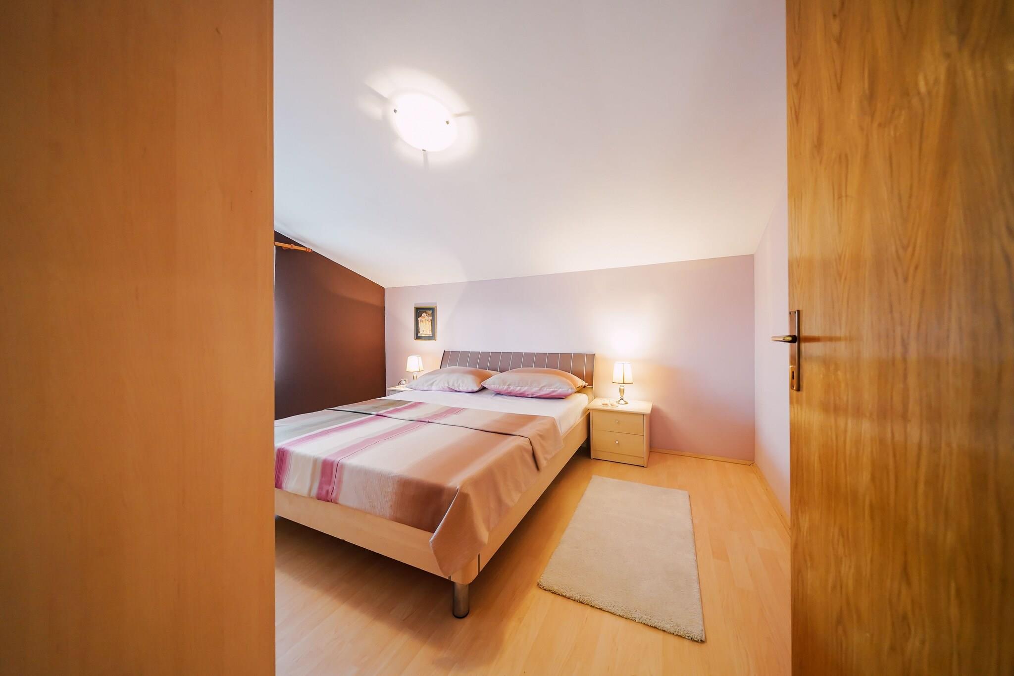 Located in Ljubac, this comfortable 2-bedroom apartment can host up to 5 guests. Situated just 80 meters from the sea and beach, it’s perfect for those seeking a seaside escape. The apartment is on the 1st floor and features a living room with TV and seating area, a fully equipped kitchen with dining table, and a private fenced terrace of 30 m². Guests can enjoy shared amenities including a swimming pool, bubble bath, patio, garden with furniture, barbecue, sun loungers, parasol, and a lounge set. Air conditioning, washing machine, and free WiFi are provided for your comfort. Parking is available onsite. Nearby, you’ll find general supplies within 300 meters and the town center of Ražanac just 4 km away. The vibrant nightlife and hospital in Zadar are 15 km from the property, making this apartment an ideal base for relaxation and convenience.
