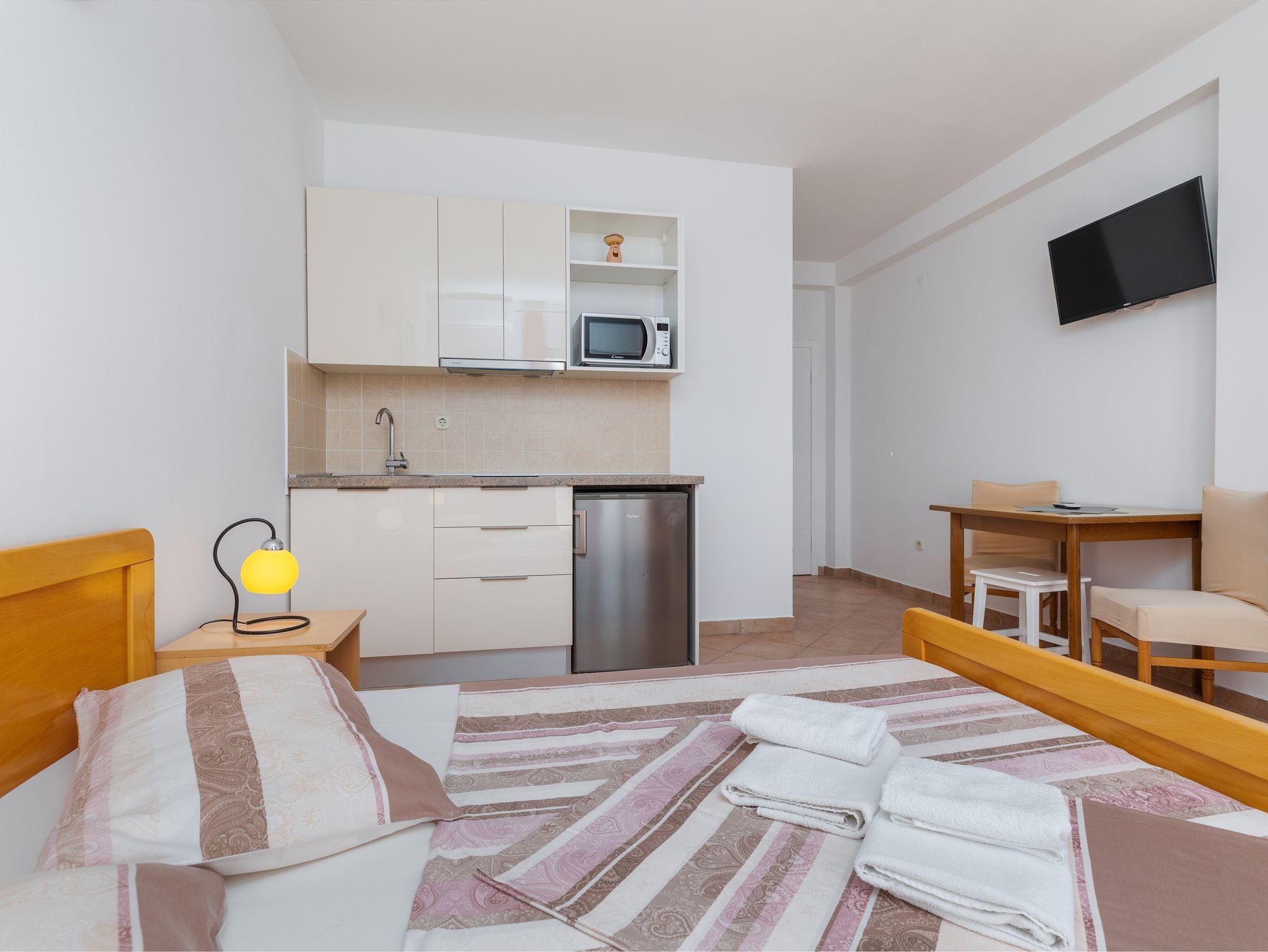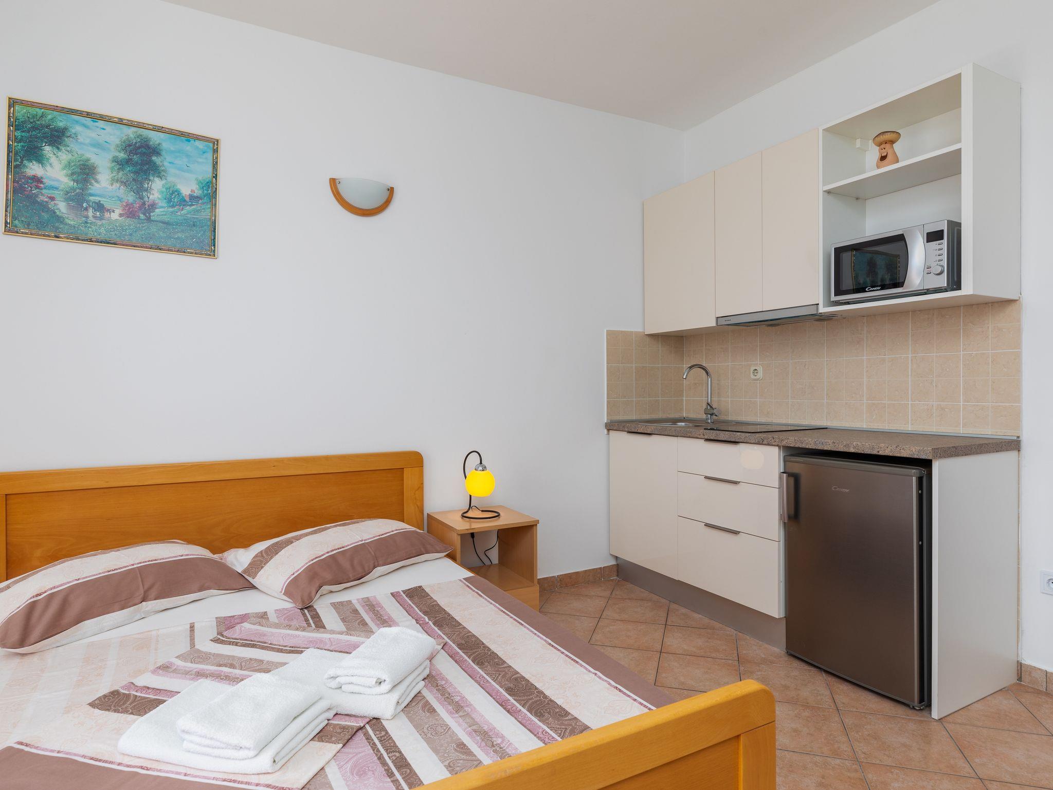 Studio bietet Platz für 2 Gäste. Die Betten sind in Schlafzimmern, die es 1 gibt, innerhalb einer Gesamtfläche von 24m2, angeordnet. Die Gäste haben einen eigenen Balkon zur Verfügung, auf der sie in warmen Sommernächten genießen können. Das Studio-Apartment bietet Meerblick. Es ist erlaubt, Speisen auf dem Gemeinschafts-Grill vorzubereiten. In der Unterkunftseinheit besteht die Möglichkeit des Mitbringens von Haustieren gegen Aufpreis. IM PREIS INBEGRIFFEN: Kurtaxe, Endreinigung, Klimatisierung, Parkplatz, Internet, Wäschewaschen, Bootsanlegeplatz, Kinderbett, Bügeleisen, Bügelbrett, tragbarer Grill. UNVERBINDLICHE ZUSÄTZLICHE KOSTEN: Haustiere (15,00 € pro Nacht). Die Verfügbarkeit zusätzlicher Dienstleistungen in Ihrem reservierten Termin und die Preise derselben (falls nicht aufgeführt) müssen im Voraus überprüft werden. Zusätzliche Dienstleistungen die in der Zahlungsaufforderung nicht aufgeführt sind werden direkt beim Vermieter bezahlt, angenommen der Gast nutzt auch diese. Ermäßigung auf den Grundpreis: Gratistag 21=19 (bei einem Aufenthalt von 21 Tagen oder mehr erhalten Sie 2 Gratistage für den Aufenthalt bis 31.12.26).