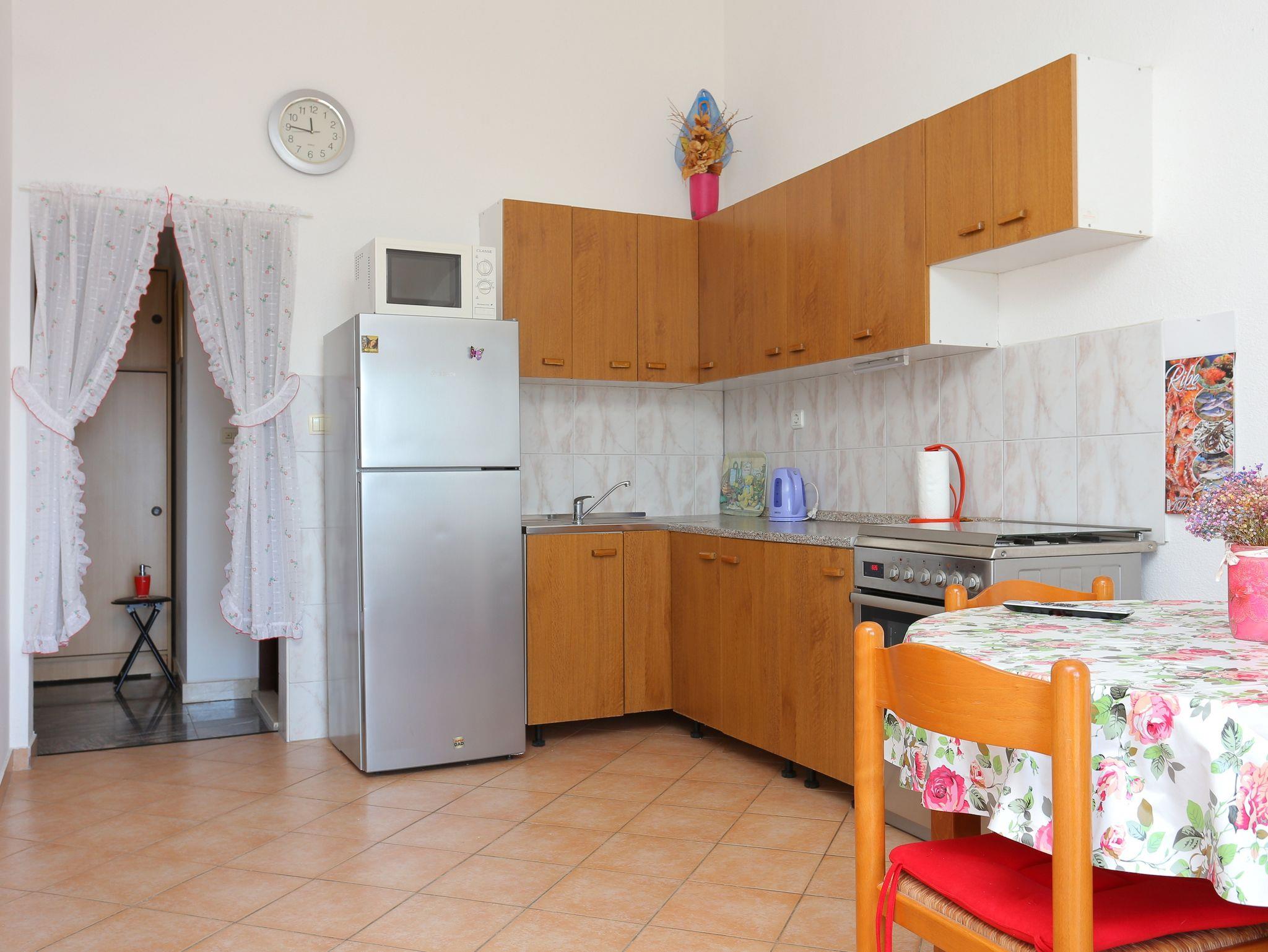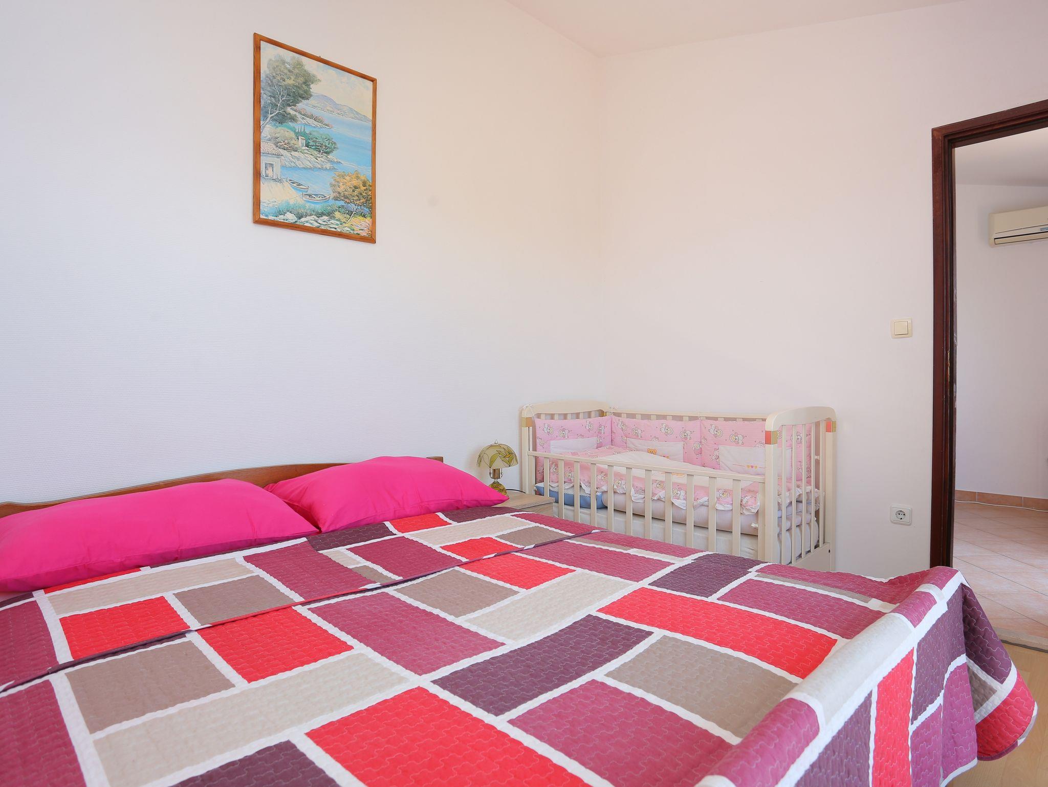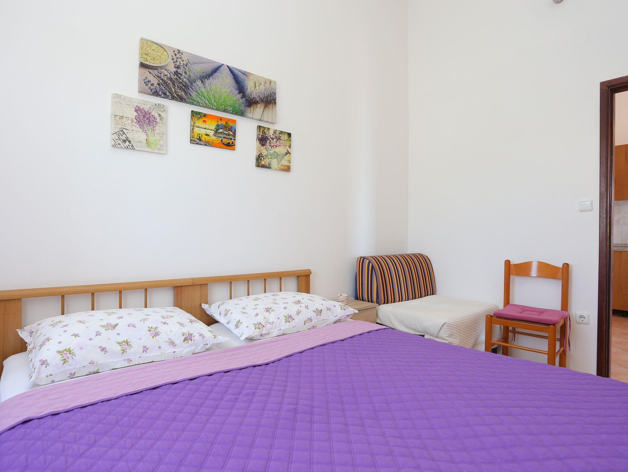 Ferienwohnung bietet Platz für 4 Gäste. Die Betten sind in Schlafzimmern, die es 2 gibt, innerhalb einer Gesamtfläche von 44m2, angeordnet. Die Gäste haben einen eigenen Balkon zur Verfügung, auf der sie in warmen Sommernächten genießen können. Das Apartment bietet Meerblick. Es ist erlaubt, Speisen auf dem Gemeinschafts-Grill vorzubereiten. In der Unterkunftseinheit besteht die Möglichkeit des Mitbringens von Haustieren gegen Aufpreis. IM PREIS INBEGRIFFEN: Kurtaxe, Endreinigung, Klimatisierung, Parkplatz, Internet, Bügeleisen, Föhn. VERBINDLICHE ZUSÄTZLICHE KOSTEN: Aufzahlung für Kurzaufenthalte (prozentualer Zuschlag pro Nächtigungsanzahl: 30% - 1, 20% - 2, 10% - 3). UNVERBINDLICHE ZUSÄTZLICHE KOSTEN: Haustiere (5,00 € pro Nacht), Zusatzbett (7,00 € pro Nacht). Die Verfügbarkeit zusätzlicher Dienstleistungen in Ihrem reservierten Termin und die Preise derselben (falls nicht aufgeführt) müssen im Voraus überprüft werden. Zusätzliche Dienstleistungen die in der Zahlungsaufforderung nicht aufgeführt sind werden direkt beim Vermieter bezahlt, angenommen der Gast nutzt auch diese.