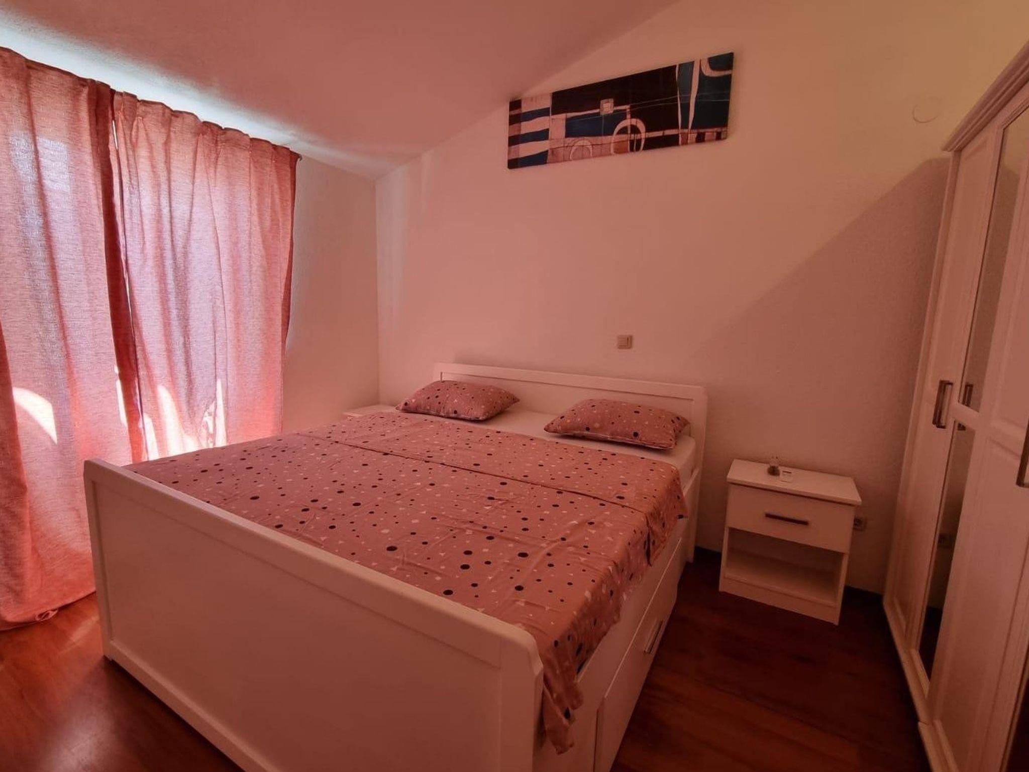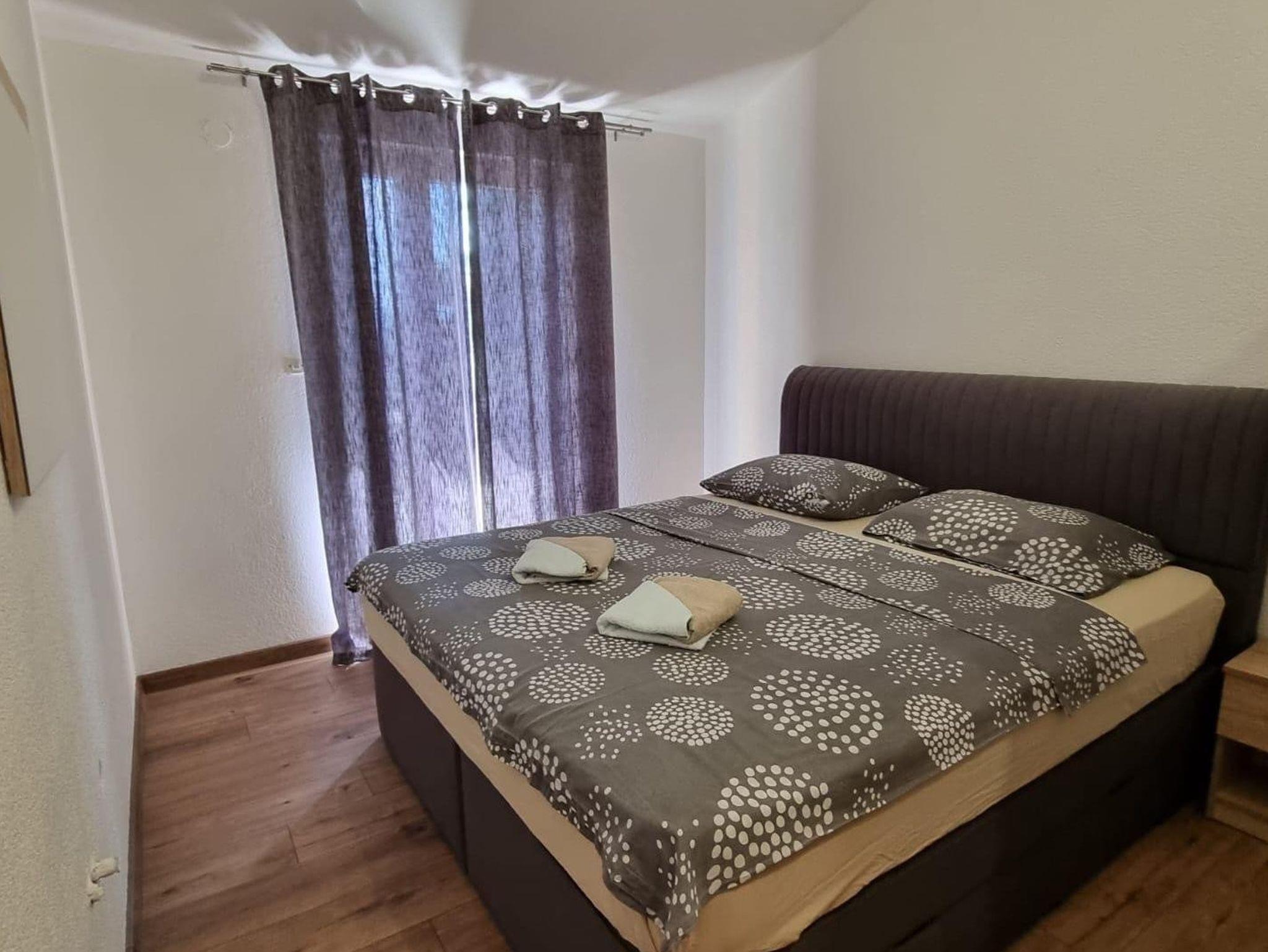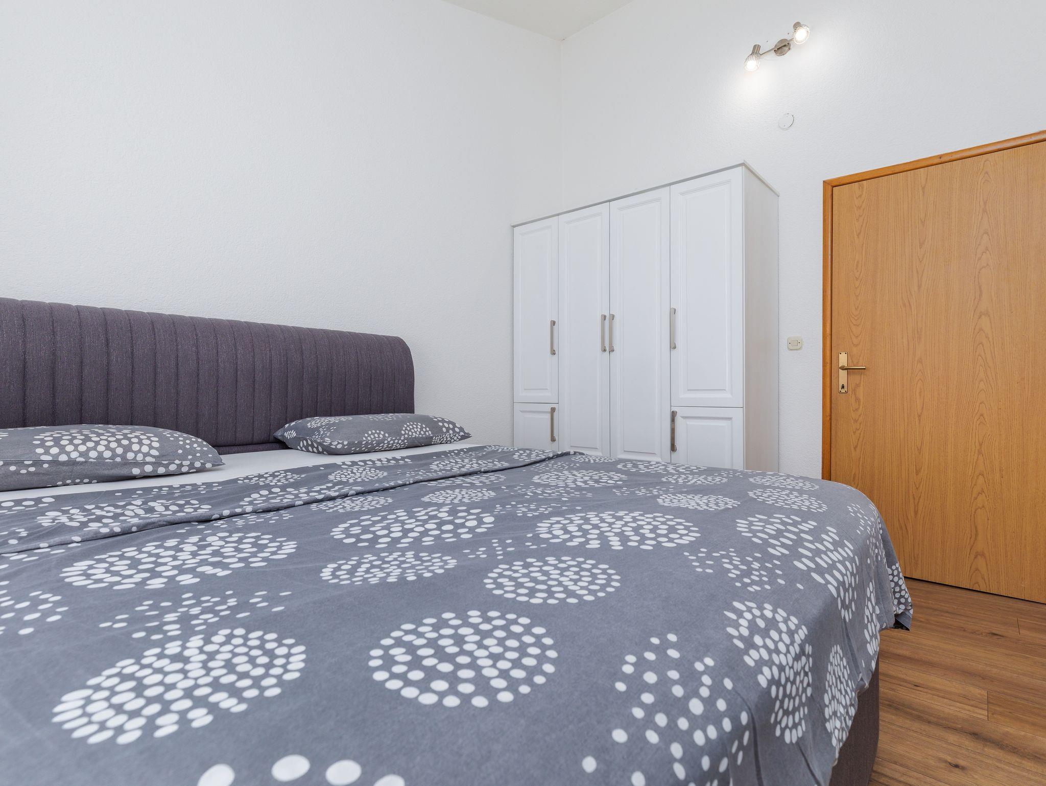 Ferienwohnung bietet Platz für 6 Gäste. Die Betten sind in Schlafzimmern, die es 2 gibt, und in Wohnzimmer, innerhalb einer Gesamtfläche von 72m2, angeordnet. Die Gäste haben eine eigene Terrasse zur Verfügung, auf der sie in warmen Sommernächten genießen können. Das Apartment bietet Meerblick. Es ist erlaubt, Speisen auf dem Gemeinschafts-Grill vorzubereiten. IM PREIS INBEGRIFFEN: Kurtaxe, Endreinigung, Klimatisierung, Parkplatz, Internet, Bügeleisen, Bügelbrett, tragbarer Grill. VERBINDLICHE ZUSÄTZLICHE KOSTEN: Aufzahlung für Kurzaufenthalte (prozentualer Zuschlag pro Nächtigungsanzahl: 30% - 1, 20% - 2, 10% - 3). Die Verfügbarkeit zusätzlicher Dienstleistungen in Ihrem reservierten Termin und die Preise derselben (falls nicht aufgeführt) müssen im Voraus überprüft werden. Zusätzliche Dienstleistungen die in der Zahlungsaufforderung nicht aufgeführt sind werden direkt beim Vermieter bezahlt, angenommen der Gast nutzt auch diese.