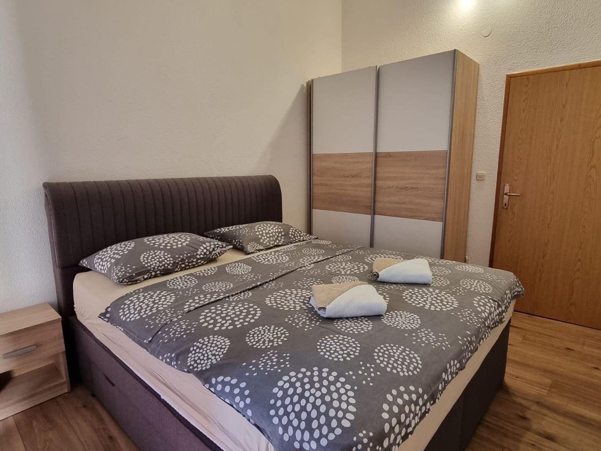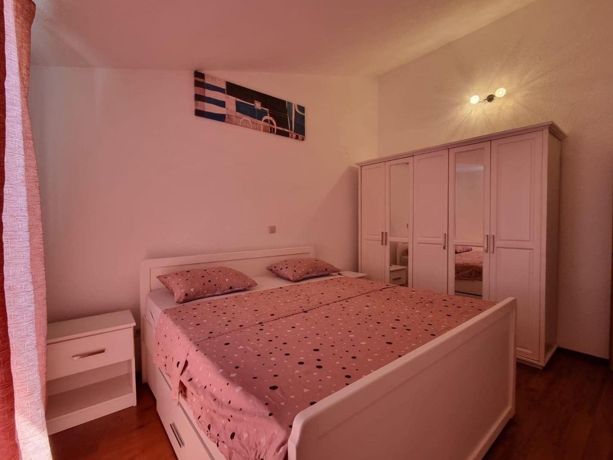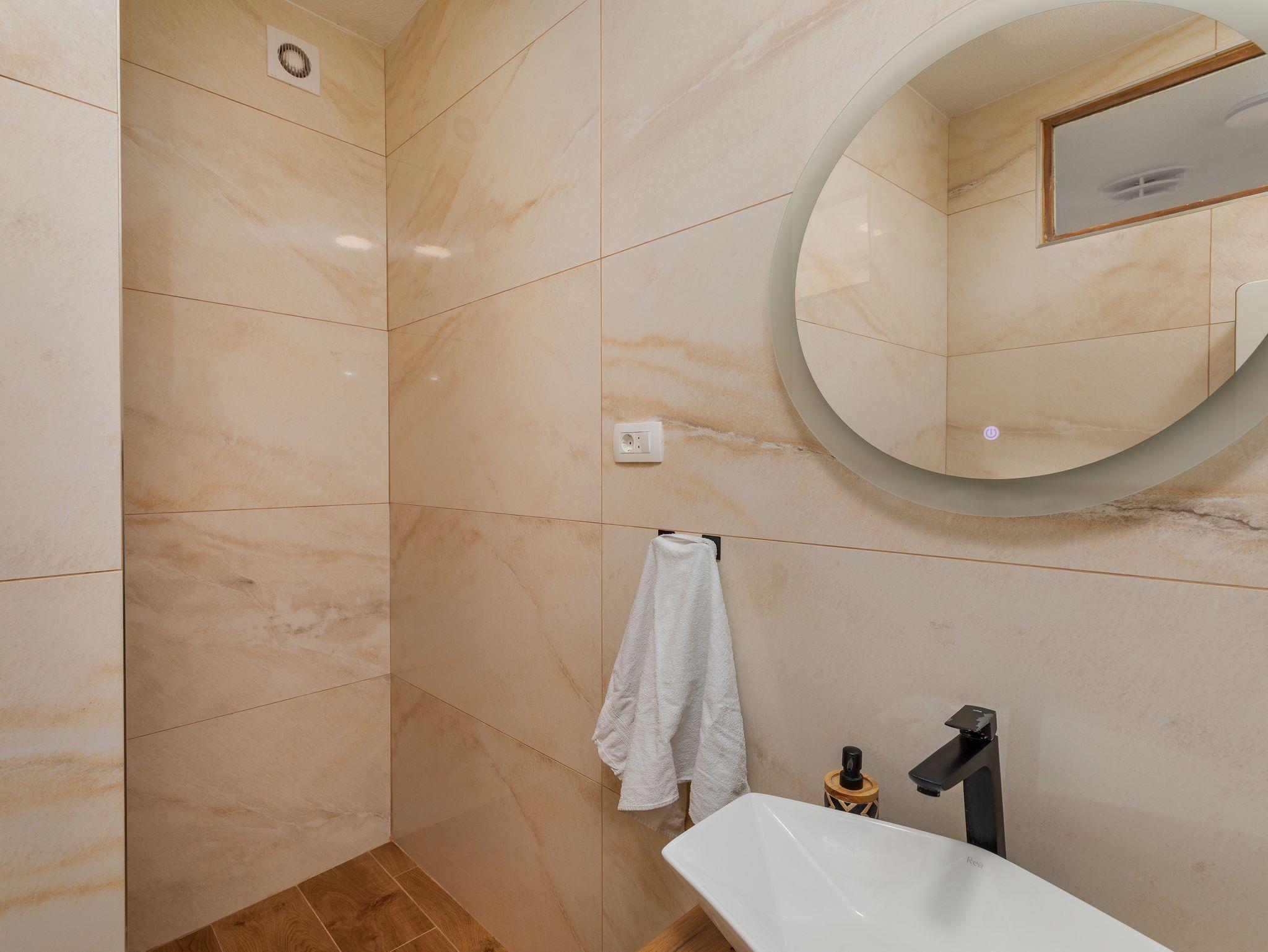 Ferienwohnung bietet Platz für 6 Gäste. Die Betten sind in Schlafzimmern, die es 2 gibt, und in Wohnzimmer, innerhalb einer Gesamtfläche von 72m2, angeordnet. Die Gäste haben eine eigene Terrasse zur Verfügung, auf der sie in warmen Sommernächten genießen können. Das Apartment bietet Meerblick. Es ist erlaubt, Speisen auf dem Gemeinschafts-Grill vorzubereiten. IM PREIS INBEGRIFFEN: Kurtaxe, Endreinigung, Klimatisierung, Parkplatz, Internet, Bügeleisen, Bügelbrett, tragbarer Grill. VERBINDLICHE ZUSÄTZLICHE KOSTEN: Aufzahlung für Kurzaufenthalte (prozentualer Zuschlag pro Nächtigungsanzahl: 30% - 1, 20% - 2, 10% - 3). Die Verfügbarkeit zusätzlicher Dienstleistungen in Ihrem reservierten Termin und die Preise derselben (falls nicht aufgeführt) müssen im Voraus überprüft werden. Zusätzliche Dienstleistungen die in der Zahlungsaufforderung nicht aufgeführt sind werden direkt beim Vermieter bezahlt, angenommen der Gast nutzt auch diese.