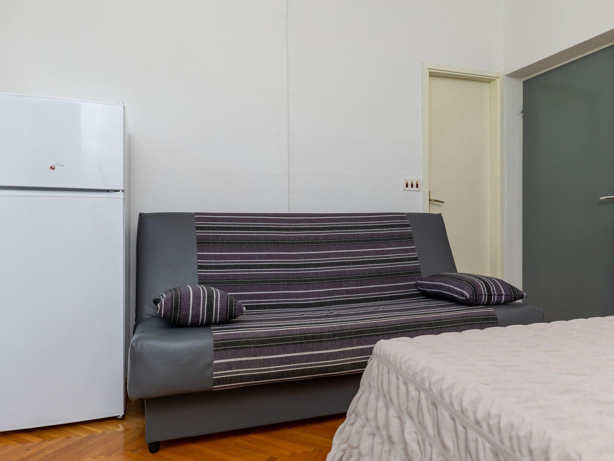 Studio bietet Platz für 2 Gäste. Die Betten sind in Schlafzimmern, die es 1 gibt, innerhalb einer Gesamtfläche von 20m2, angeordnet. Die Gäste haben einen eigenen Balkon zur Verfügung, auf der sie in warmen Sommernächten genießen können. Das Studio-Apartment bietet Meerblick. Es ist erlaubt, Speisen auf dem Gemeinschafts-Grill vorzubereiten. Unterkunftseinheit hat Räume, die von dem Rest der Einheit abgetrennt werden. IM PREIS INBEGRIFFEN: Kurtaxe, Endreinigung, Parkplatz, Internet, Wäschewaschen, Bügeleisen, Bügelbrett. VERBINDLICHE ZUSÄTZLICHE KOSTEN: Aufzahlung für Kurzaufenthalte (prozentualer Zuschlag pro Nächtigungsanzahl: 30% - 1, 20% - 2, 10% - 3). UNVERBINDLICHE ZUSÄTZLICHE KOSTEN: Klimatisierung (5,00 € pro Nacht). Die Verfügbarkeit zusätzlicher Dienstleistungen in Ihrem reservierten Termin und die Preise derselben (falls nicht aufgeführt) müssen im Voraus überprüft werden. Zusätzliche Dienstleistungen die in der Zahlungsaufforderung nicht aufgeführt sind werden direkt beim Vermieter bezahlt, angenommen der Gast nutzt auch diese.