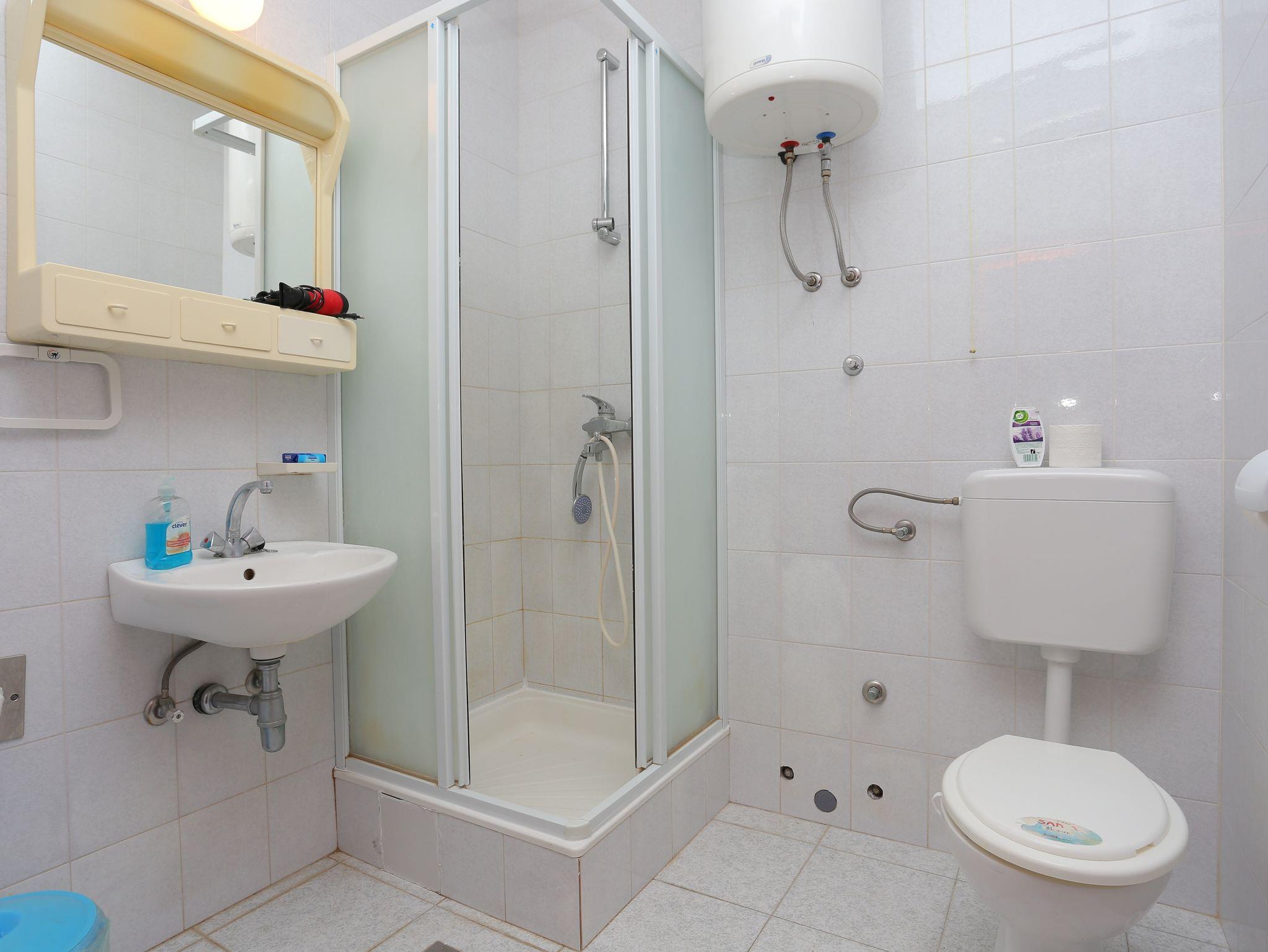 Ferienwohnung bietet Platz für 5 Gäste. Die Betten sind in Schlafzimmern, die es 1 gibt, und in Esszimmer, innerhalb einer Gesamtfläche von 44m2, angeordnet. Die Gäste haben einen eigenen Balkon zur Verfügung, auf der sie in warmen Sommernächten genießen können. Das Apartment bietet Meerblick. Es ist erlaubt, Speisen auf dem Gemeinschafts-Grill vorzubereiten. In der Unterkunftseinheit besteht die Möglichkeit des Mitbringens von Haustieren gegen Aufpreis. IM PREIS INBEGRIFFEN: Kurtaxe, Endreinigung, Klimatisierung, Parkplatz, Internet, Kinderbett, Bügeleisen, Bügelbrett, Föhn. VERBINDLICHE ZUSÄTZLICHE KOSTEN: Aufzahlung für Kurzaufenthalte (prozentualer Zuschlag pro Nächtigungsanzahl: 30% - 1, 20% - 2, 10% - 3). UNVERBINDLICHE ZUSÄTZLICHE KOSTEN: Wäschewaschen (5,00 € Waschen), Haustiere (5,00 € pro Nacht). Die Verfügbarkeit zusätzlicher Dienstleistungen in Ihrem reservierten Termin und die Preise derselben (falls nicht aufgeführt) müssen im Voraus überprüft werden. Zusätzliche Dienstleistungen die in der Zahlungsaufforderung nicht aufgeführt sind werden direkt beim Vermieter bezahlt, angenommen der Gast nutzt auch diese. Ermäßigung auf den Grundpreis: Gratistag 14=13 (bei einem Aufenthalt von 14 Tagen oder mehr erhalten Sie einen Gratistag für den Aufenthalt bis 31.12.26).