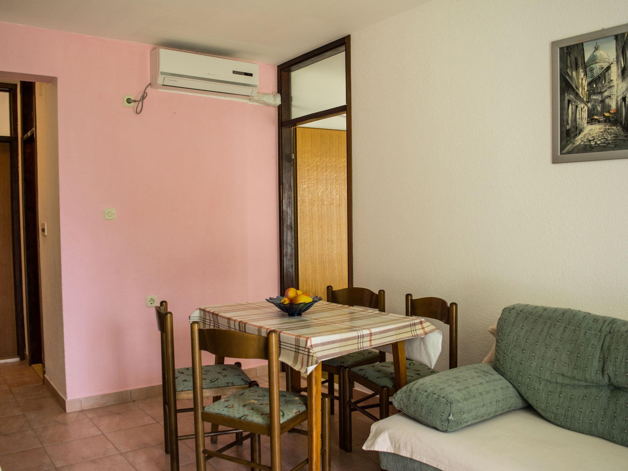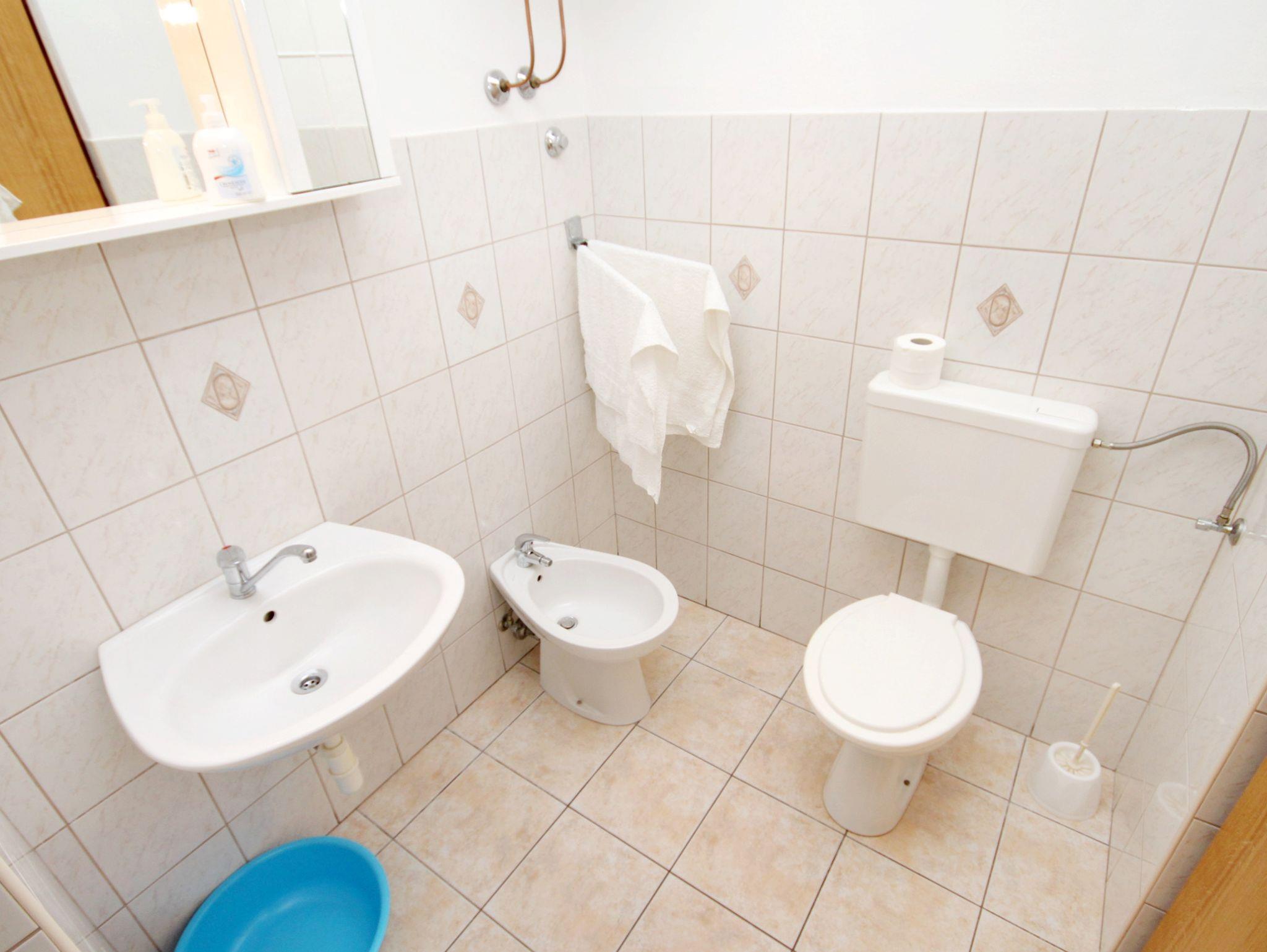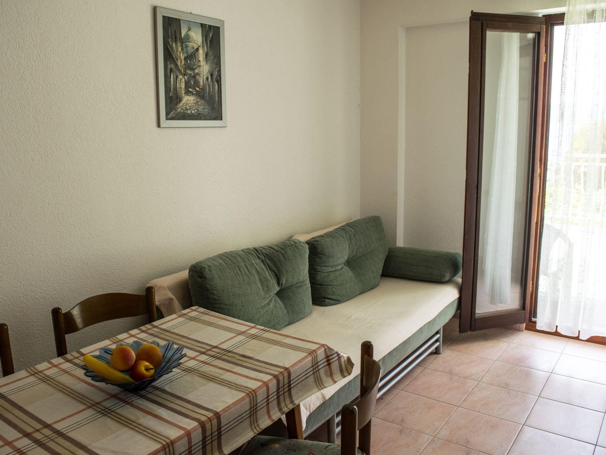 Ferienwohnung bietet Platz für 5 Gäste. Die Betten sind in Schlafzimmern, die es 1 gibt, und in Esszimmer, innerhalb einer Gesamtfläche von 34m2, angeordnet. Die Gäste haben eine eigene Terrasse zur Verfügung, auf der sie in warmen Sommernächten genießen können. Das Apartment bietet Meerblick. Es ist erlaubt, Speisen auf dem Gemeinschafts-Grill vorzubereiten. In der Unterkunftseinheit besteht die Möglichkeit des Mitbringens von Haustieren gegen Aufpreis. IM PREIS INBEGRIFFEN: Kurtaxe, Endreinigung, Klimatisierung, Parkplatz, Internet, Zusatzbett, Bügeleisen, Bügelbrett. VERBINDLICHE ZUSÄTZLICHE KOSTEN: Aufzahlung für Kurzaufenthalte (prozentualer Zuschlag pro Nächtigungsanzahl: 30% - 1, 20% - 2, 10% - 3). UNVERBINDLICHE ZUSÄTZLICHE KOSTEN: Haustiere (5,00 € pro Nacht). Die Verfügbarkeit zusätzlicher Dienstleistungen in Ihrem reservierten Termin und die Preise derselben (falls nicht aufgeführt) müssen im Voraus überprüft werden. Zusätzliche Dienstleistungen die in der Zahlungsaufforderung nicht aufgeführt sind werden direkt beim Vermieter bezahlt, angenommen der Gast nutzt auch diese.