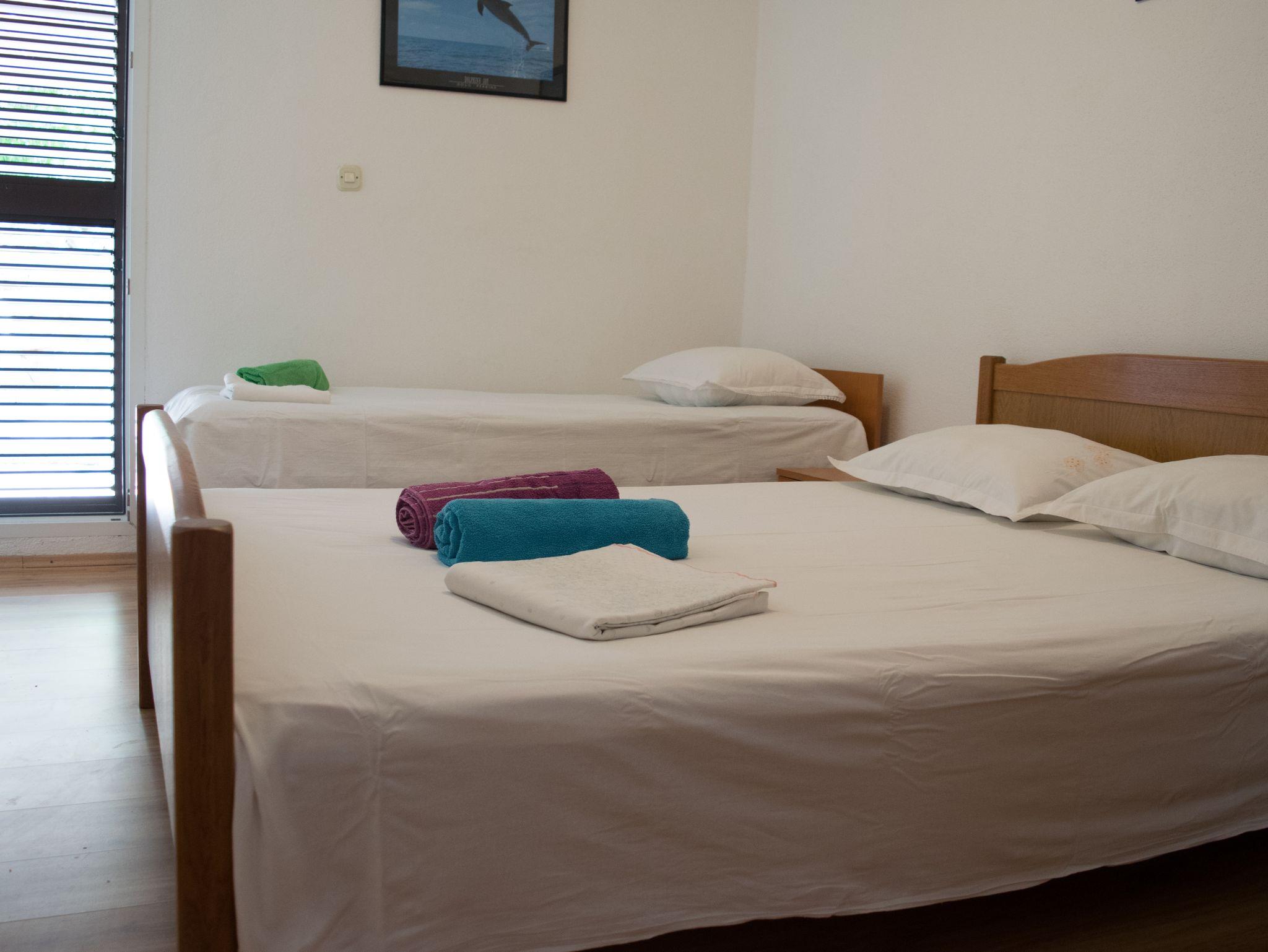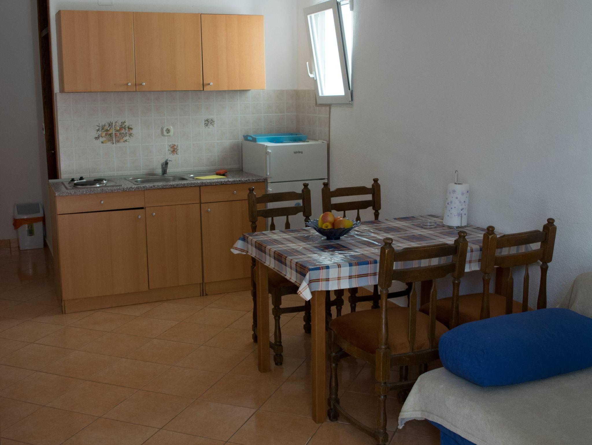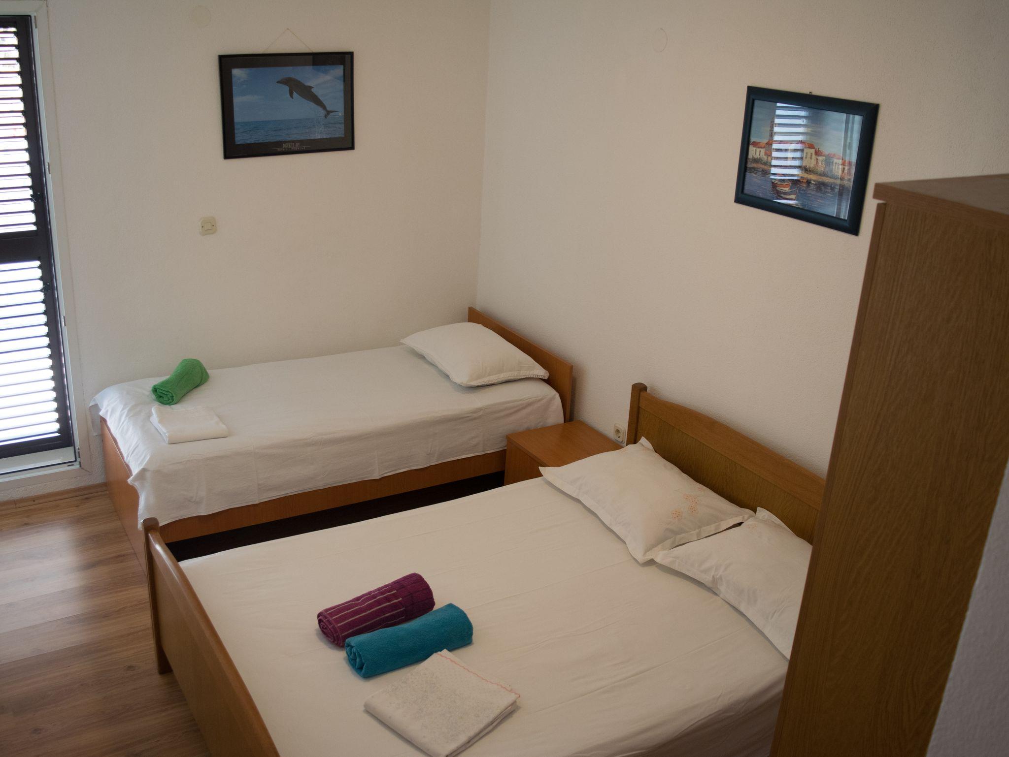 Ferienwohnung bietet Platz für 4 Gäste. Die Betten sind in Schlafzimmern, die es 1 gibt, und in Esszimmer, innerhalb einer Gesamtfläche von 34m2, angeordnet. Die Gäste haben eine eigene Terrasse zur Verfügung, auf der sie in warmen Sommernächten genießen können. Das Apartment bietet Meerblick. Es ist erlaubt, Speisen auf dem Gemeinschafts-Grill vorzubereiten. In der Unterkunftseinheit besteht die Möglichkeit des Mitbringens von Haustieren gegen Aufpreis. IM PREIS INBEGRIFFEN: Kurtaxe, Endreinigung, Klimatisierung, Parkplatz, Internet, Zusatzbett, Bügeleisen, Bügelbrett. VERBINDLICHE ZUSÄTZLICHE KOSTEN: Aufzahlung für Kurzaufenthalte (prozentualer Zuschlag pro Nächtigungsanzahl: 30% - 1, 20% - 2, 10% - 3). UNVERBINDLICHE ZUSÄTZLICHE KOSTEN: Haustiere (5,00 € pro Nacht). Die Verfügbarkeit zusätzlicher Dienstleistungen in Ihrem reservierten Termin und die Preise derselben (falls nicht aufgeführt) müssen im Voraus überprüft werden. Zusätzliche Dienstleistungen die in der Zahlungsaufforderung nicht aufgeführt sind werden direkt beim Vermieter bezahlt, angenommen der Gast nutzt auch diese.