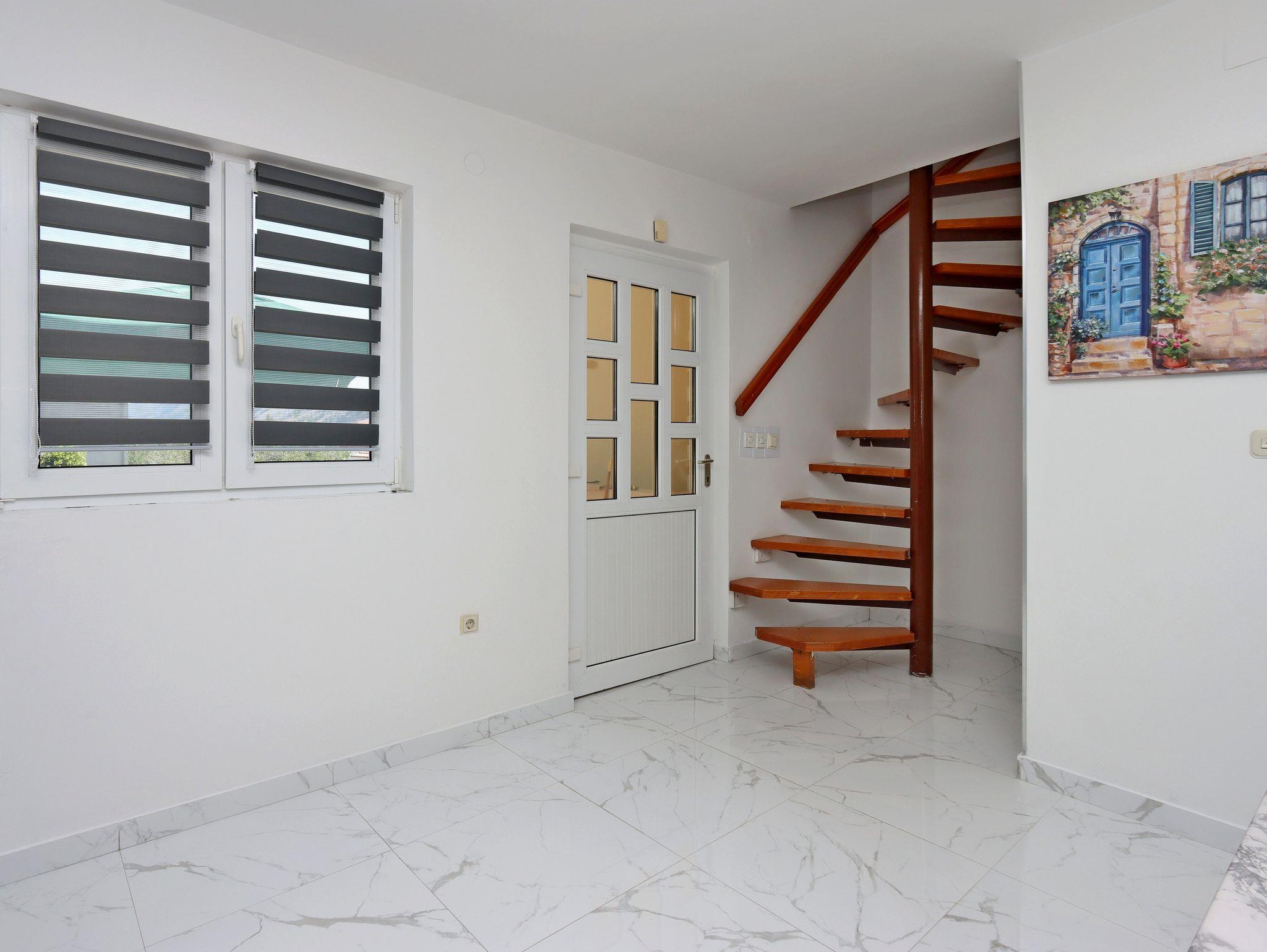Ferienwohnung bietet Platz für 5 Gäste. Die Betten sind in Schlafzimmern, die es 1 gibt, und in Wohnzimmer, innerhalb einer Gesamtfläche von 53m2, angeordnet. Die Gäste haben eine eigene Terrasse zur Verfügung, auf der sie in warmen Sommernächten genießen können. Das Apartment bietet Meerblick. Es ist erlaubt, Speisen auf dem Gemeinschafts-Grill vorzubereiten. IM PREIS INBEGRIFFEN: Kurtaxe, Endreinigung, Klimatisierung, Garage, Internet, Wäschewaschen, Kinderbett. UNVERBINDLICHE ZUSÄTZLICHE KOSTEN: Bootsanlegeplatz (20,00 € pro Nacht). Die Verfügbarkeit zusätzlicher Dienstleistungen in Ihrem reservierten Termin und die Preise derselben (falls nicht aufgeführt) müssen im Voraus überprüft werden. Zusätzliche Dienstleistungen die in der Zahlungsaufforderung nicht aufgeführt sind werden direkt beim Vermieter bezahlt, angenommen der Gast nutzt auch diese.