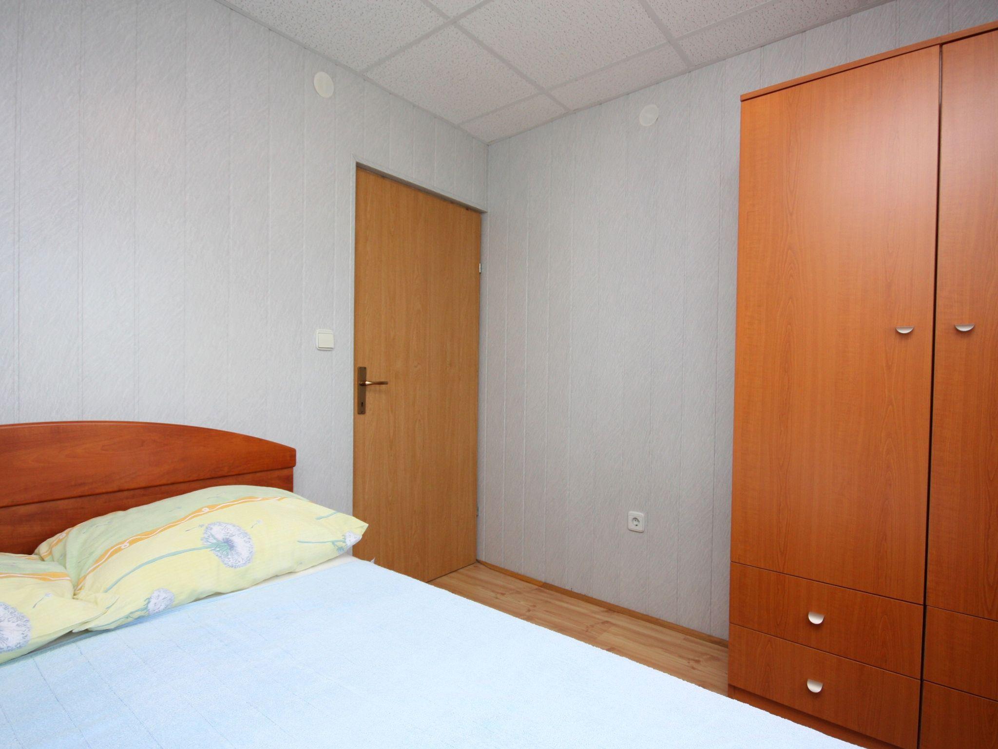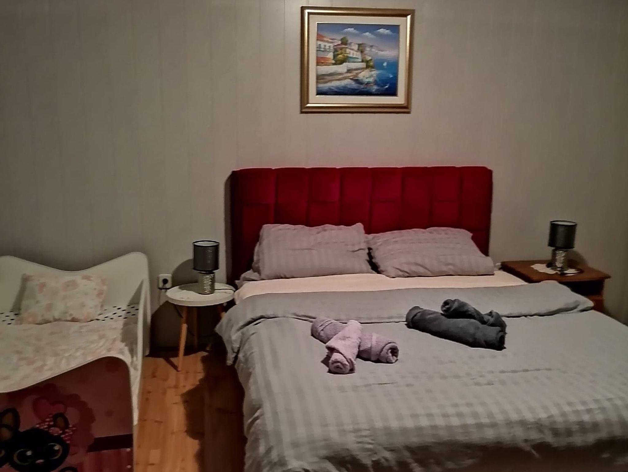 Ferienwohnung bietet Platz für 5 Gäste. Die Betten sind in Schlafzimmern, die es 2 gibt, und in Wohnzimmer, innerhalb einer Gesamtfläche von 44m2, angeordnet. Die Gäste haben eine eigene Terrasse zur Verfügung, auf der sie in warmen Sommernächten genießen können. Es ist erlaubt, Speisen auf dem Gemeinschafts-Grill vorzubereiten. IM PREIS INBEGRIFFEN: Kurtaxe, Endreinigung, Klimatisierung, Parkplatz, Internet, Wäschewaschen, Kinderbett, Bügeleisen, Bügelbrett, Föhn. VERBINDLICHE ZUSÄTZLICHE KOSTEN: Aufzahlung für Kurzaufenthalte (prozentualer Zuschlag pro Nächtigungsanzahl: 30% - 1, 20% - 2, 10% - 3). Die Verfügbarkeit zusätzlicher Dienstleistungen in Ihrem reservierten Termin und die Preise derselben (falls nicht aufgeführt) müssen im Voraus überprüft werden. Zusätzliche Dienstleistungen die in der Zahlungsaufforderung nicht aufgeführt sind werden direkt beim Vermieter bezahlt, angenommen der Gast nutzt auch diese. Ermäßigung auf den Grundpreis: Gratistag 21=19 (bei einem Aufenthalt von 21 Tagen oder mehr erhalten Sie 2 Gratistage für den Aufenthalt bis 31.12.26).