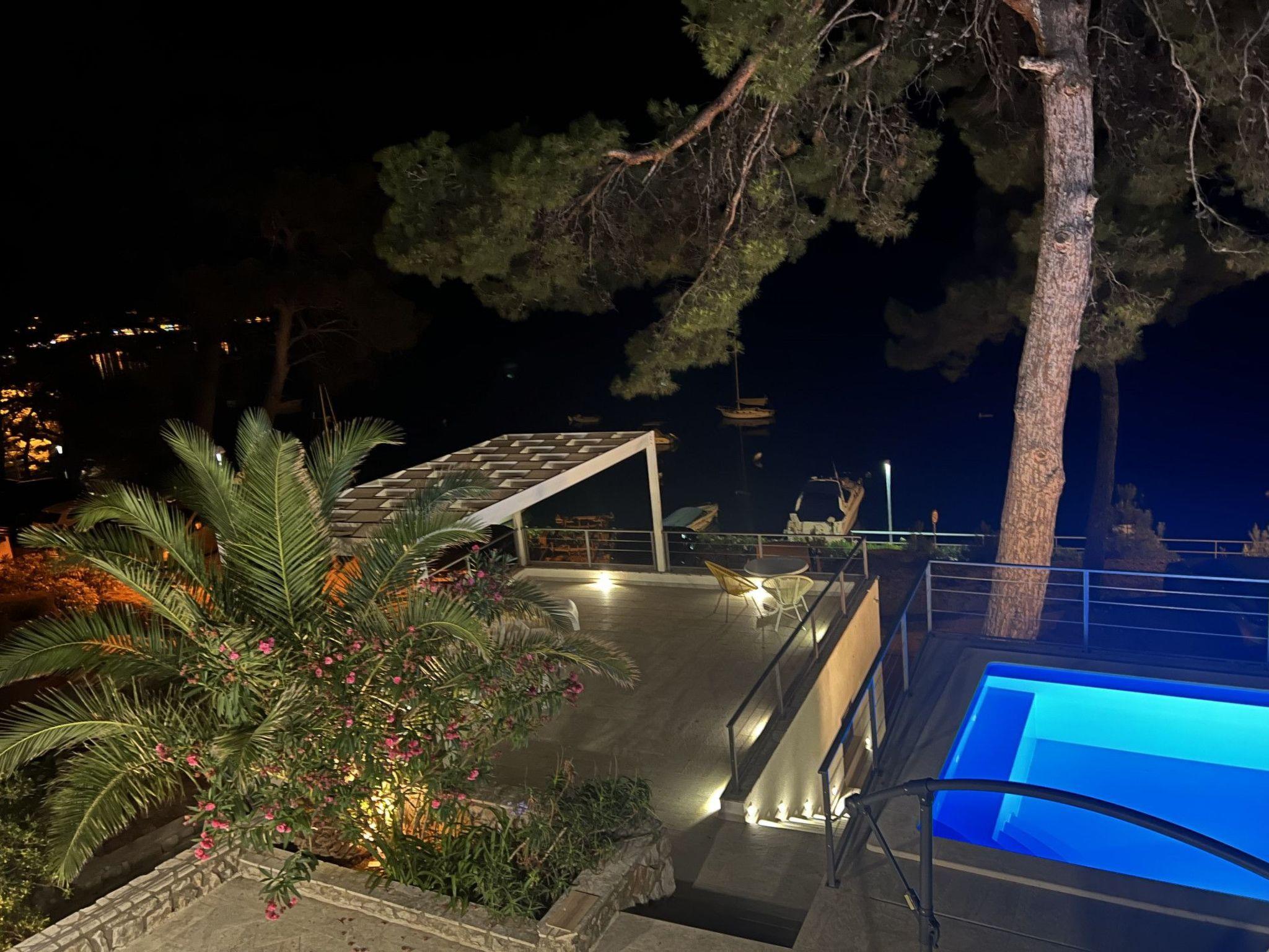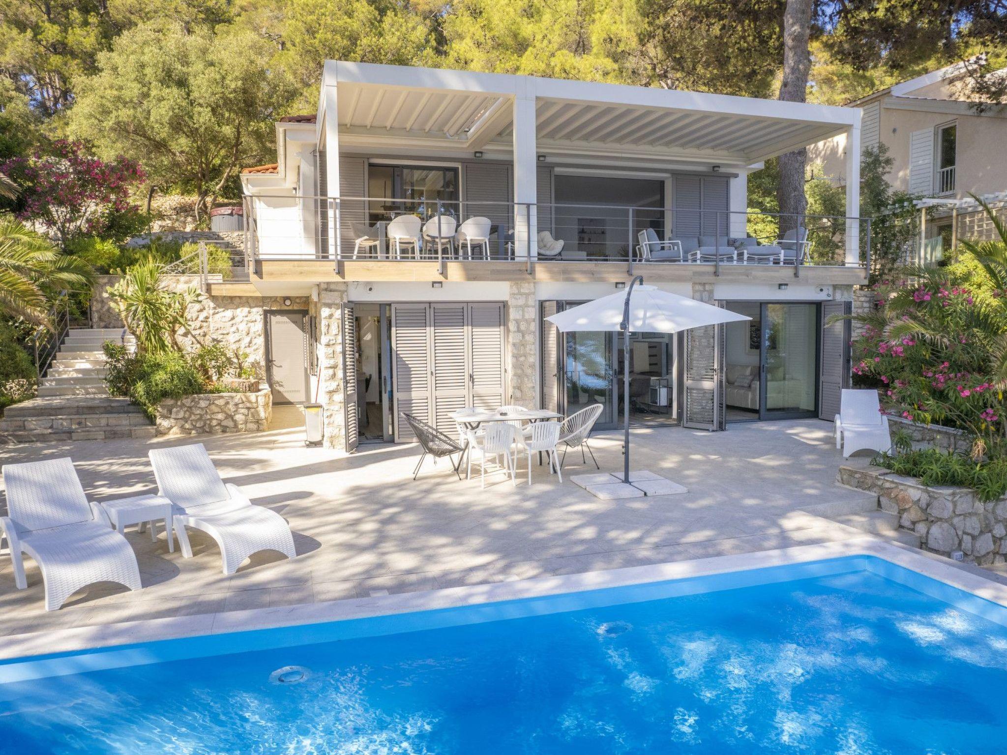 The exterior of Villa Hana is just as impressive as its interior. Surrounded by lush gardens, the villa features multiple terraces, each offering its unique charm, whether it's lounging by the private heated pool, enjoying a meal in the barbecue area, or simply reveling in the tranquility that the outdoor spaces provide. The presence of a garage and six parking places ensures utmost convenience for guests with vehicles.