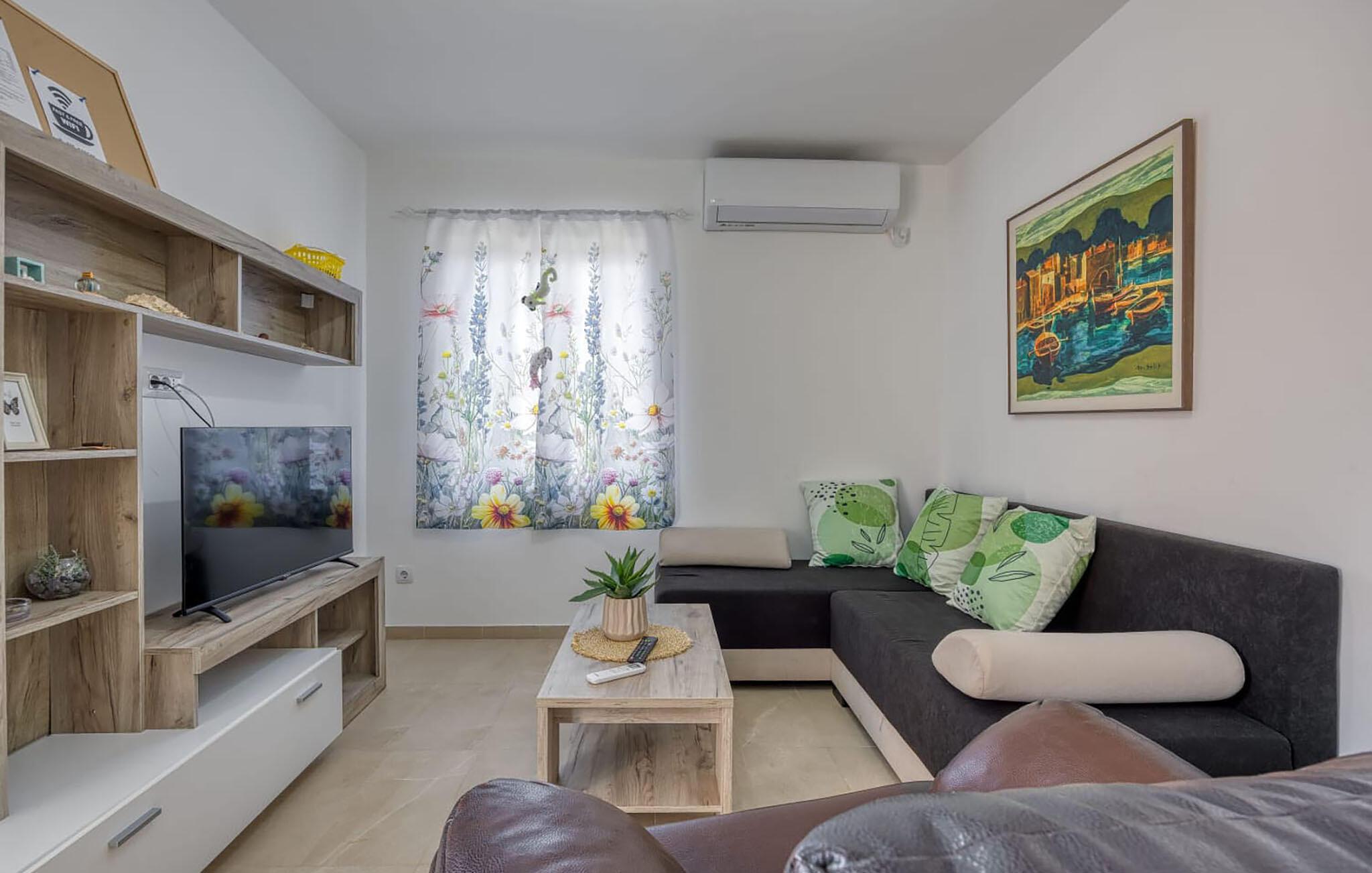 Lassen Sie den Alltag hinter sich und verbringen Sie einen erholsamen Urlaub in der Wohnung mit wohnlichem Charme, die Ihre Gäste nur eine kurze Fahrt vom Meer in schöner Umgebung begrüßt. Nutzen Sie die Unterkunft als Ausgangspunkt für wunderbare Strandtage und Erkundungen der Insel, machen Sie es sich nach Ihren Unternehmungen hier gemeinsam bequem.