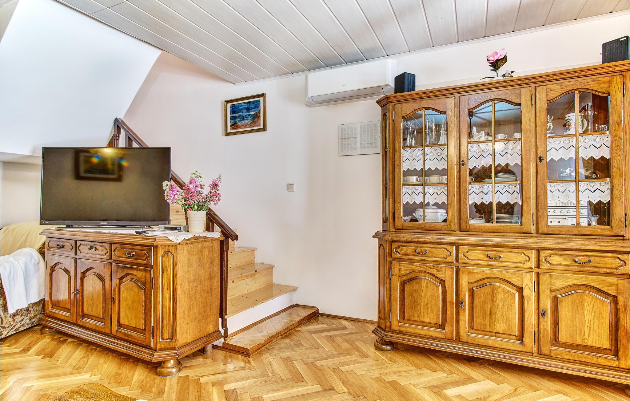 Verbringen Sie einen schönen Urlaub in diesem netten und romantischen Reihenhaus in Mali Lošinj. Im Erdgeschoß ist der Wohnbereich mit Küche, der direkt mit einer geräumigen Terrasse und Hof verbunden ist, wo sich auch der Grill befindet. Im nahegelegenen Ortszentrum gibt es viele Restaurants, Geschäfte, Souvenirshops und die Promenade. Der Hauseigentümer gibt Ihnen gerne Tipps bezüglich der nächstliegenden Strände. Ein Parkplatz steht Ihnen ebenfalls in der Nähe zur Verfügung, aber direkt zum Ferienobjekt kommt man nicht mit dem Auto. Besuchen Sie den „Garten der feinen Düfte“ (Miomirisni vrt) und die Bucht Cikat mit einem Aqua Park für Kinder. Die Insel Lošinj ist eine herrliche Destination im Kvarner Achipel. Sie ist bekannt als Insel der Gesundheit und Vitalität, umgeben von unberührter Natur mit verschiedenen Düften und Aromen, die in der Luft liegen. Besuchen Sie auch das Delphinzentrum in Veli Lošinj und unternehmen Wassersportarten, sowie Spaziergänge durch Pinienwälder am Meer entlang oder Wanderungen mit Aussichtsstellen auf der Insel Lošinj und der Insel Cres. Deckenschräge im Dachgeschoss auf 100 cm.