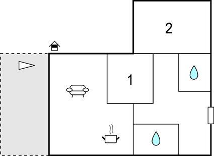 Badezimmer 5m2 (nr. 1) - WC. Warmes und kaltes Wasser. Dusche