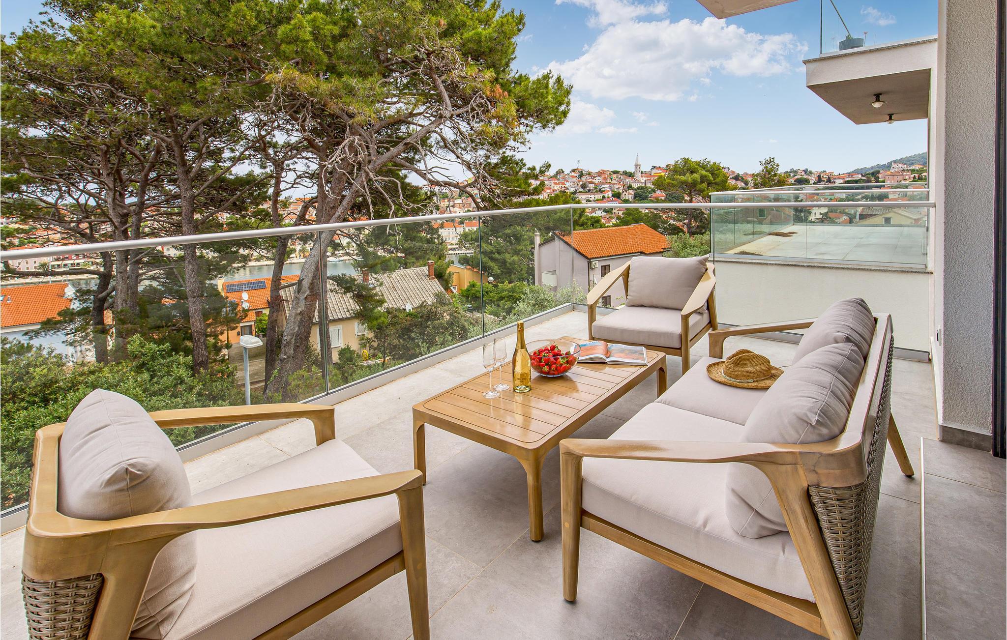 Verbringen Sie einen unvergesslichen Urlaub in dieser hübschen Wohnung, die sich im ersten Stock befindet und über eine große Terrasse verfügt. Hier können Sie wunderbar einen herrlichen Panoramablick auf das Zentrum von Mali Losinj und das Meer, sowie die kroatische Sonne genießen. Sitzen Sie gesellig zusammen und essen Sie gemeinsam oder lesen Sie in aller Ruhe in lang liegen gebliebenes Buch. Die Ausstattung der Wohnung ist modern, und die Lage ist in der Nähe des Zentrums, aber immer noch ruhig.
