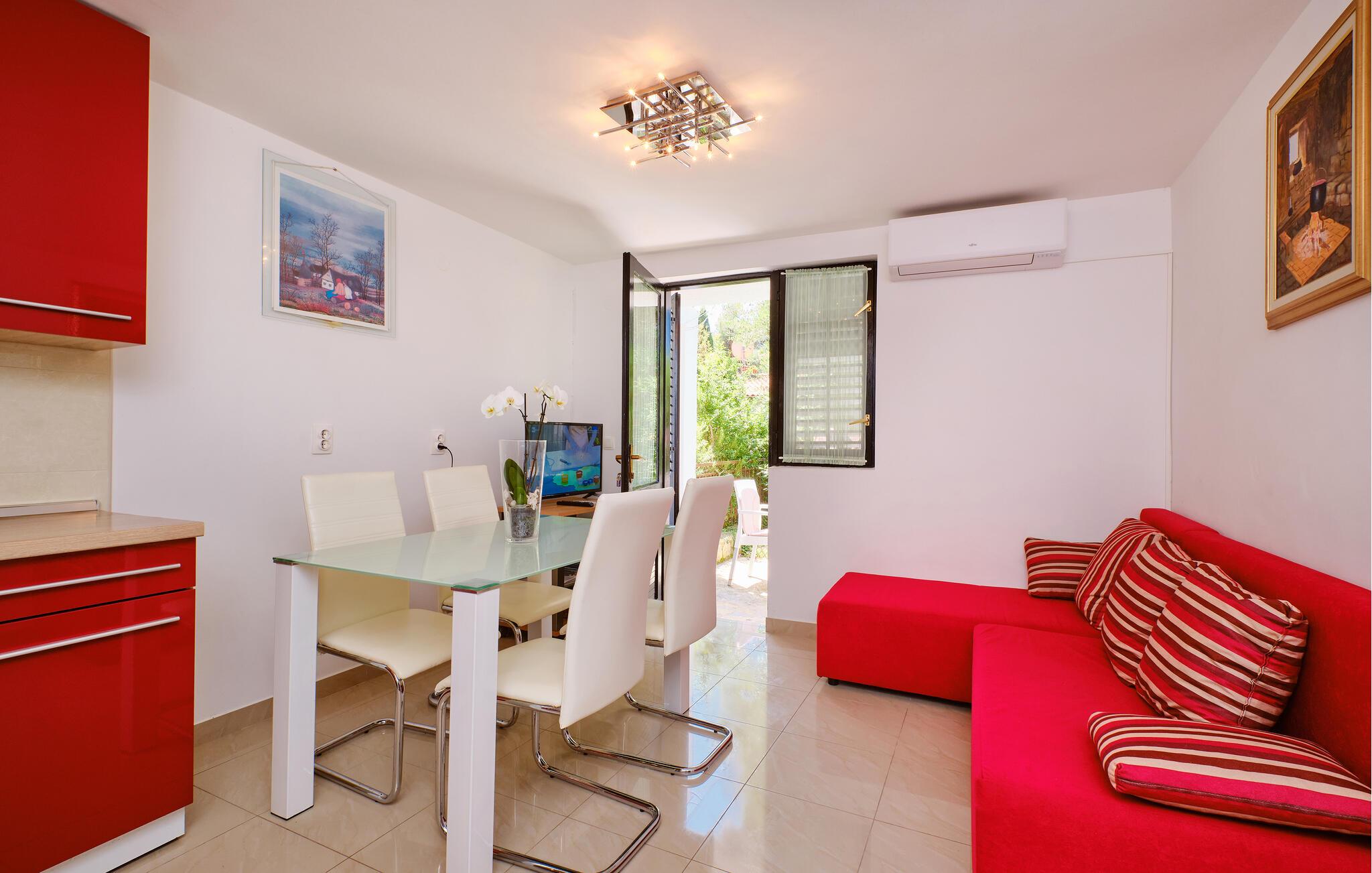 Dieses modern eingerichtete Apartment liegt in einer ruhigen Nachbarschaft und bietet Ihnen, umgeben von üppiger mediterraner Vegetation, ein ruhiges Refugium – nur wenige Schritte vom Strand entfernt. Starten Sie mit einem ausgiebigen Frühstück in den Tag, packen Sie Leckereien für ein romantisches Strandpicknick ein und lassen Sie einen langen Tag an der Sonne bei einem Brettspiel oder mit ruhigen Lesestunden ausklingen – im Küstenort Artatore, nahe dem Zentrum von Mali Lošinj.