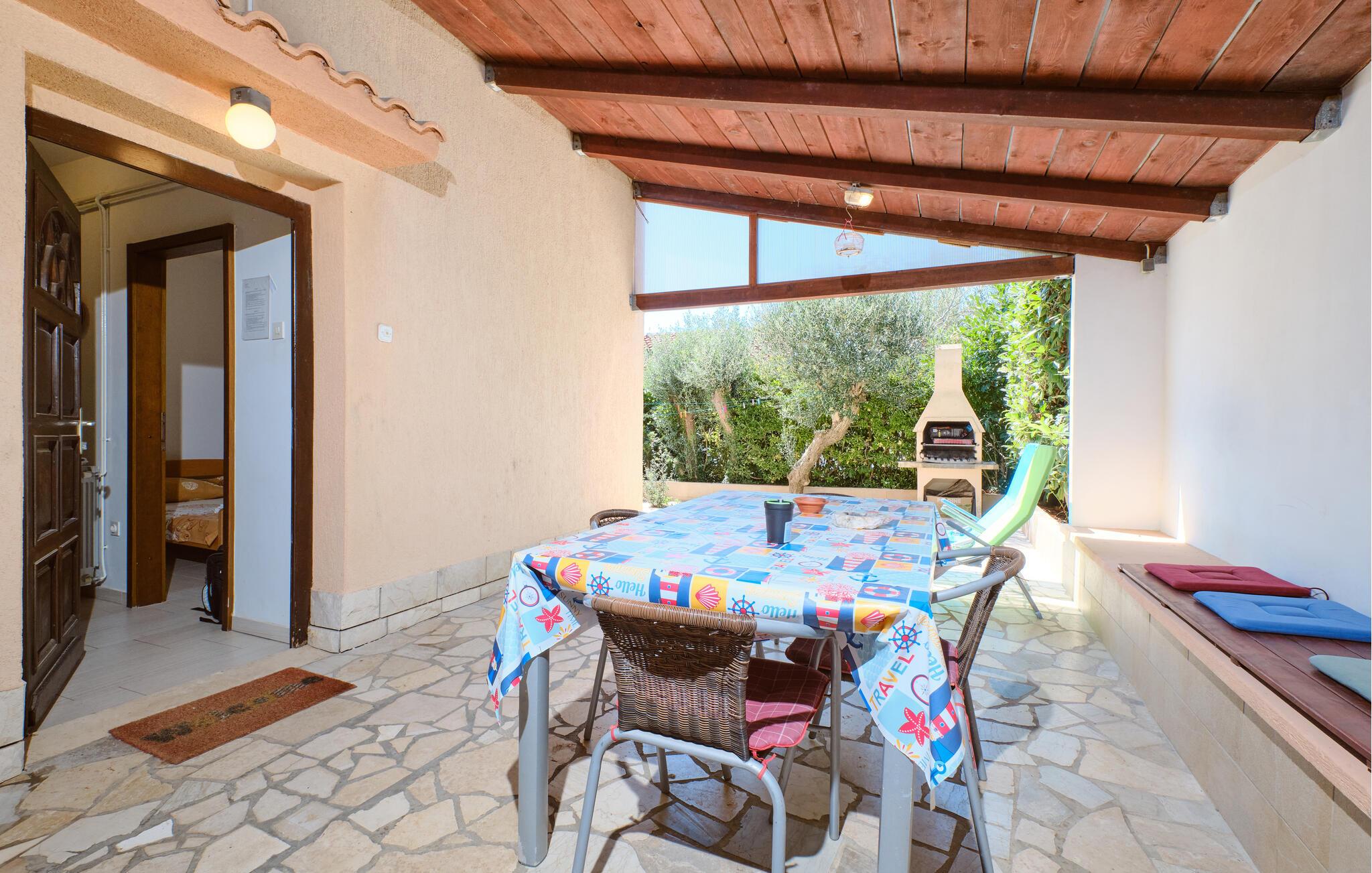 Beginnen Sie den Tag mit einem ausgiebigen Frühstück auf der Terrasse, umgeben von mediterranem Grün. Wenn Sie mögen, entspannen Sie sich anschließend auf den Sonnenliegen, schmieden Sie Pläne für Ihre Aktivitäten oder schmökern Sie in Ihrer Urlaubslektüre. Lassen Sie abends ein saftiges Steak auf dem Grill brutzeln und genießen Sie ein gutes Glas kroatischen Wein dazu.