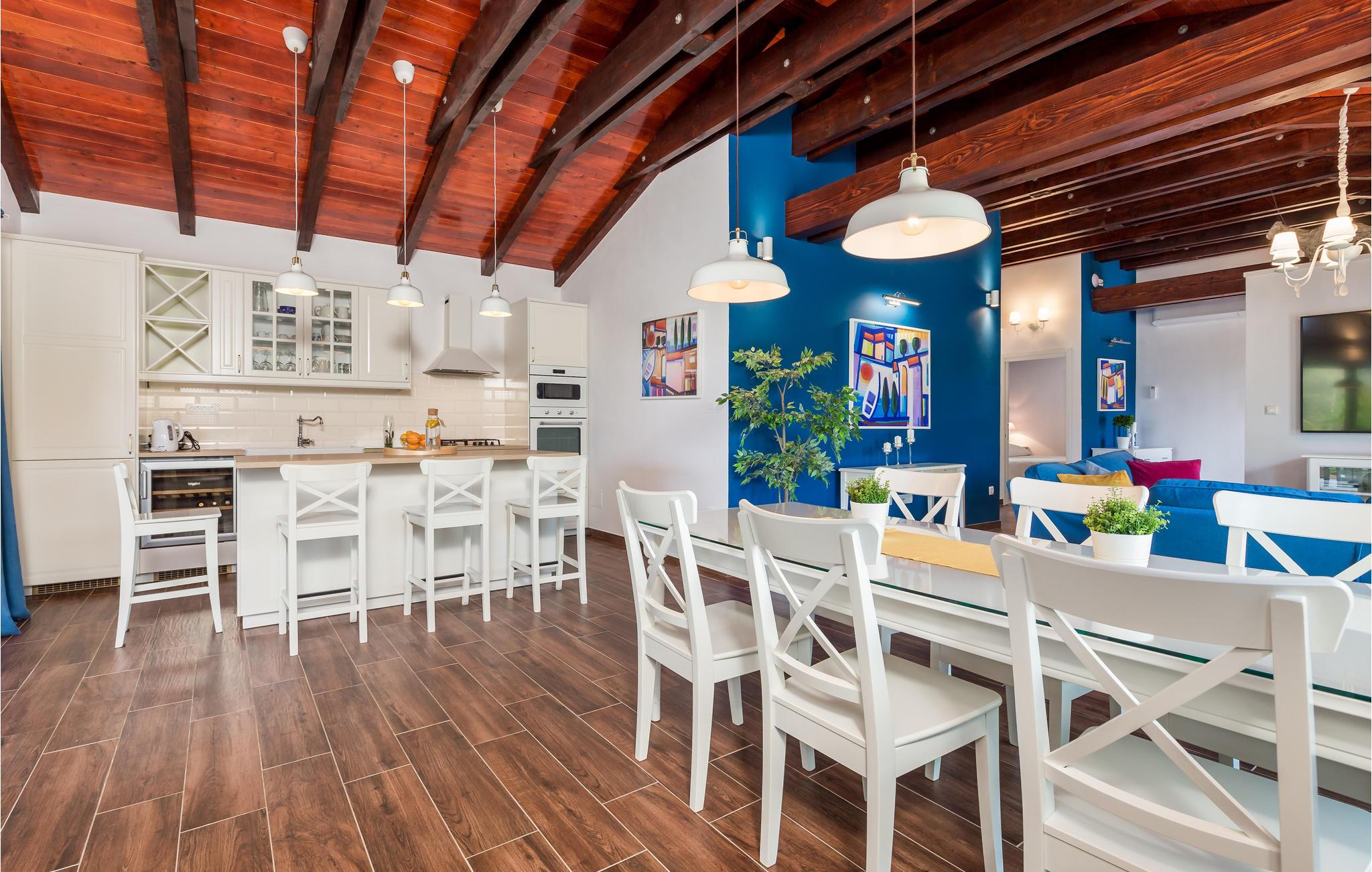 Sie wohnen in einem charmanten Ferienhaus in der Nähe des Meeres, von dem Sie nur durch eine lokale Straße getrennt sind. Das Haus ist wunderschön und modern eingerichtet, mit viel Liebe und Aufmerksamkeit und wird Ihnen einen erholsamen Urlaub garantieren. Es besteht aus einer Küche mit Essbereich, Wohnzimmer, drei Schlafzimmern, drei Bädern und einer zusätzlichen Toilette.