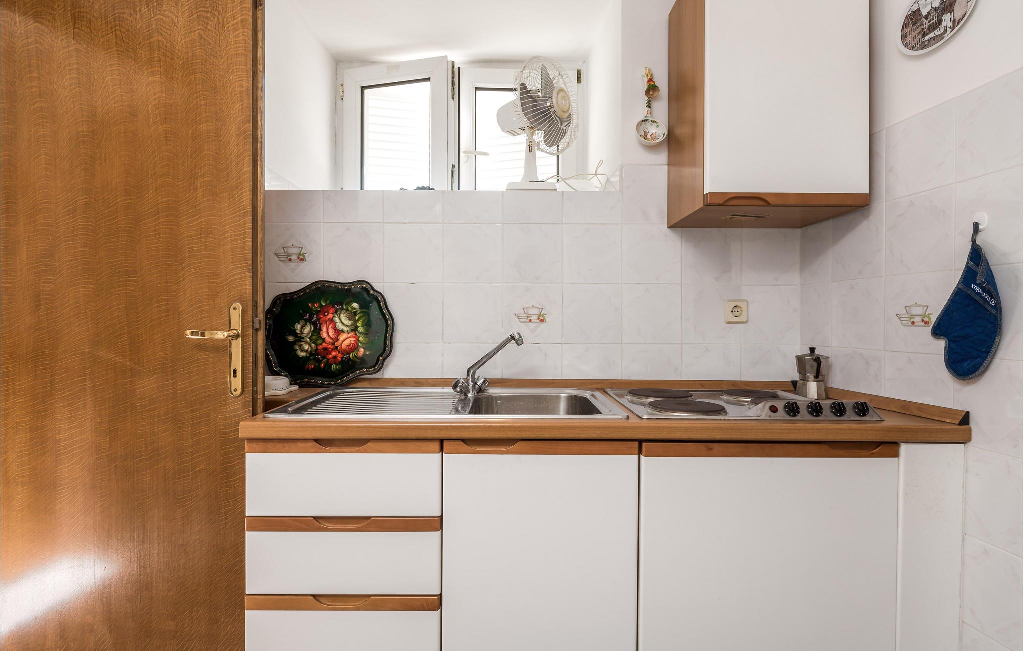 Verbringen Sie einen zauberhaften Urlaub in der wunderschönen kleinen Inselstadt Veli Losinj auf der Insel Losinj, die für ihr kristallklares Meer und ihre Pinienwälder am Meer, Promenaden und zahlreiche Sport- und Freizeitmöglichkeiten bekannt ist. Im Erdgeschoss dieses Hauses befinden sich zwei kleinere Wohnungen CKL268 und CKL269, ideal für Paare. Beide Wohnungen sind einfach ausgestattet, verfügen über Ventilatoren, eine kleine Küche, ein Schlafzimmer und ein Badezimmer.