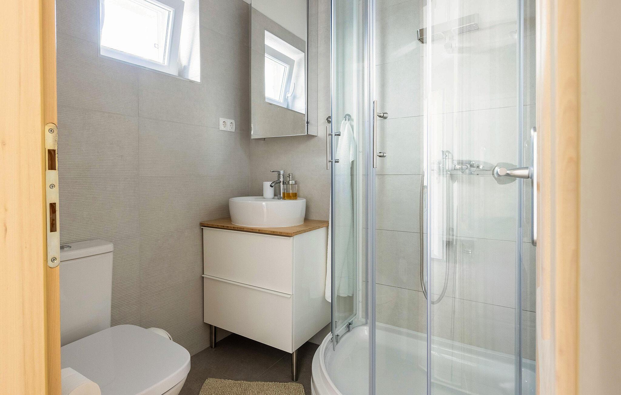 - WC mit warmem und kaltem Wasser, Dusche