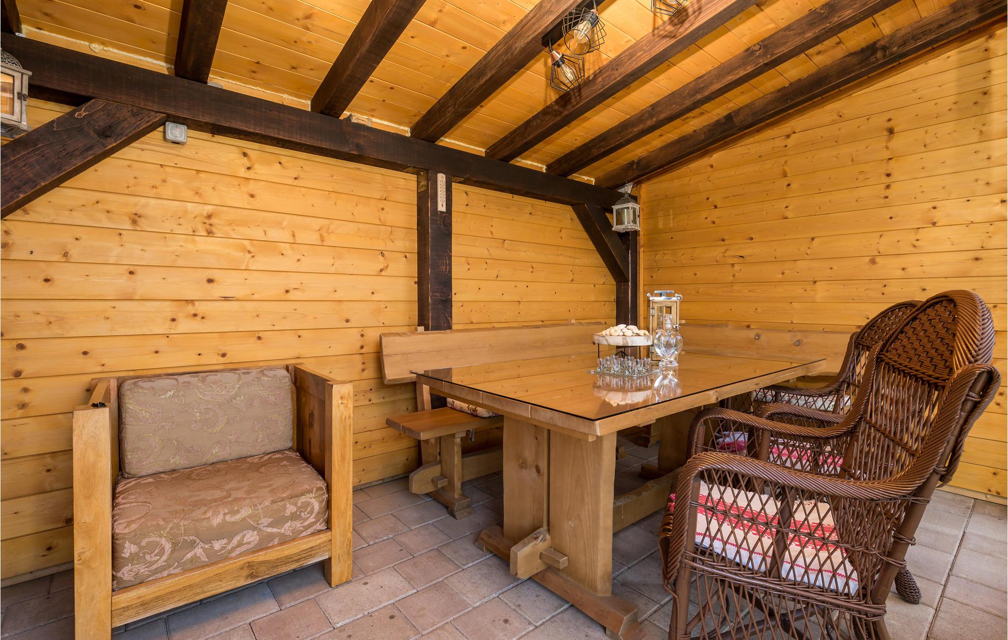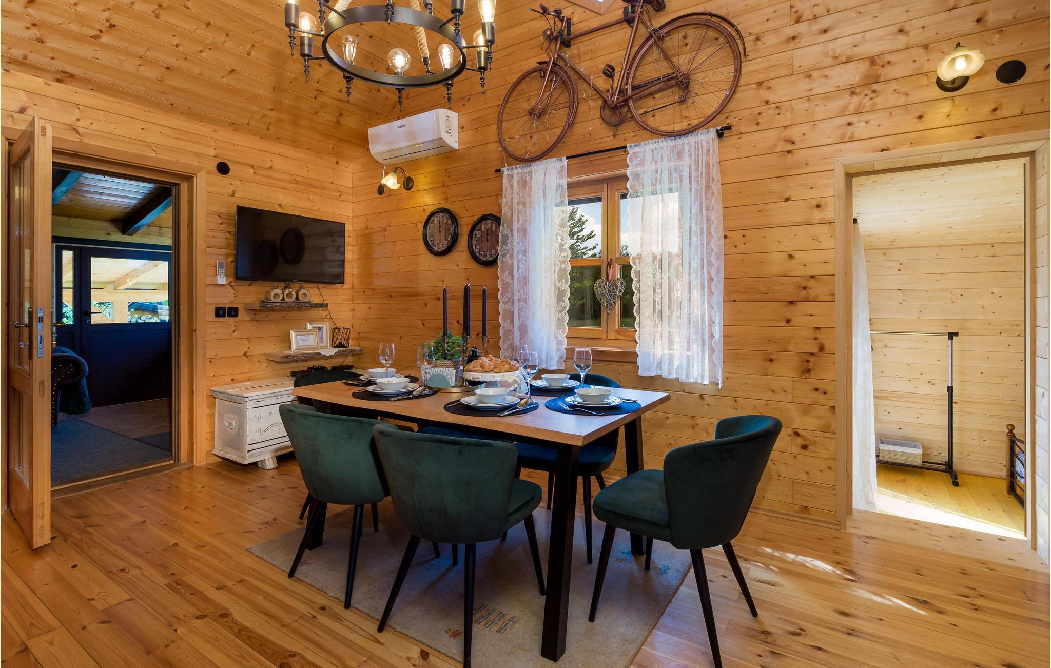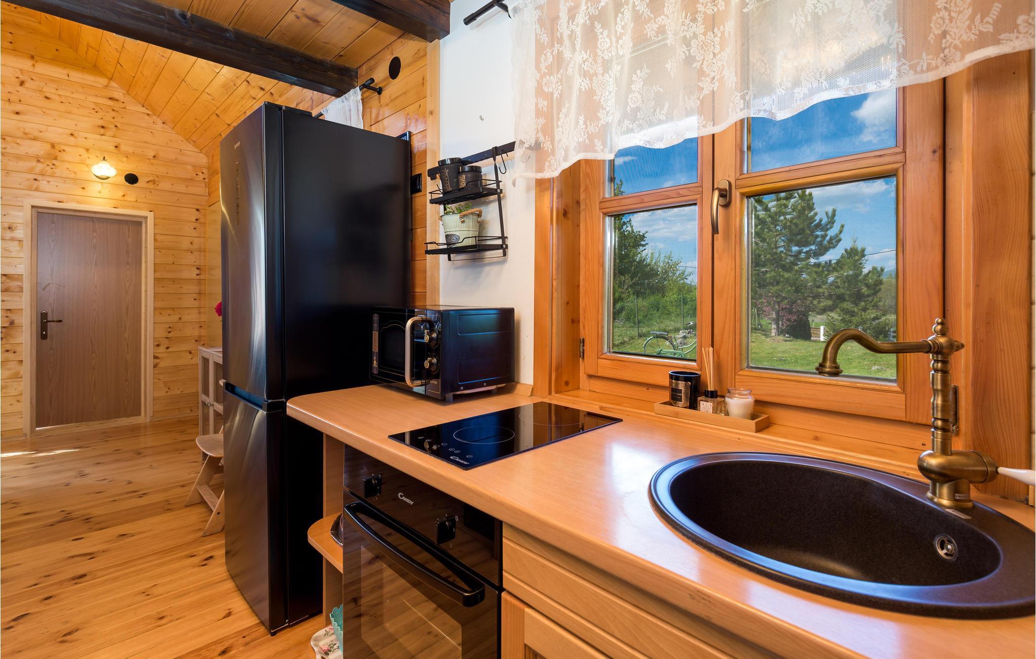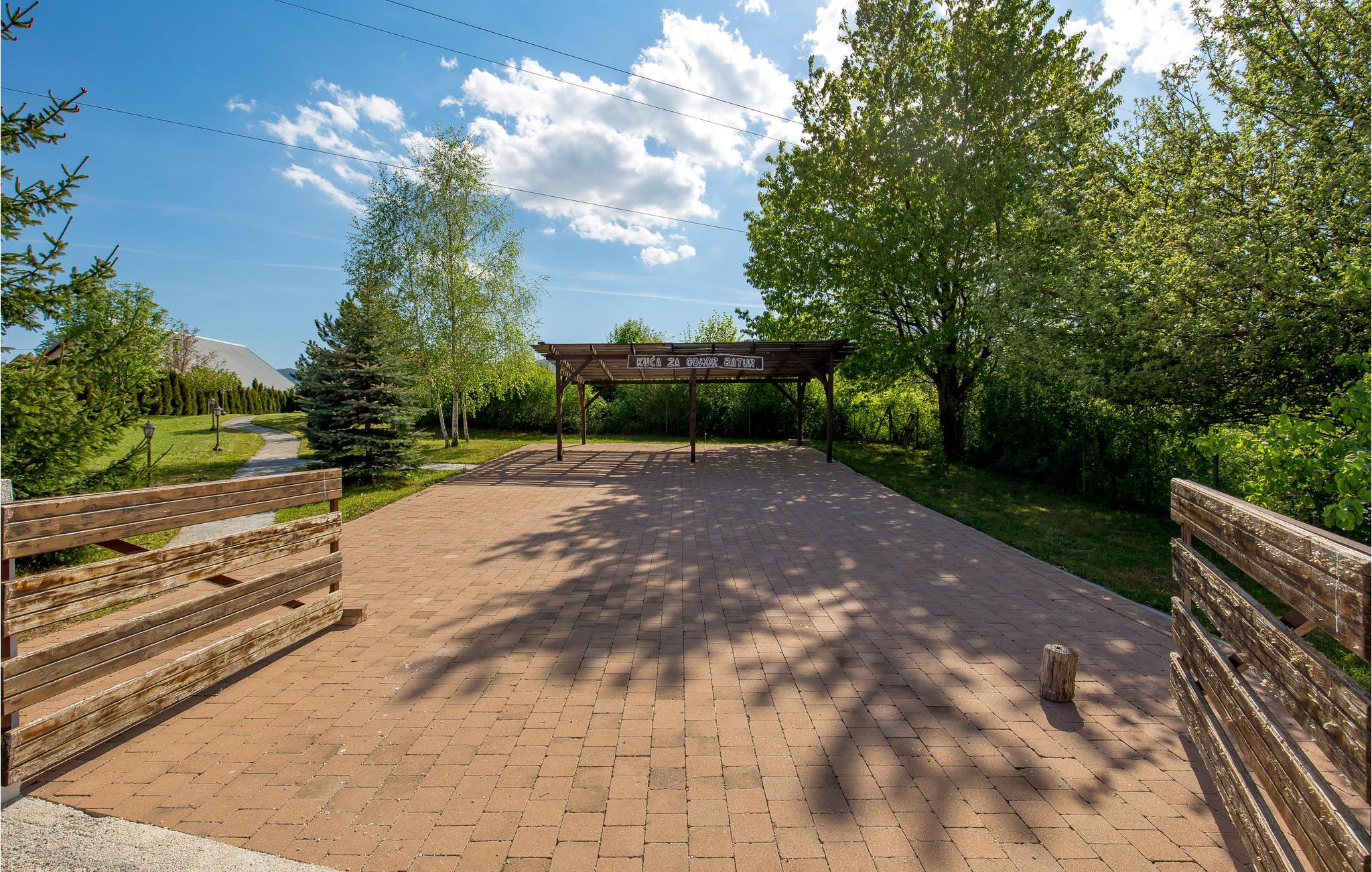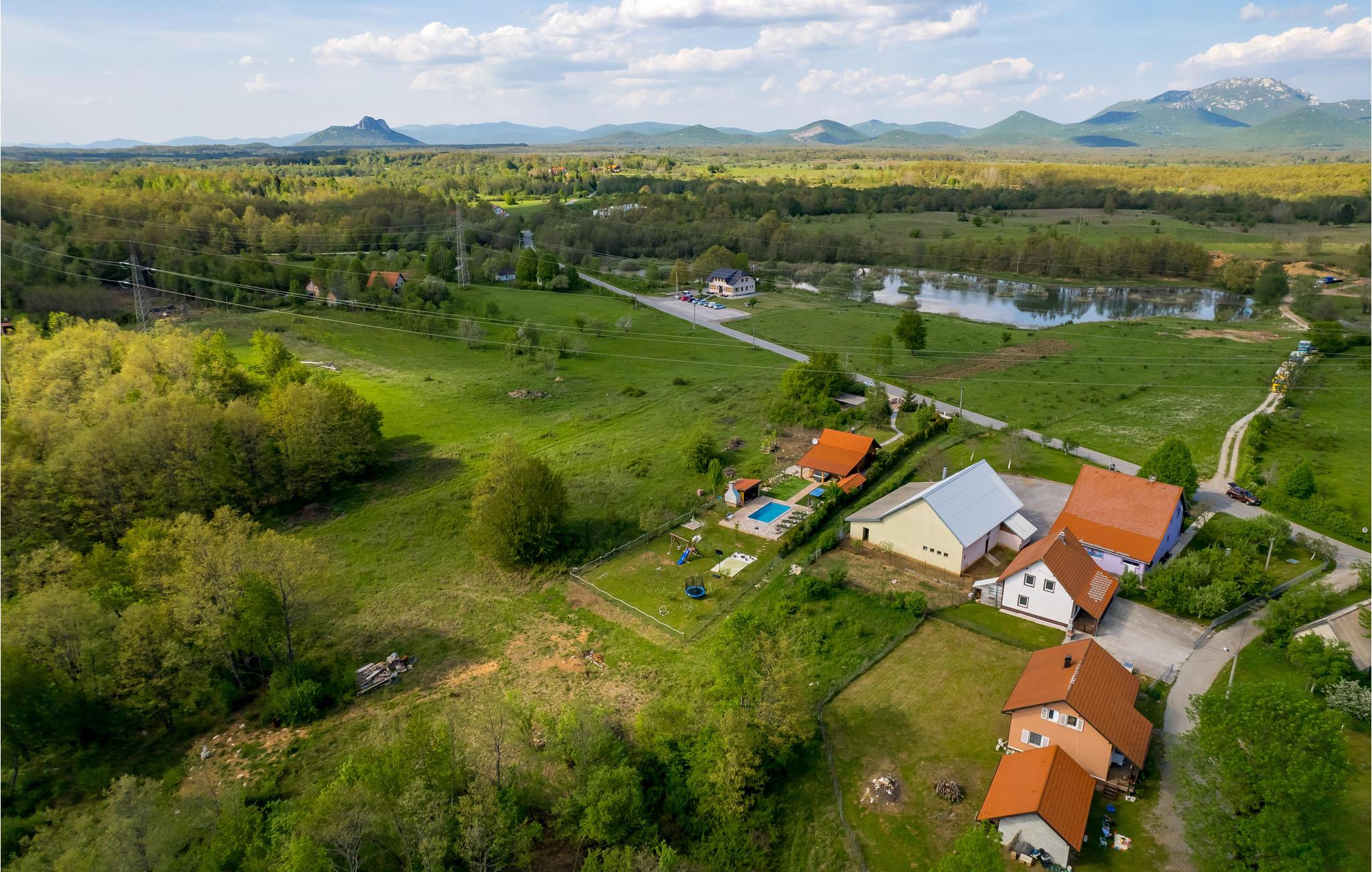 Dieses helle und geräumige Ferienhaus mit Pool ist perfekt geeignet für Ihren Familienurlaub. Stilvoll dekoriert, bietet es Ihnen maximalen Komfort und Erholung. Das Haus erstreckt sich über das Erdgeschoss und die Galerie. Im Erdgeschoss gibt es eine offene Küche mit allen notwendigen Annehmlichkeiten, ein komfortables Wohnzimmer mit Ausziehcouch und Kamin. Sie haben auch Zugang auf eine große Terrasse mit angrenzendem Pool, der ideal zur Erfrischung im Sommer ist. Der Schlafbereich mit Doppelbett und Einzelbett liegt auf der Galerie. Der Keller bietet Ihnen einen Unterhaltungs- und Aufenthaltsraum. Im großen Garten können Sie Ihre Lieblingsspezialitäten am Grill zubereiten und neben dem Pool im Außen-Whirlpool entspannen. Genießen Sie den herrlichen Ausblick auf die Berge und den See sowie die Nähe zum Wald. Erkunden Sie die umliegende Natur mit dem Fahrrad und besuchen Sie das Museum des großen Nikola Tesla in der Nähe, oder den Nationalpark Plitvicer Seen. Zum Meer sind es nur etwa 50 km.