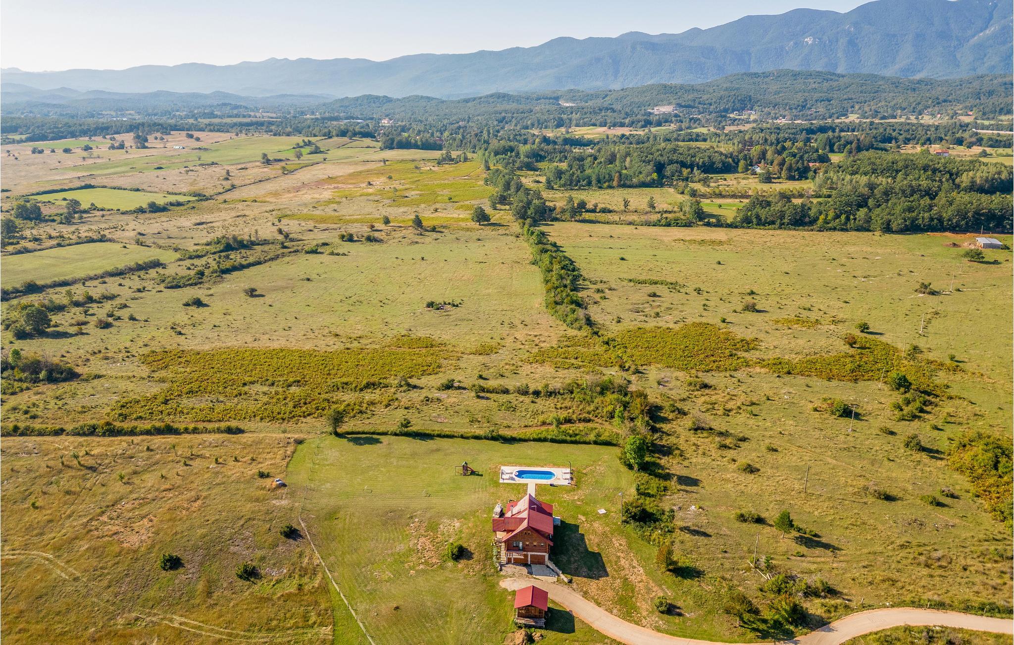 Draußen laden die schönen Terrasse mit Gartenmöbeln und der Poolbereich mit beheizbarem Pool zu entspannten Stunden an der frischen Luft ein. Entspannen Sie hier mit Panoramablick auf die Berge, während die Kinder auf dem Grundstück spielen oder im schönen Pool planschen.