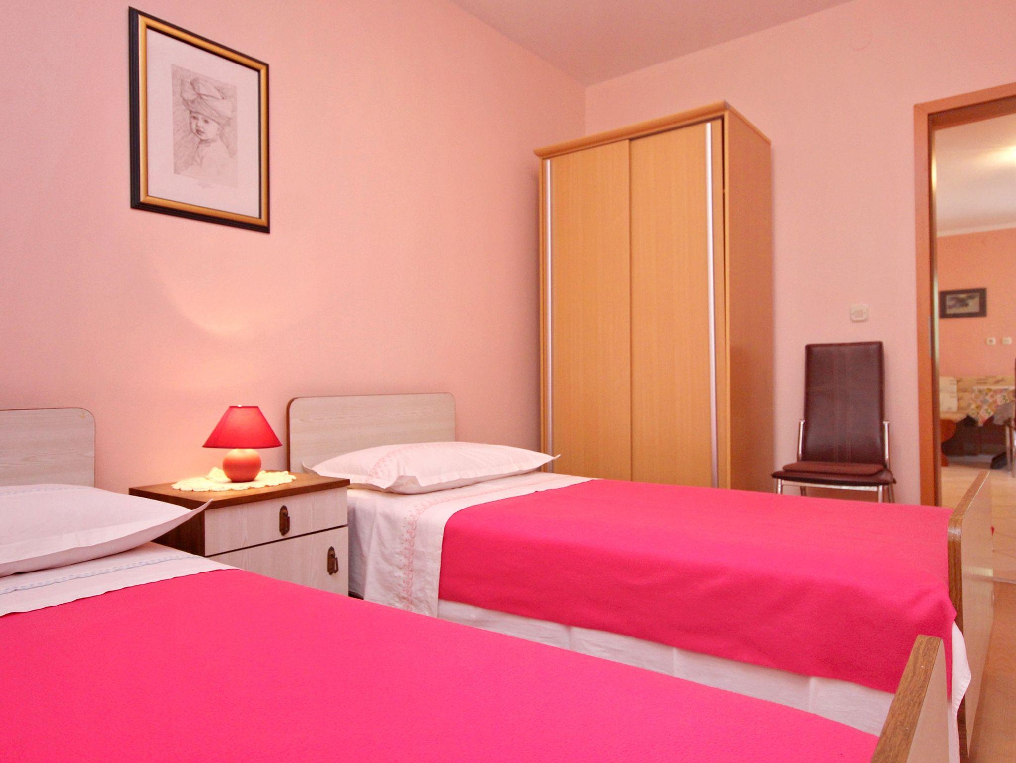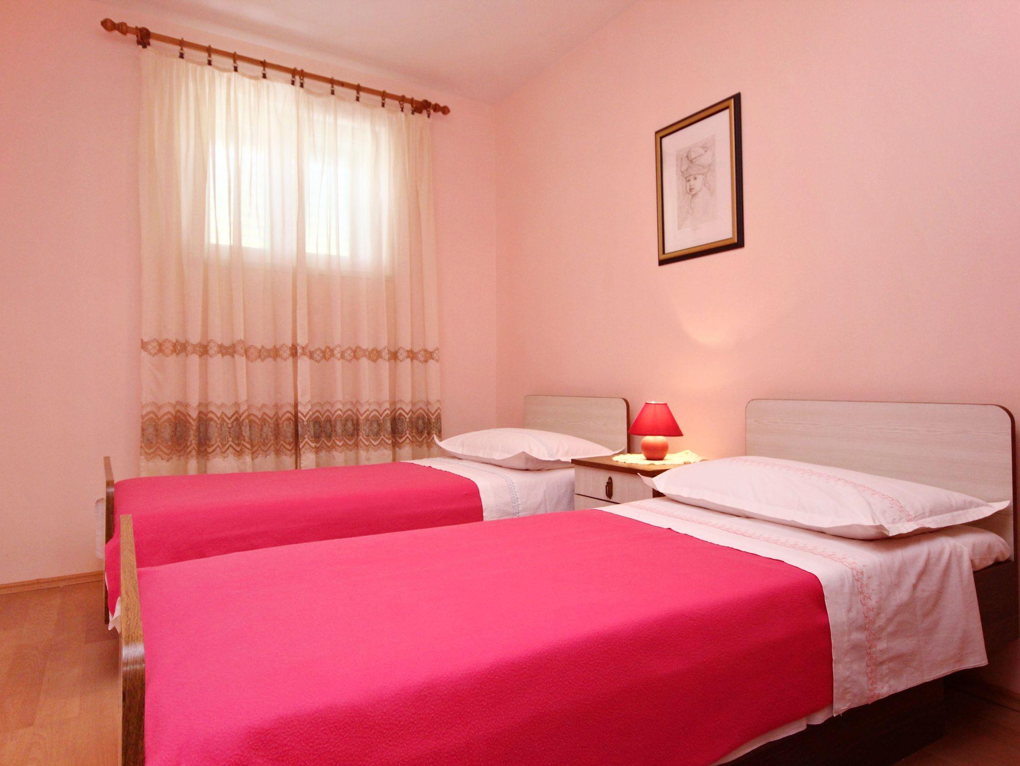 Ferienwohnung bietet Platz für 4 Gäste. Die Betten sind in Schlafzimmern, die es 2 gibt, innerhalb einer Gesamtfläche von 45m2, angeordnet. Die Gäste haben eine eigene Terrasse zur Verfügung, auf der sie in warmen Sommernächten genießen können. Für vollen Genuss und Entspannung gibt es einen privaten Grill für Gäste dieser Unterkunft. IM PREIS INBEGRIFFEN: Kurtaxe, Endreinigung, Klimatisierung, Parkplatz, Internet, Bügeleisen, Bügelbrett. VERBINDLICHE ZUSÄTZLICHE KOSTEN: Aufzahlung für Kurzaufenthalte (prozentualer Zuschlag pro Nächtigungsanzahl: 30% - 1, 20% - 2, 10% - 3). Die Verfügbarkeit zusätzlicher Dienstleistungen in Ihrem reservierten Termin und die Preise derselben (falls nicht aufgeführt) müssen im Voraus überprüft werden. Zusätzliche Dienstleistungen die in der Zahlungsaufforderung nicht aufgeführt sind werden direkt beim Vermieter bezahlt, angenommen der Gast nutzt auch diese.