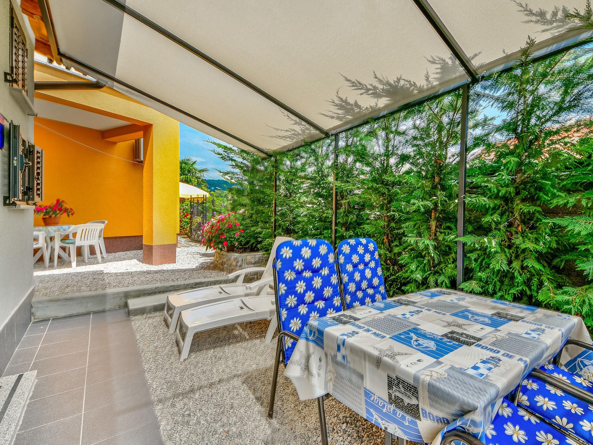 Bungalow "Karolina", 2 storeys. Above Lovran, in the hamlet Opric 3 km from the centre of Lovran, in a quiet, sunny position, 3 km from the sea, 3 km from the beach, in a cul-de-sac. Private: terrace (16 m2), garden furniture. In the house: internet access, washing machine. Parking at the house on the premises. Shop 2 km, restaurant 3 km, bus stop 300 m, pebble beach 3 km, public bathing area 3 km, concrete beach 3 km. Please note: the owner lives on the same property. Property ref. HR3050.317 is situated on the same property.
