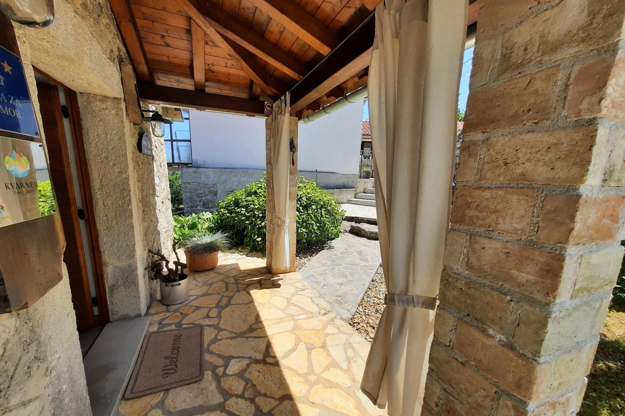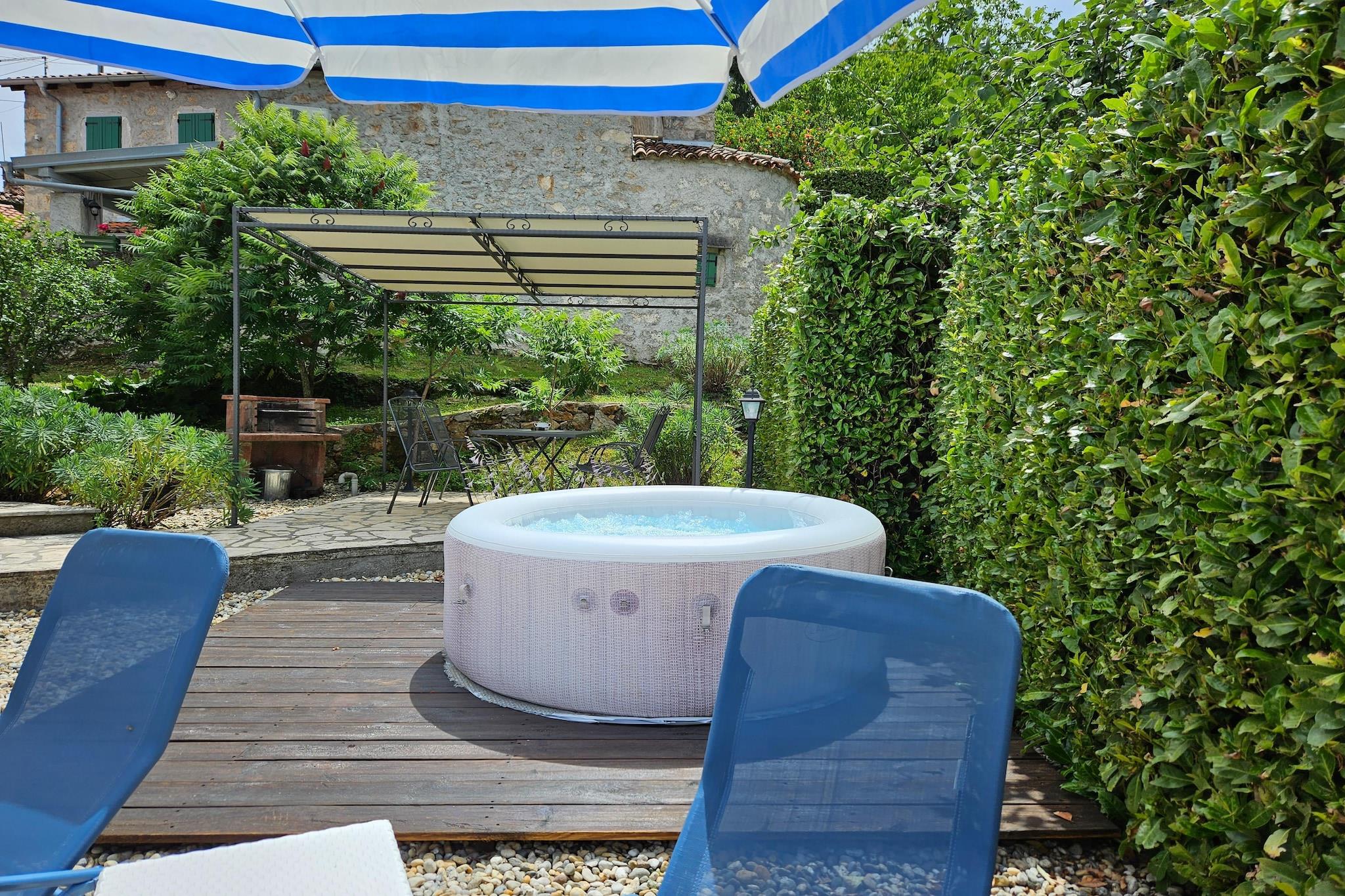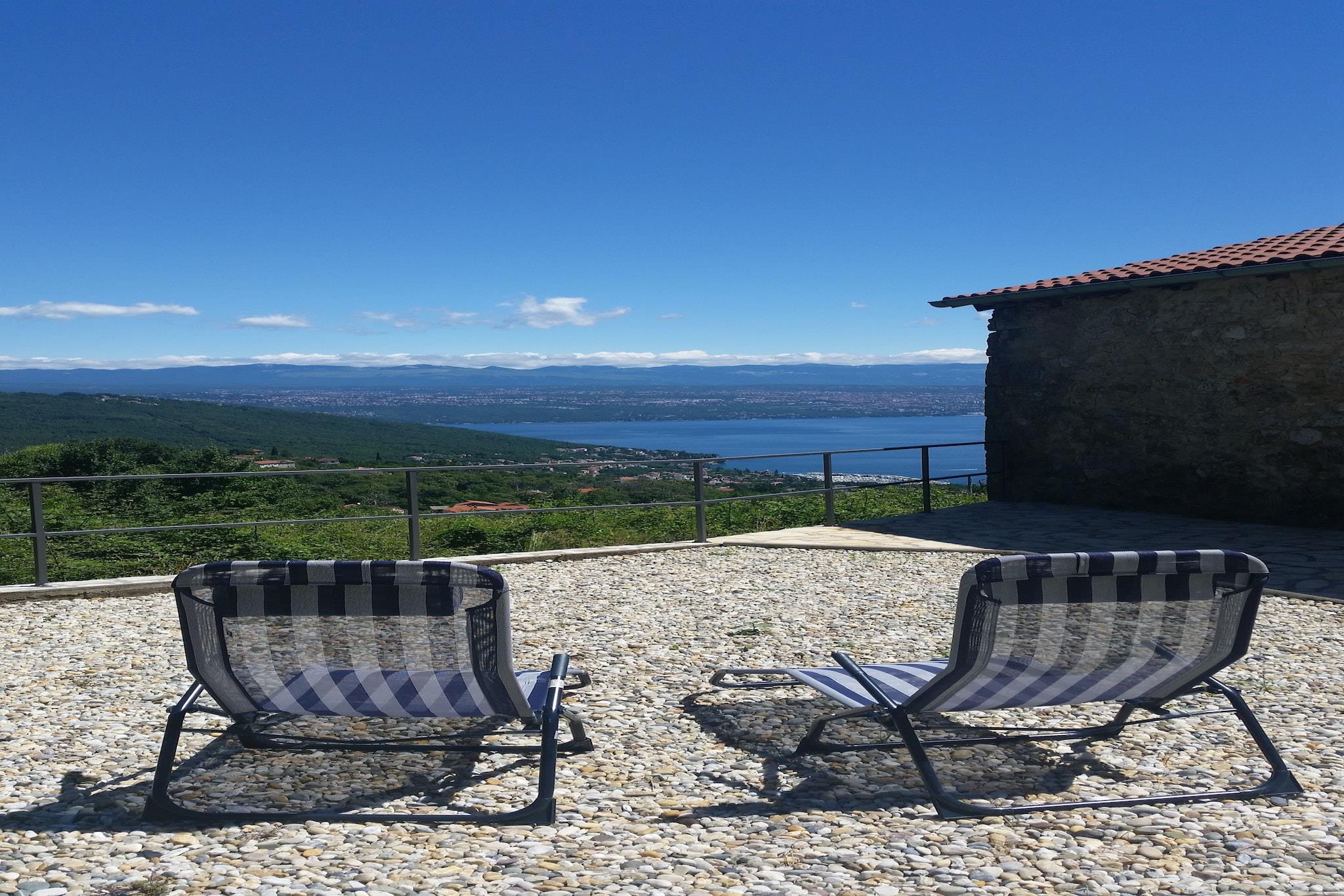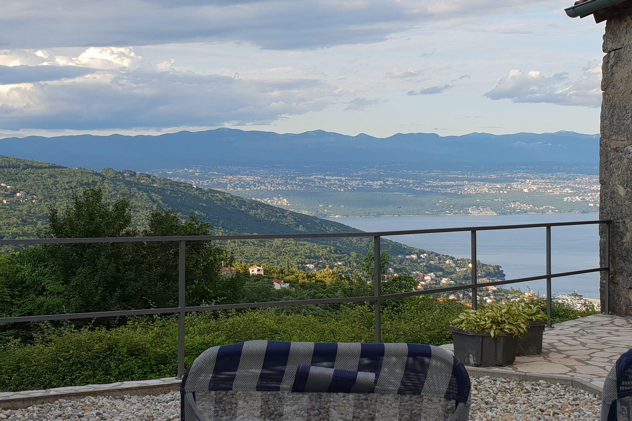 Lovingly renovated stone house from the 19th century with a beautiful view over Lovran and the sea, in the small village of Dobrec. The house is located above the small town of Lovran, on the slope of the Ucka mountain, ideal for those seeking peace and relaxation. From the entrance on the ground floor you enter the open living and dining room with adjoining hall and bathroom. A staircase leads to the basement, where there are two further bedrooms, one of which has access to the terrace. Outside there is another terrace with sun loungers, parasols and BBQ facilities. Lovran's cityscape is mainly characterized by beautiful Art Nouveau villas and beautiful parks with exotic plants. There are swimming opportunities here, especially along the 12 km long coastal promenade. Details included: consumption-based energy costs, bed linen, towels, final cleaning. Activities nearby: Hiking in the hills around is one of the favorite activities in the area. Highly recommended is the ascent to the 1.400 m high mountain top Vojak, from where you will find a magnificent view to island Krk and even to Italy when the weather is clear. There are a number of other well maintained hiking trails, which are easier to pass. The longest walk leads from Lovran to Opatija. Not suitable for people with reduced mobility. Jacuzzi Availability: Open from 30.05. – 30.09. of the current year, possibly earlier depending on weather conditions.