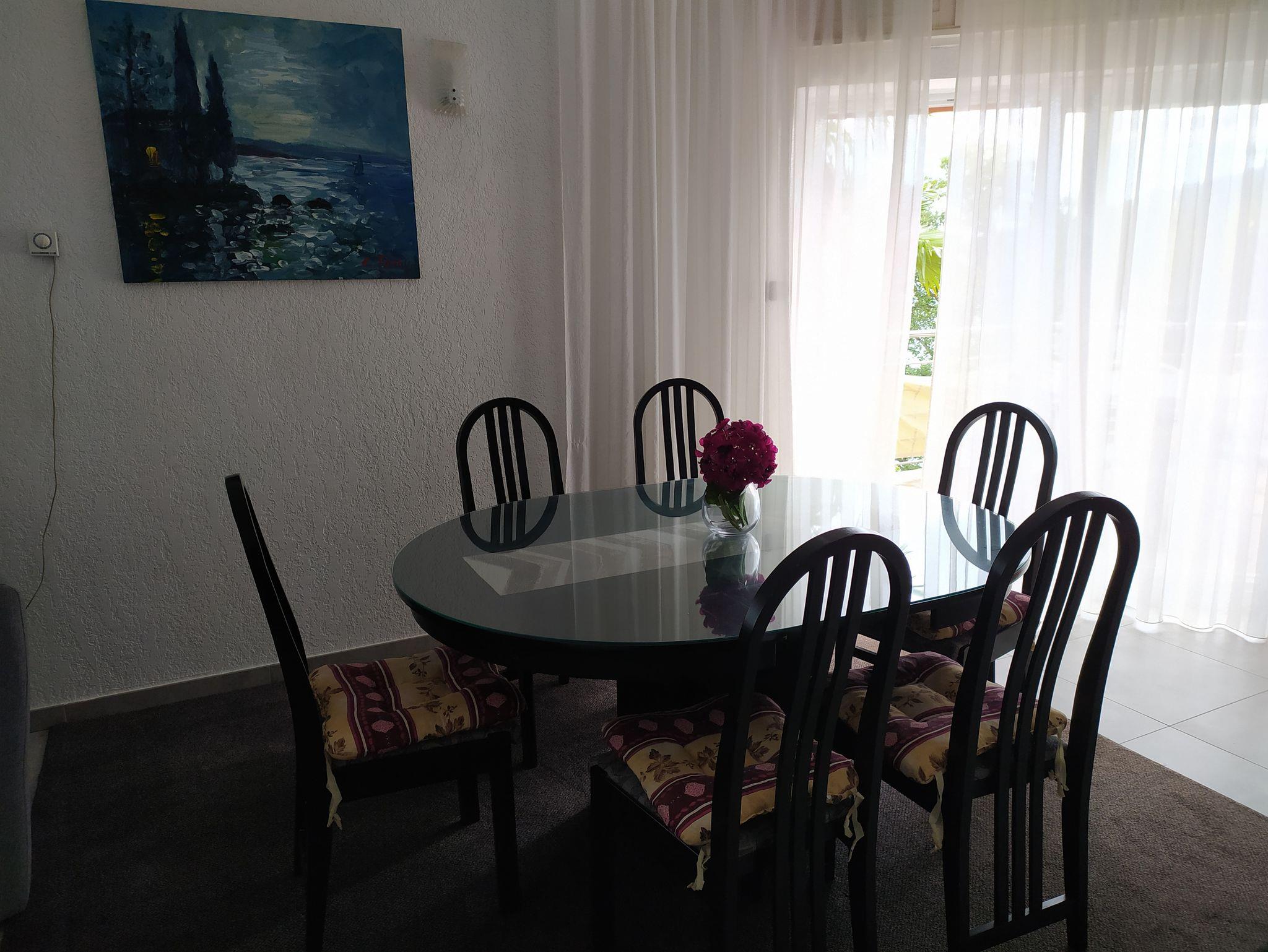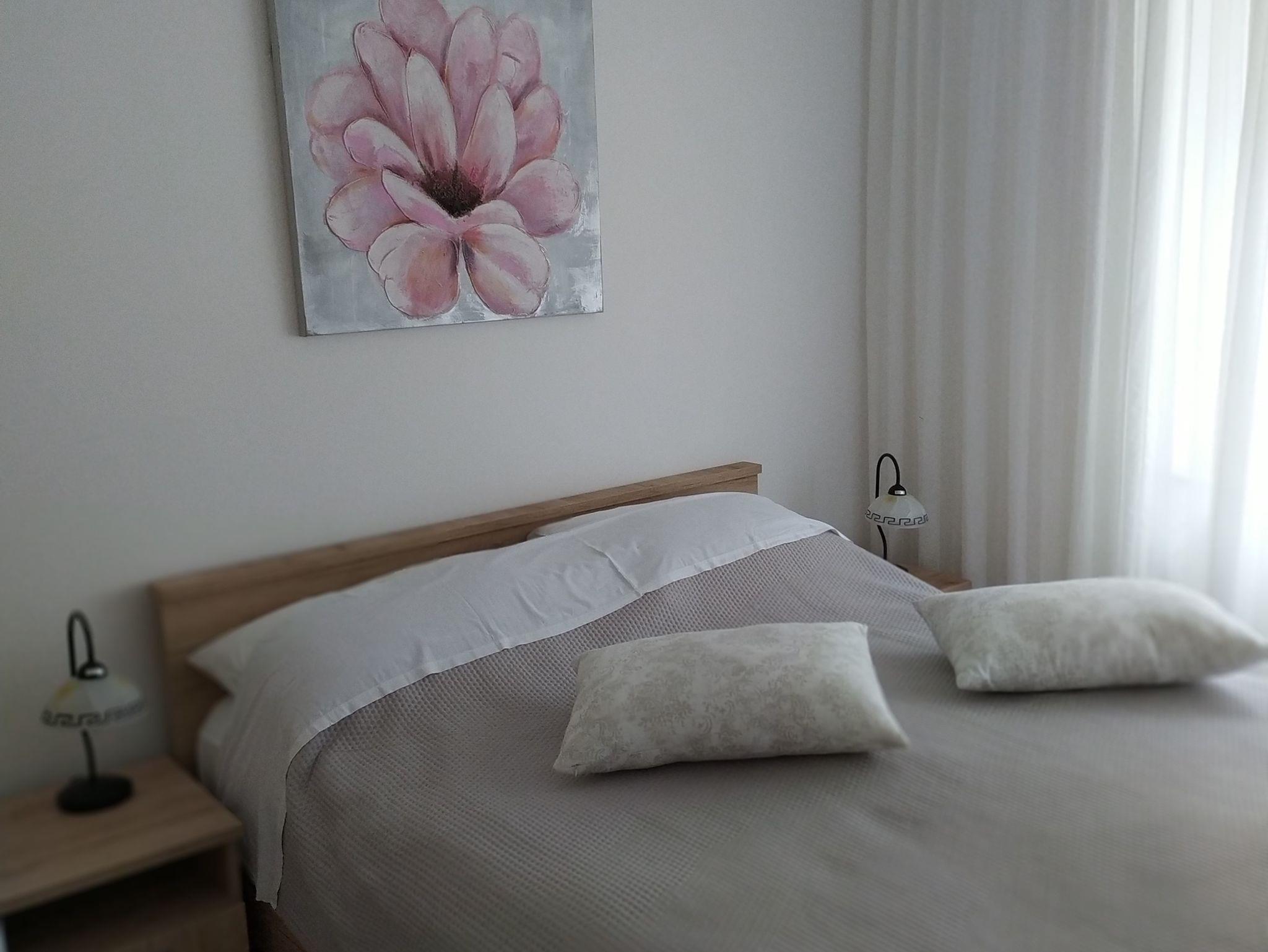 Ferienwohnung bietet Platz für 6 Gäste. Die Betten sind in Schlafzimmern, die es 3 gibt, innerhalb einer Gesamtfläche von 74m2, angeordnet. Die Gäste haben eine eigene Terrasse zur Verfügung, auf der sie in warmen Sommernächten genießen können. Das Apartment bietet Meerblick. Es ist erlaubt, Speisen auf dem Gemeinschafts-Grill vorzubereiten. IM PREIS INBEGRIFFEN: Kurtaxe, Endreinigung, Klimatisierung, Parkplatz, Garage, Internet, Kinderbett, Bügeleisen, Bügelbrett, Föhn, Liegestühle. Die Verfügbarkeit zusätzlicher Dienstleistungen in Ihrem reservierten Termin und die Preise derselben (falls nicht aufgeführt) müssen im Voraus überprüft werden. Zusätzliche Dienstleistungen die in der Zahlungsaufforderung nicht aufgeführt sind werden direkt beim Vermieter bezahlt, angenommen der Gast nutzt auch diese.