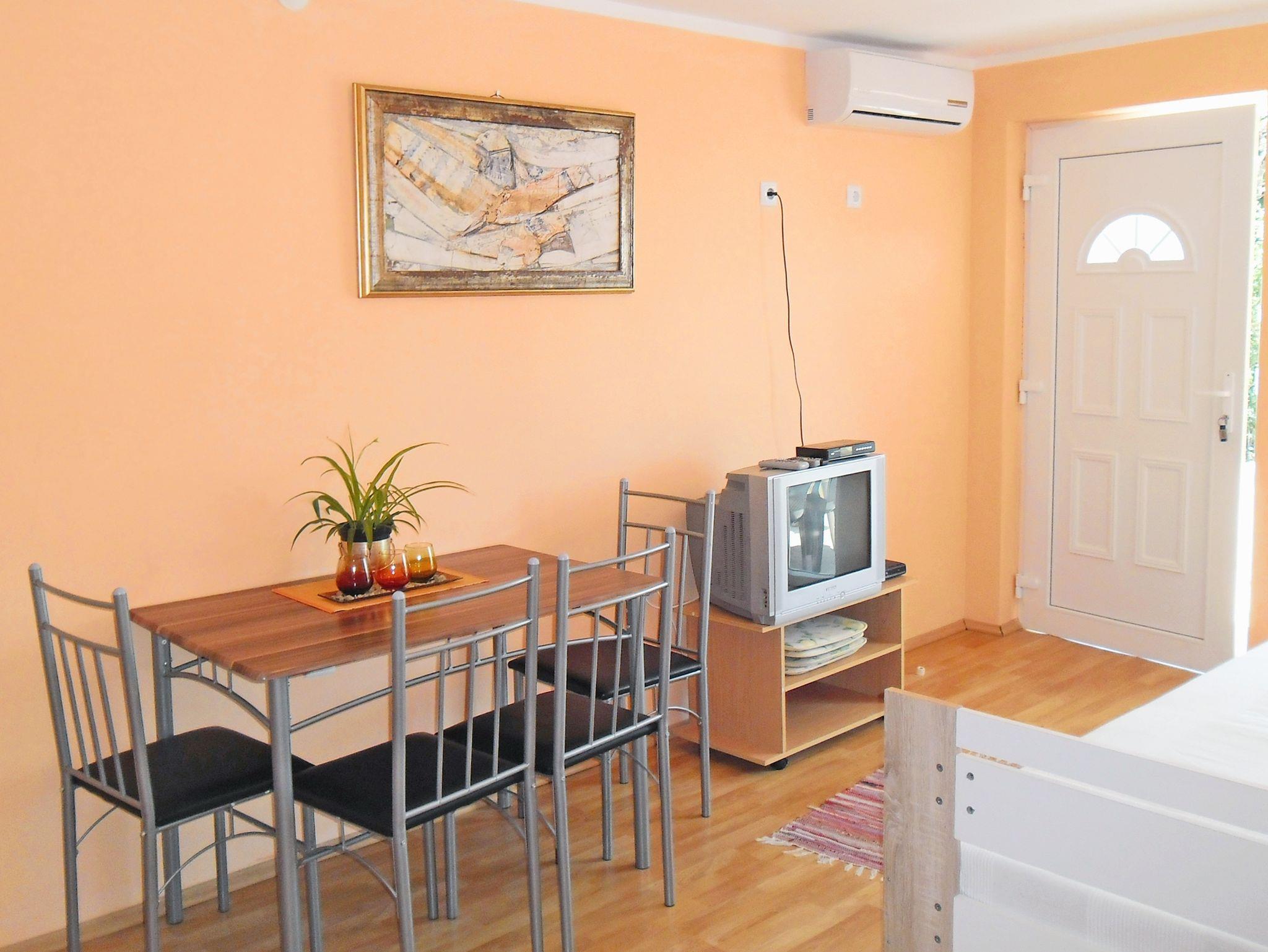 Ferienwohnung bietet Platz für 4 Gäste. Die Betten sind in Schlafzimmern, die es 1 gibt, und in Esszimmer, innerhalb einer Gesamtfläche von 28m2, angeordnet. Die Gäste haben eine eigene Terrasse zur Verfügung, auf der sie in warmen Sommernächten genießen können. Das Apartment bietet Meerblick. Es ist erlaubt, Speisen auf dem Gemeinschafts-Grill vorzubereiten. In der Unterkunftseinheit besteht die Möglichkeit des Mitbringens von Haustieren gegen Aufpreis. IM PREIS INBEGRIFFEN: Endreinigung, Klimatisierung, Internet, Bügeleisen, Bügelbrett, Föhn. VERBINDLICHE ZUSÄTZLICHE KOSTEN: Kurtaxe (Erwachsene 0,93 € - 2,00 € Nacht/Person, Kinderermäßigung 12 - 17 Jahre), Aufzahlung für Kurzaufenthalte (prozentualer Zuschlag pro Nächtigungsanzahl: 30% - 1, 20% - 2, 10% - 3). UNVERBINDLICHE ZUSÄTZLICHE KOSTEN: Haustiere (10,00 € pro Nacht), Zusatzbett (10,00 € pro Nacht). Die Verfügbarkeit zusätzlicher Dienstleistungen in Ihrem reservierten Termin und die Preise derselben (falls nicht aufgeführt) müssen im Voraus überprüft werden. Zusätzliche Dienstleistungen die in der Zahlungsaufforderung nicht aufgeführt sind werden direkt beim Vermieter bezahlt, angenommen der Gast nutzt auch diese.