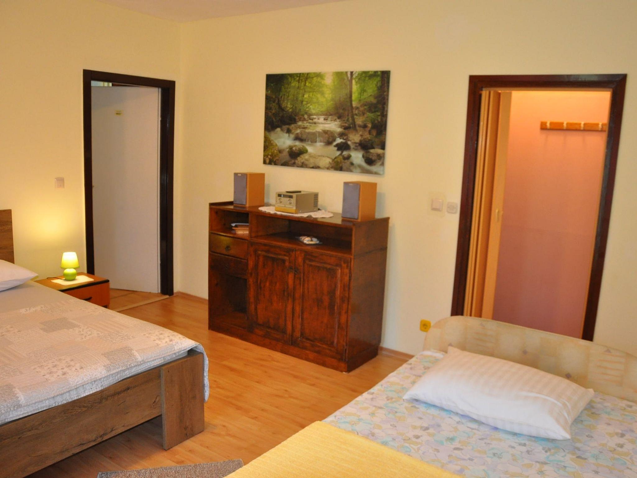 Ferienwohnung bietet Platz für 5 Gäste. Die Betten sind in Schlafzimmern, die es 1 gibt, und in Wohnzimmer, innerhalb einer Gesamtfläche von 33m2, angeordnet. Die Gäste haben eine eigene Terrasse zur Verfügung, auf der sie in warmen Sommernächten genießen können. Das Apartment bietet Meerblick. IM PREIS INBEGRIFFEN: Kurtaxe, Endreinigung, Klimatisierung, Parkplatz, Internet, Bügeleisen, Bügelbrett, Föhn. VERBINDLICHE ZUSÄTZLICHE KOSTEN: Aufzahlung für Kurzaufenthalte (prozentualer Zuschlag pro Nächtigungsanzahl: 30% - 1, 20% - 2, 10% - 3). UNVERBINDLICHE ZUSÄTZLICHE KOSTEN: Wäschewaschen (5,00 € Waschen). Die Verfügbarkeit zusätzlicher Dienstleistungen in Ihrem reservierten Termin und die Preise derselben (falls nicht aufgeführt) müssen im Voraus überprüft werden. Zusätzliche Dienstleistungen die in der Zahlungsaufforderung nicht aufgeführt sind werden direkt beim Vermieter bezahlt, angenommen der Gast nutzt auch diese.