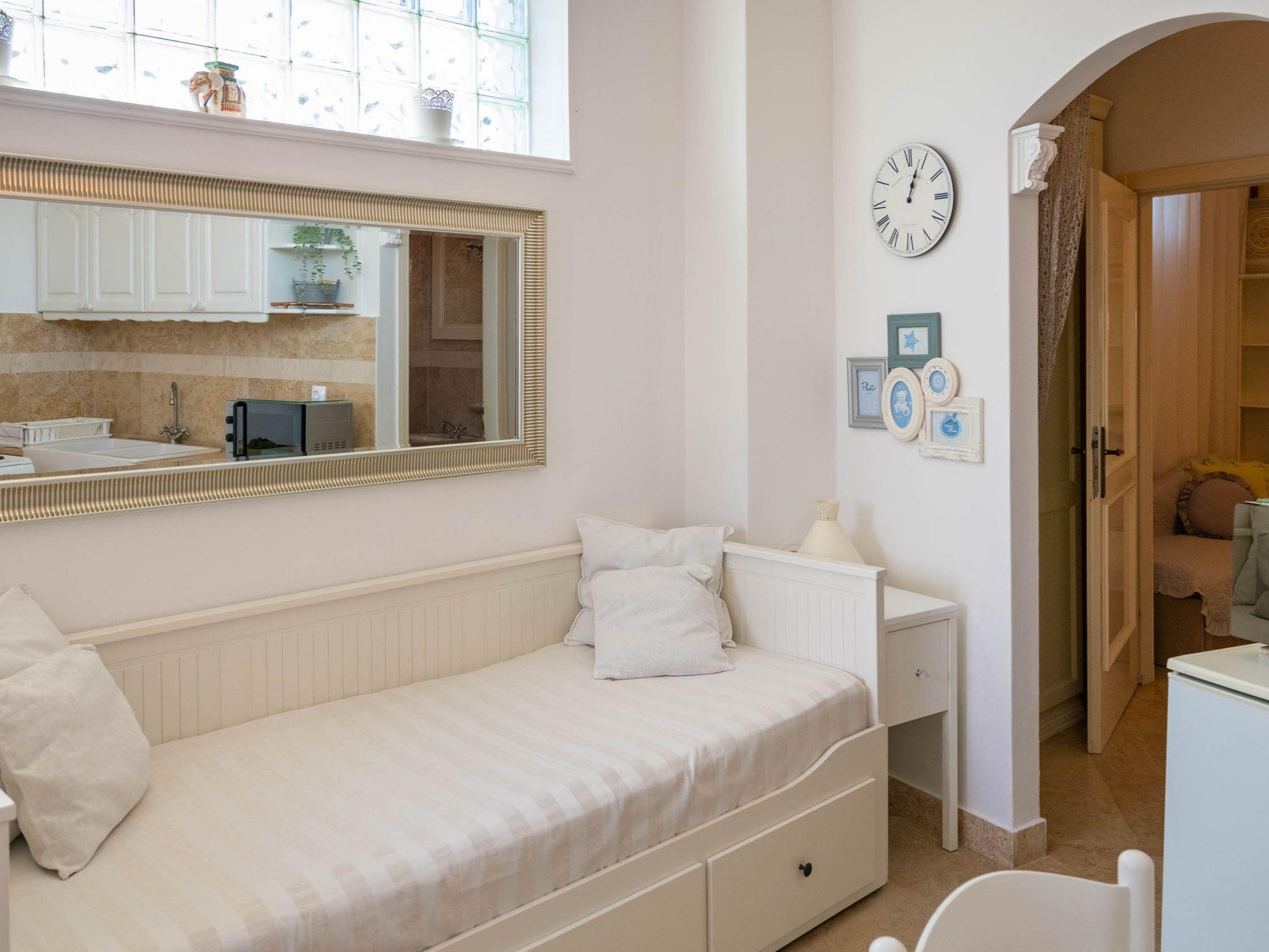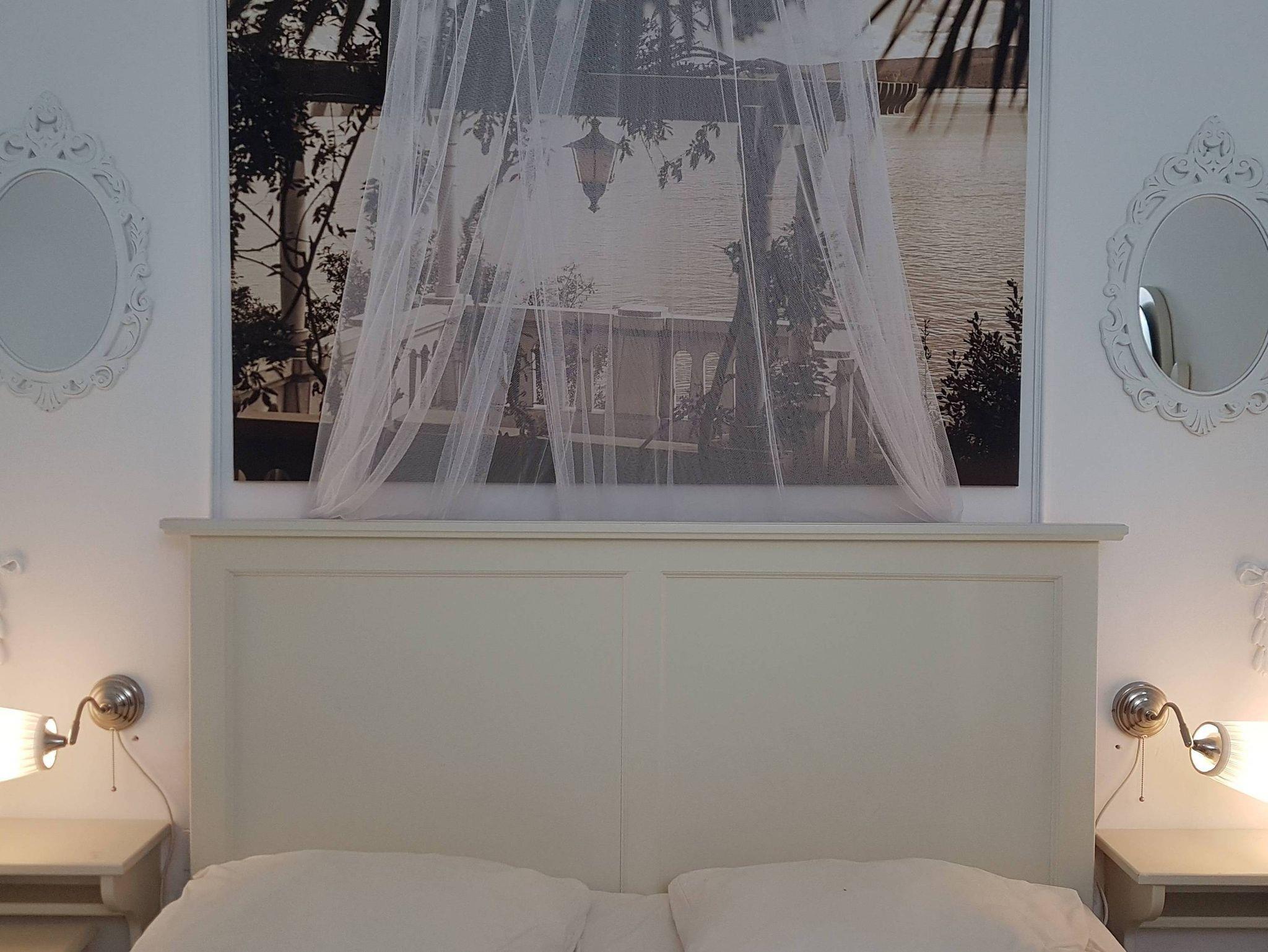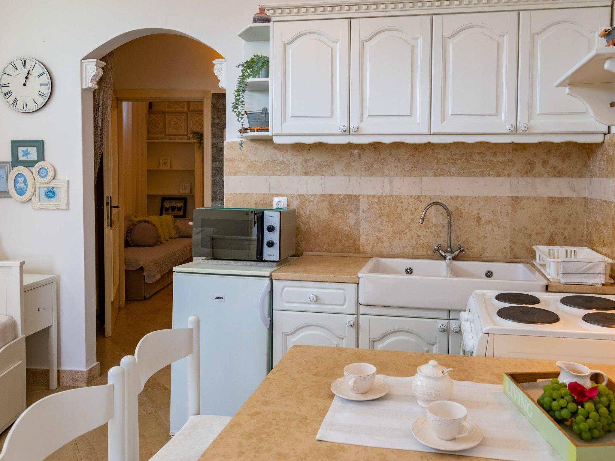Ferienwohnung bietet Platz für 2 Gäste. Die Betten sind in Schlafzimmern, die es 1 gibt, innerhalb einer Gesamtfläche von 32m2, angeordnet. Die Gäste haben eine eigene Terrasse zur Verfügung, auf der sie in warmen Sommernächten genießen können. Das Apartment bietet Meerblick. Es ist erlaubt, Speisen auf dem Gemeinschafts-Grill vorzubereiten. Während ihres Aufenthalts können Gäste das gemeinsam zur Nutzung stehende Schwimmbad benutzen. In der Unterkunftseinheit besteht die Möglichkeit des Mitbringens von Haustieren gegen Aufpreis. In der gebuchten Unterkunftseinheit zahlt man am Ort ein Depositum ( der Preis ist an der Internetseite angeführt ). IM PREIS INBEGRIFFEN: Kurtaxe, Endreinigung, Klimatisierung, Pool, Parkplatz, Internet, Wäschewaschen, Kinderbett, Bügeleisen, Bügelbrett, Föhn. VERBINDLICHE ZUSÄTZLICHE KOSTEN: Kaution (100,00 € Einmalzahlung), Aufzahlung für Kurzaufenthalte (prozentualer Zuschlag pro Nächtigungsanzahl: 30% - 1, 20% - 2, 10% - 3). UNVERBINDLICHE ZUSÄTZLICHE KOSTEN: Haustiere (10,00 € pro Nacht), Zusatzbett (15,00 € pro Nacht). Die Verfügbarkeit zusätzlicher Dienstleistungen in Ihrem reservierten Termin und die Preise derselben (falls nicht aufgeführt) müssen im Voraus überprüft werden. Zusätzliche Dienstleistungen die in der Zahlungsaufforderung nicht aufgeführt sind werden direkt beim Vermieter bezahlt, angenommen der Gast nutzt auch diese.