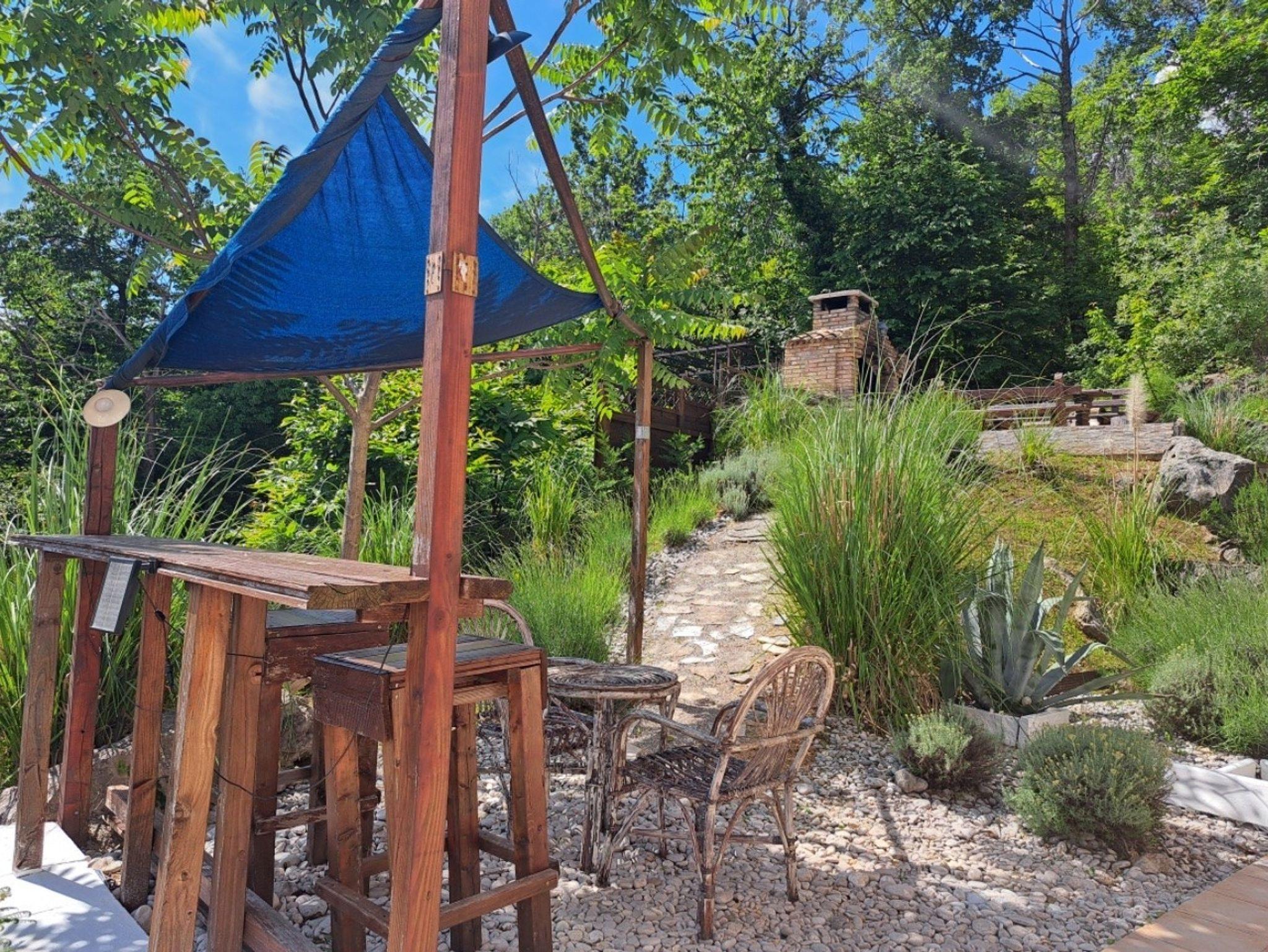 Umgebung des Objekts (Eingerichtet), Hof (600m2, Kinderbereich, Sitzbereich), Parkplatz (Anzahl der Parkplätze: 3, Entfernung vom Objekt: im Hof), Pool: privat, Dimensionen: 8m x 4m x 1.5m, Wassertyp: Süßwasser, WiFi Internet, Boot, Föhn, Bügeleisen, Bügelbrett