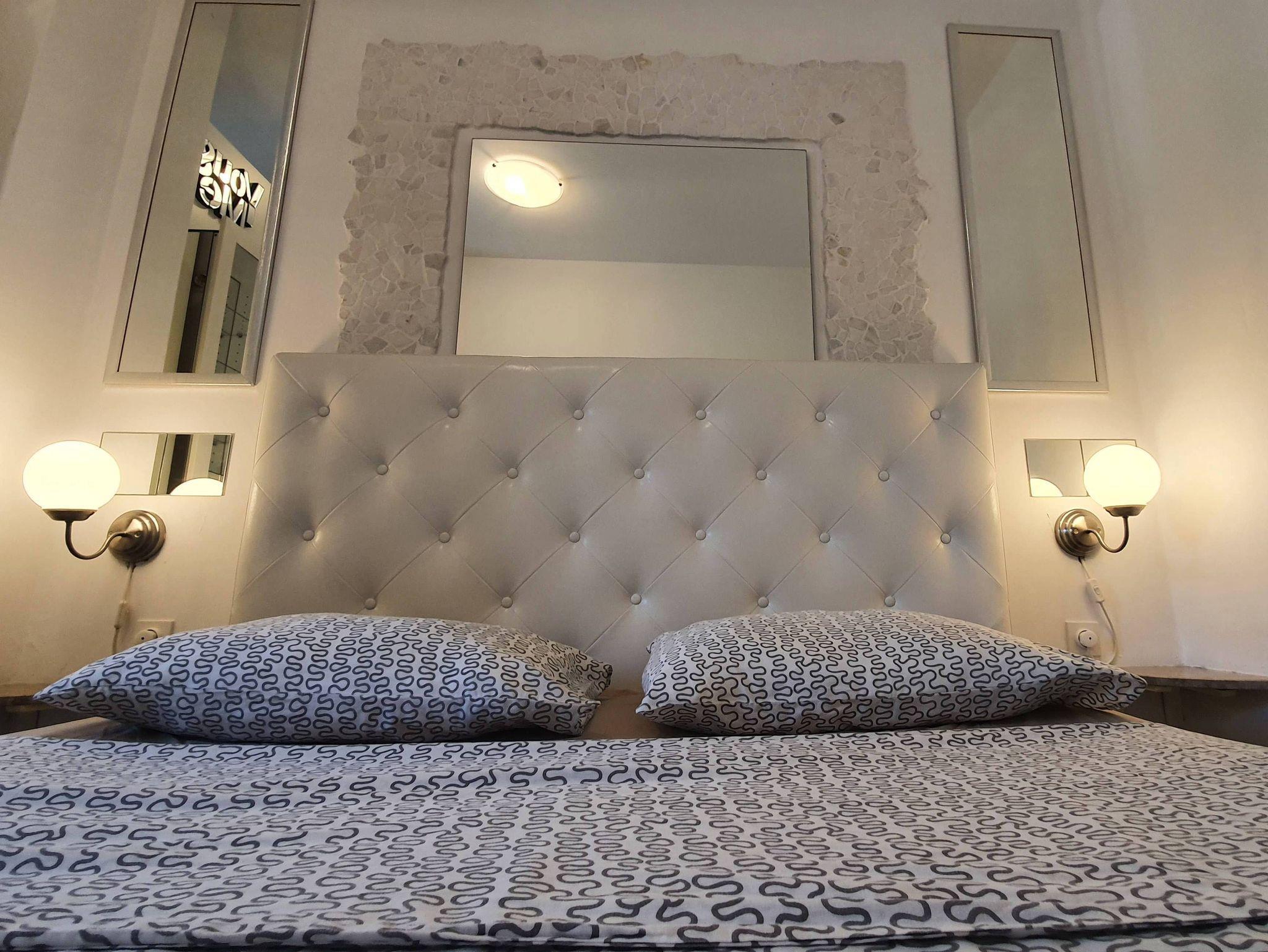 Studio bietet Platz für 2 Gäste. Die Betten sind in Schlafzimmern, die es 1 gibt, innerhalb einer Gesamtfläche von 25m2, angeordnet. Die Gäste haben eine eigene Terrasse zur Verfügung, auf der sie in warmen Sommernächten genießen können. Das Studio-Apartment bietet Meerblick. Es ist erlaubt, Speisen auf dem Gemeinschafts-Grill vorzubereiten. Während ihres Aufenthalts können Gäste das gemeinsam zur Nutzung stehende Schwimmbad benutzen. In der Unterkunftseinheit besteht die Möglichkeit des Mitbringens von Haustieren gegen Aufpreis. In der gebuchten Unterkunftseinheit zahlt man am Ort ein Depositum ( der Preis ist an der Internetseite angeführt ). IM PREIS INBEGRIFFEN: Kurtaxe, Endreinigung, Klimatisierung, Pool, Parkplatz, Internet, Wäschewaschen, Kinderbett, Bügeleisen, Bügelbrett, Föhn. VERBINDLICHE ZUSÄTZLICHE KOSTEN: Kaution (100,00 € Einmalzahlung), Aufzahlung für Kurzaufenthalte (prozentualer Zuschlag pro Nächtigungsanzahl: 30% - 1, 20% - 2, 10% - 3). UNVERBINDLICHE ZUSÄTZLICHE KOSTEN: Haustiere (10,00 € pro Nacht). Die Verfügbarkeit zusätzlicher Dienstleistungen in Ihrem reservierten Termin und die Preise derselben (falls nicht aufgeführt) müssen im Voraus überprüft werden. Zusätzliche Dienstleistungen die in der Zahlungsaufforderung nicht aufgeführt sind werden direkt beim Vermieter bezahlt, angenommen der Gast nutzt auch diese.