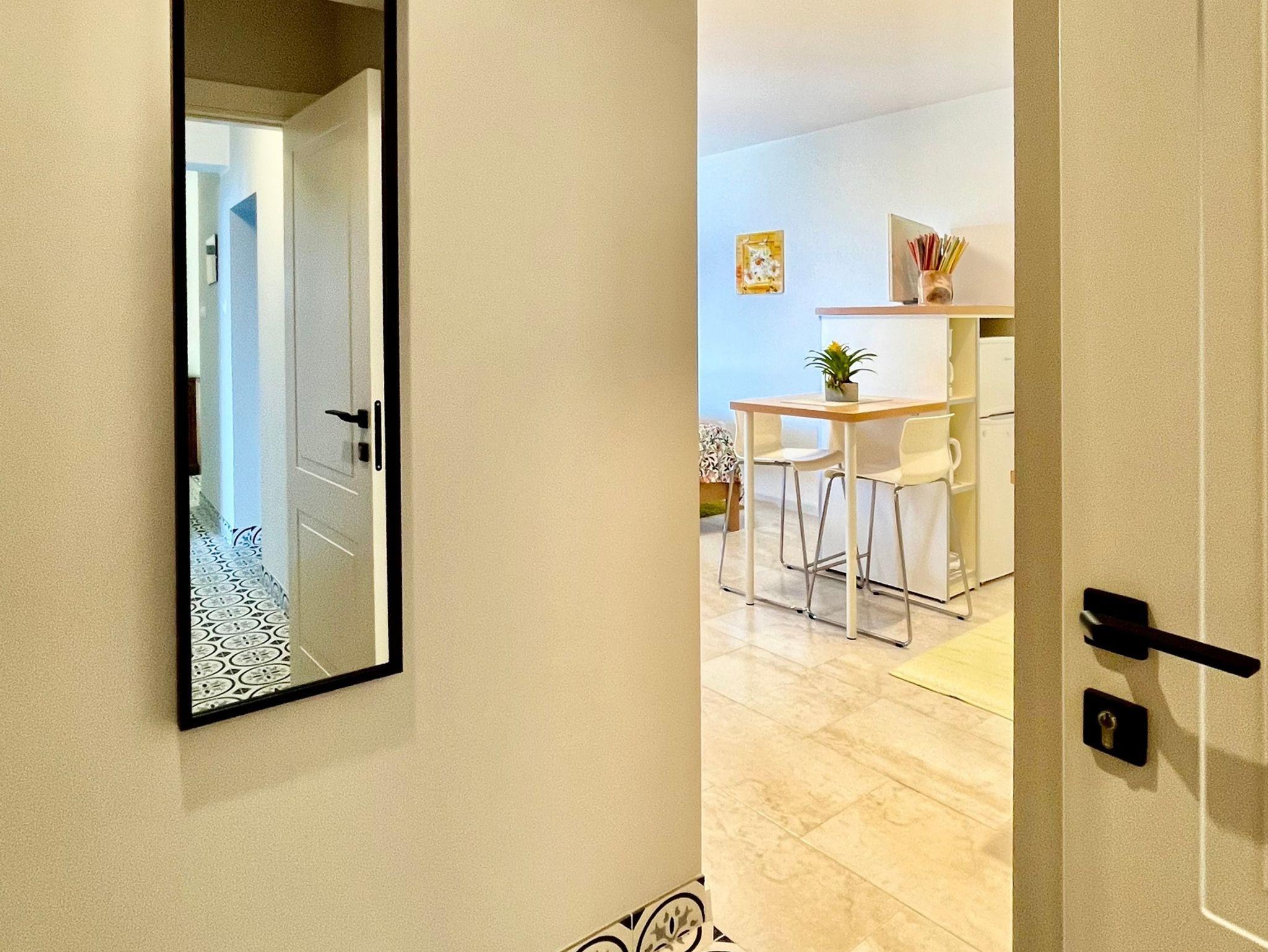 Studio bietet Platz für 2 Gäste. Die Betten sind in Schlafzimmern, die es 1 gibt, innerhalb einer Gesamtfläche von 21m2, angeordnet. Die Gäste haben eine eigene Terrasse zur Verfügung, auf der sie in warmen Sommernächten genießen können. Das Studio-Apartment bietet Meerblick. IM PREIS INBEGRIFFEN: Kurtaxe, Endreinigung, Klimatisierung, Parkplatz, Internet, Wäschewaschen, Bügeleisen, Bügelbrett, Föhn. Die Verfügbarkeit zusätzlicher Dienstleistungen in Ihrem reservierten Termin und die Preise derselben (falls nicht aufgeführt) müssen im Voraus überprüft werden. Zusätzliche Dienstleistungen die in der Zahlungsaufforderung nicht aufgeführt sind werden direkt beim Vermieter bezahlt, angenommen der Gast nutzt auch diese.