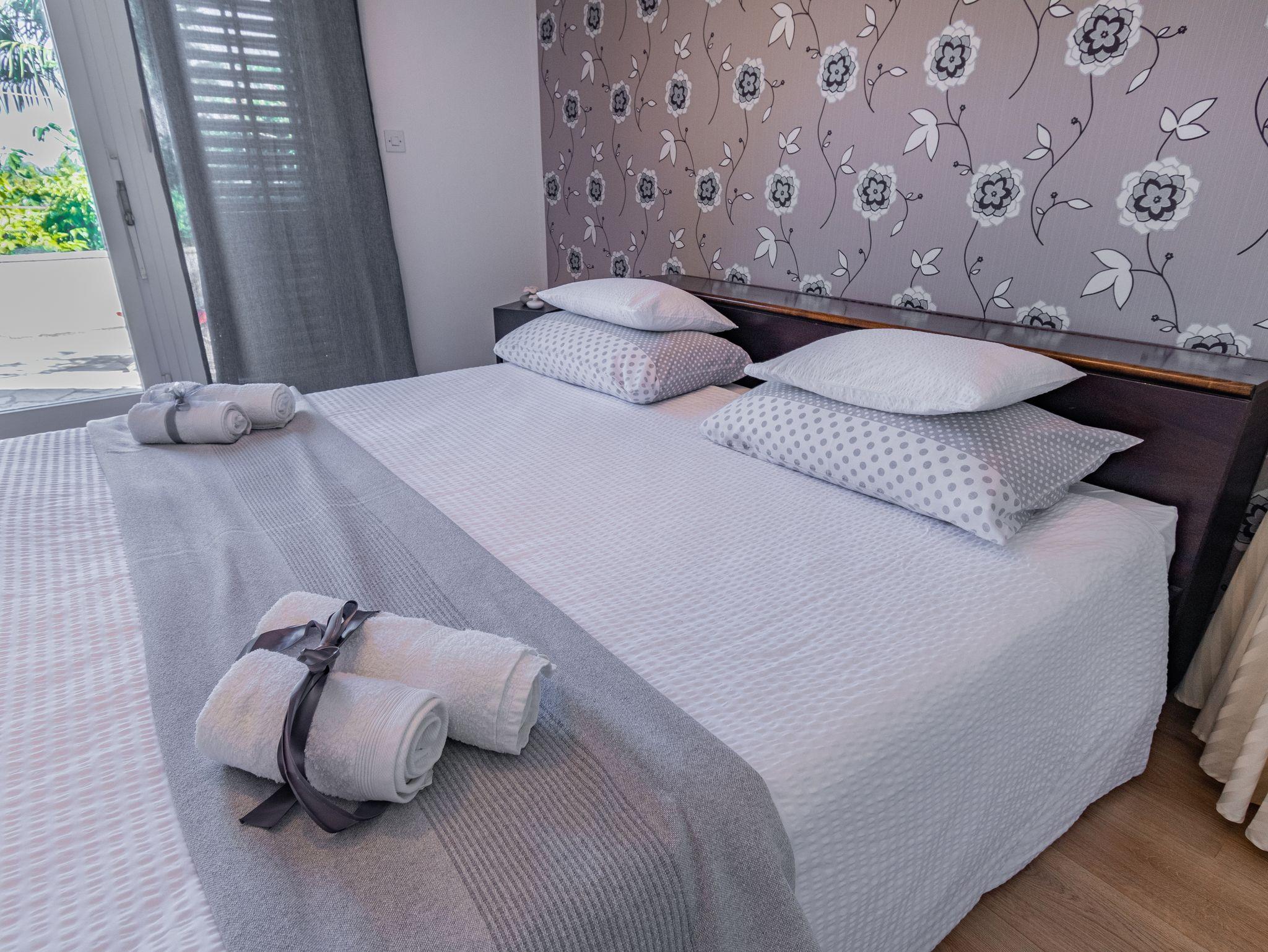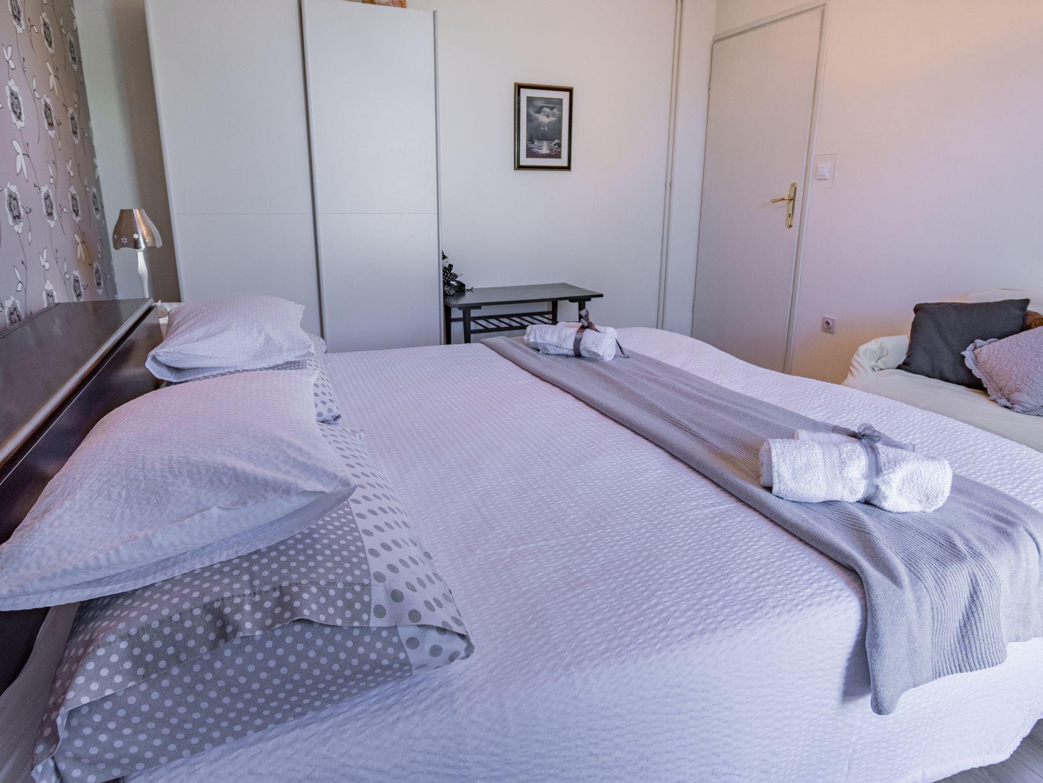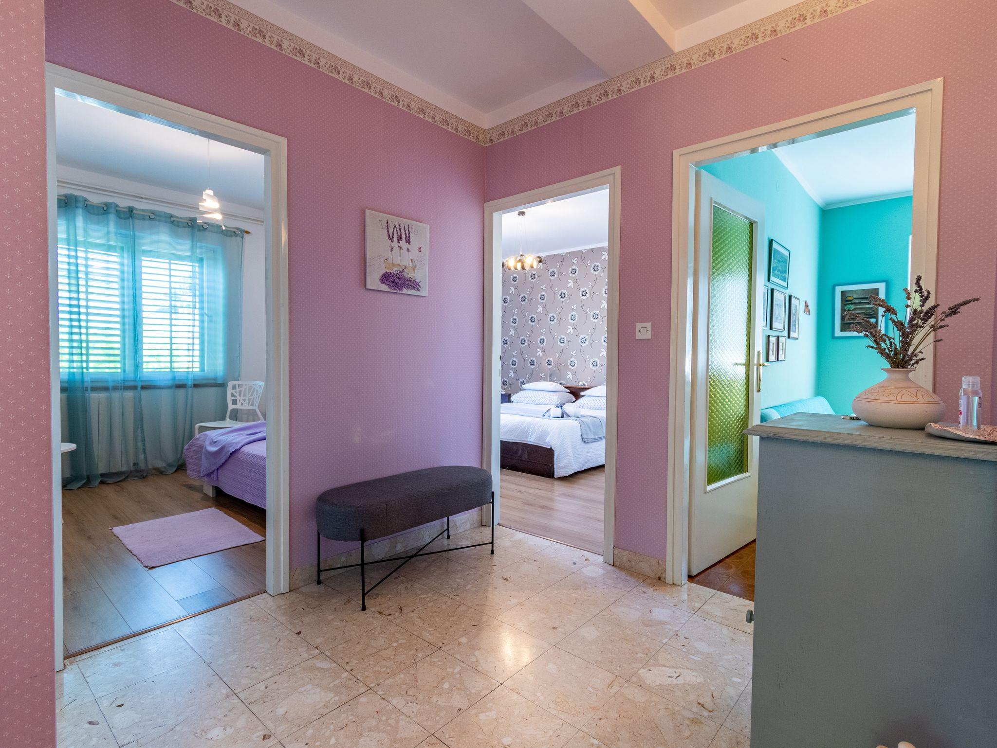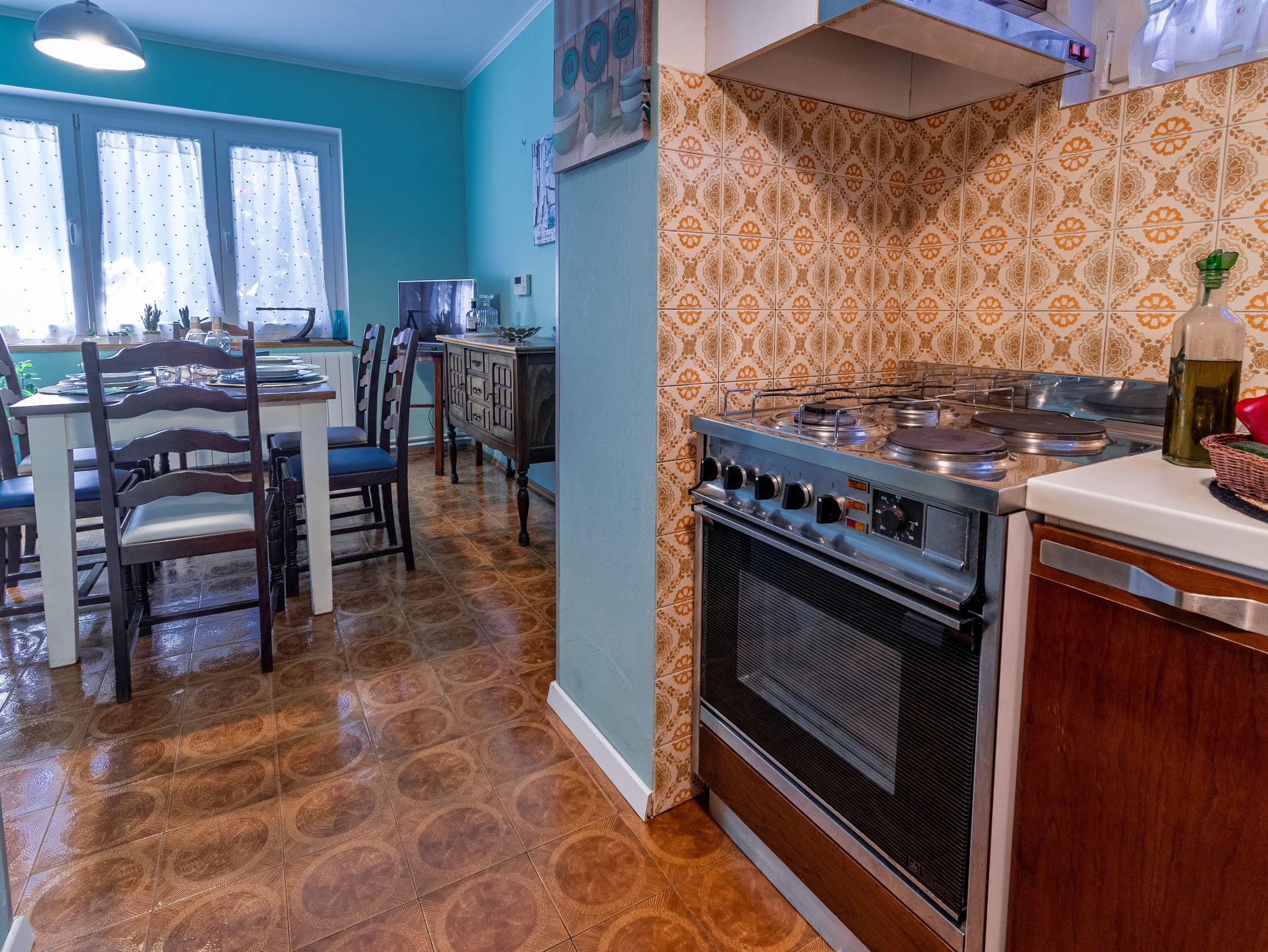 Ferienwohnung bietet Platz für 5 Gäste. Die Betten sind in Schlafzimmern, die es 3 gibt, innerhalb einer Gesamtfläche von 72m2, angeordnet. Die Gäste haben eine eigene Terrasse zur Verfügung, auf der sie in warmen Sommernächten genießen können. Das Apartment bietet Meerblick. IM PREIS INBEGRIFFEN: Kurtaxe, Endreinigung, Zentralheizung, Parkplatz, Internet, Bügeleisen, Bügelbrett. VERBINDLICHE ZUSÄTZLICHE KOSTEN: Aufzahlung für Kurzaufenthalte (prozentualer Zuschlag pro Nächtigungsanzahl: 30% - 1, 20% - 2, 10% - 3). UNVERBINDLICHE ZUSÄTZLICHE KOSTEN: Klimatisierung (5,00 € pro Nacht). Die Verfügbarkeit zusätzlicher Dienstleistungen in Ihrem reservierten Termin und die Preise derselben (falls nicht aufgeführt) müssen im Voraus überprüft werden. Zusätzliche Dienstleistungen die in der Zahlungsaufforderung nicht aufgeführt sind werden direkt beim Vermieter bezahlt, angenommen der Gast nutzt auch diese. Ermäßigung auf den Grundpreis: Gratistag 14=13 (bei einem Aufenthalt von 14 Tagen oder mehr erhalten Sie einen Gratistag für den Aufenthalt bis 31.12.26).