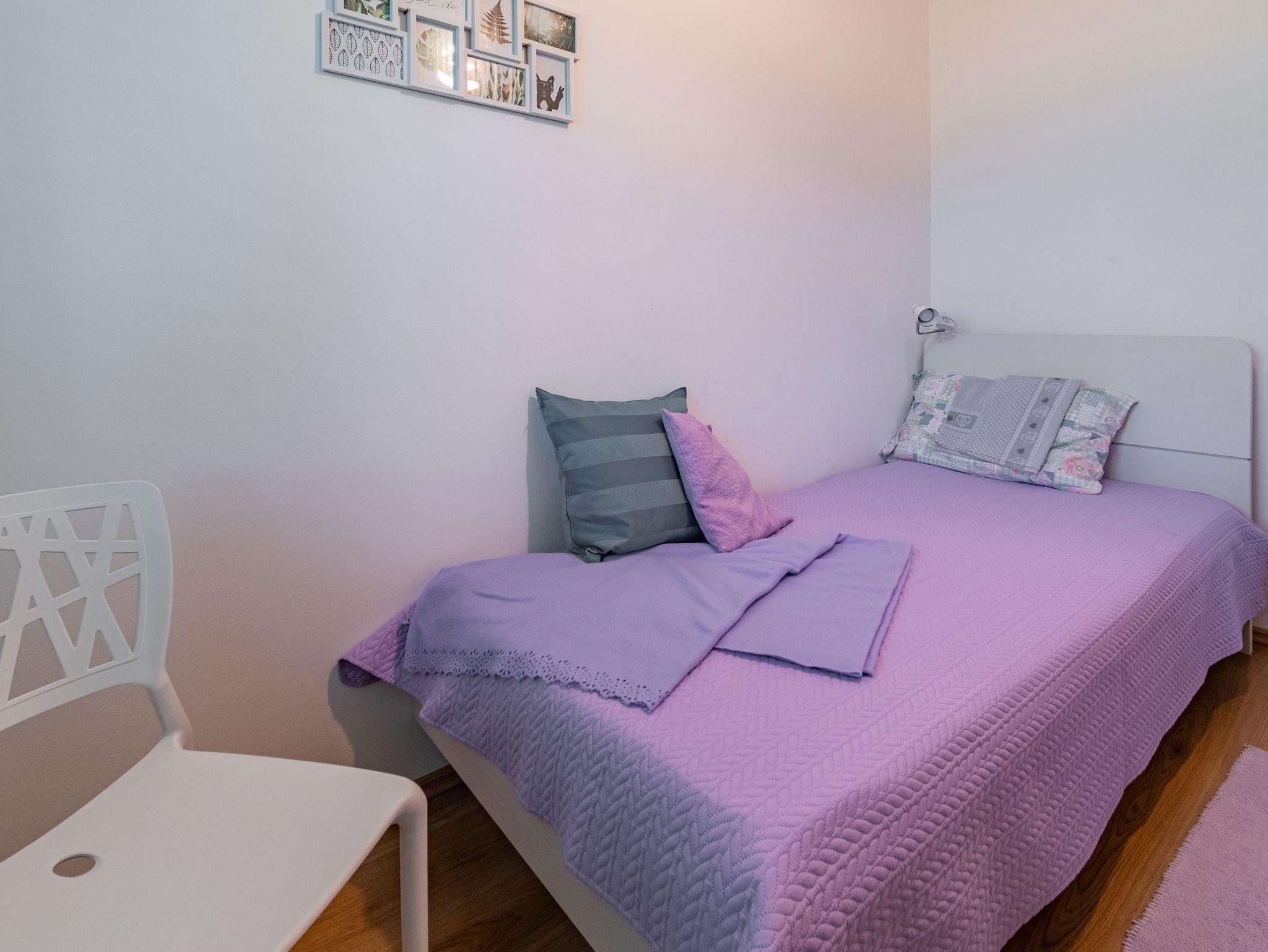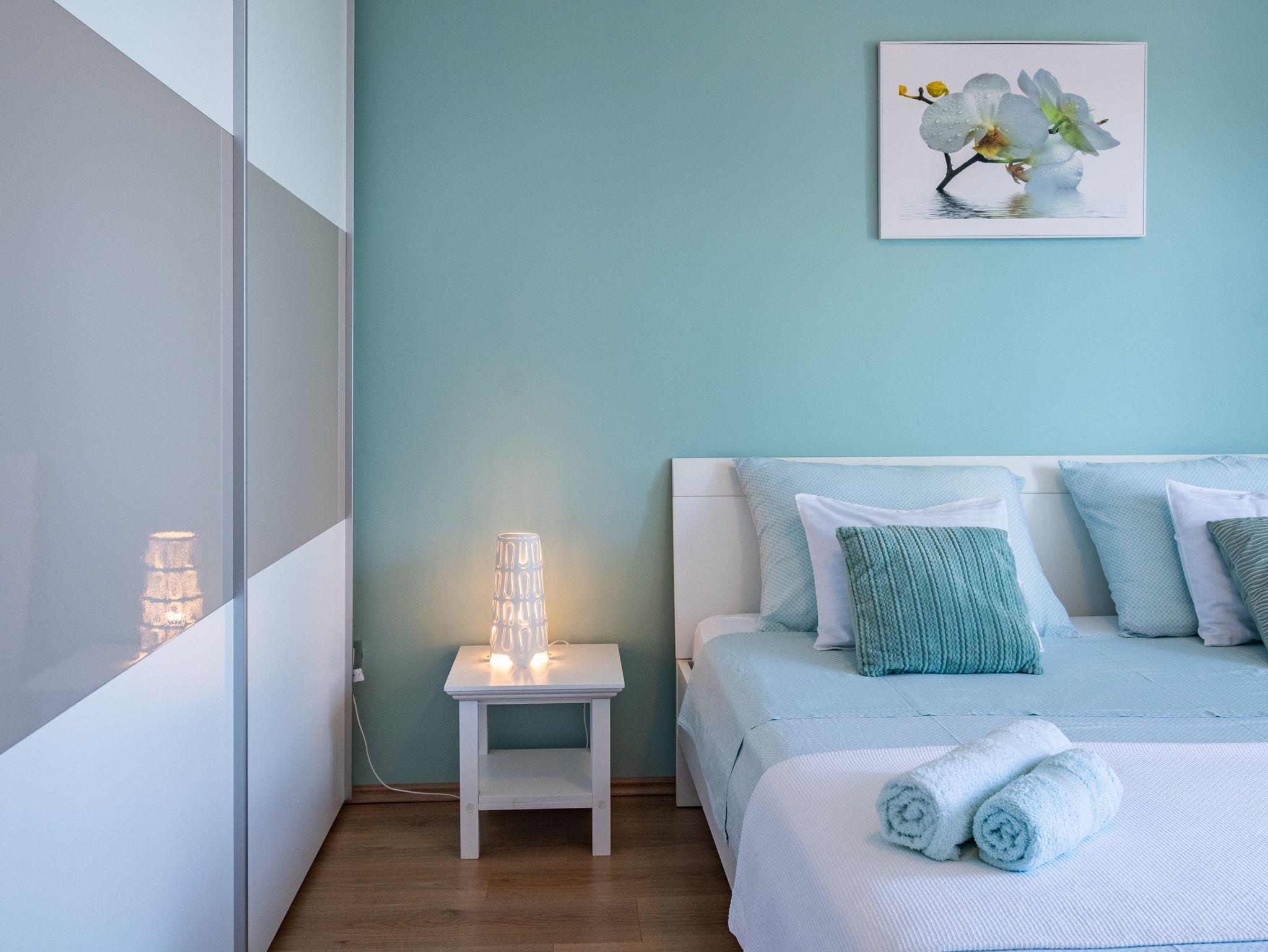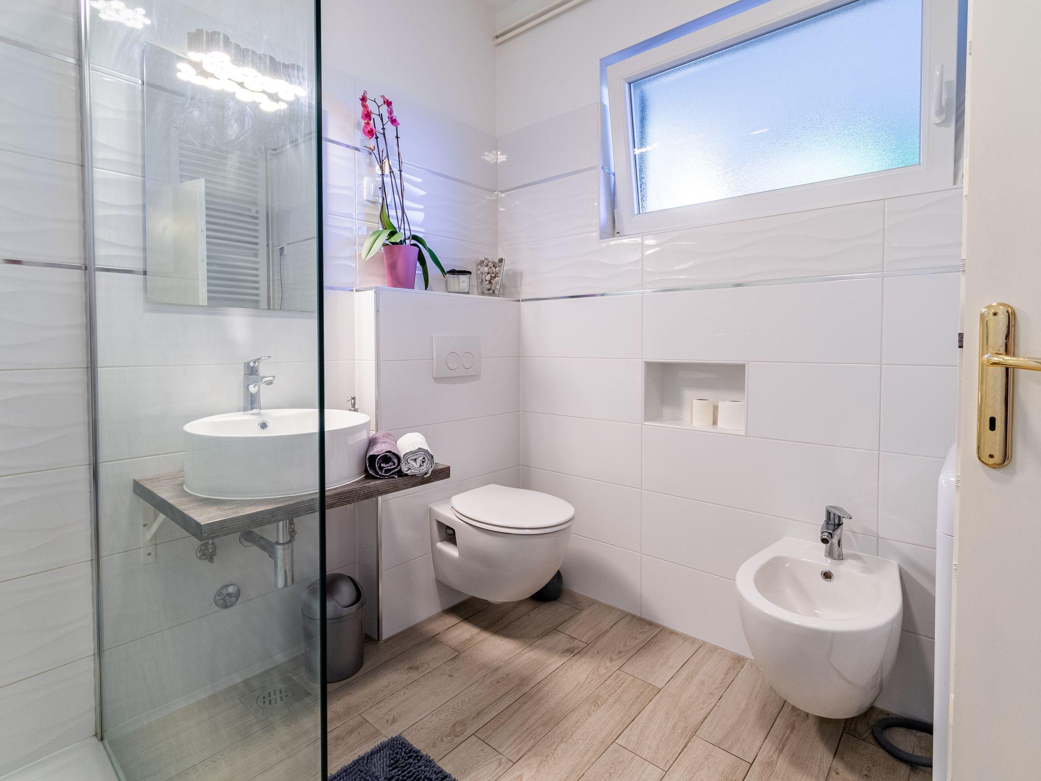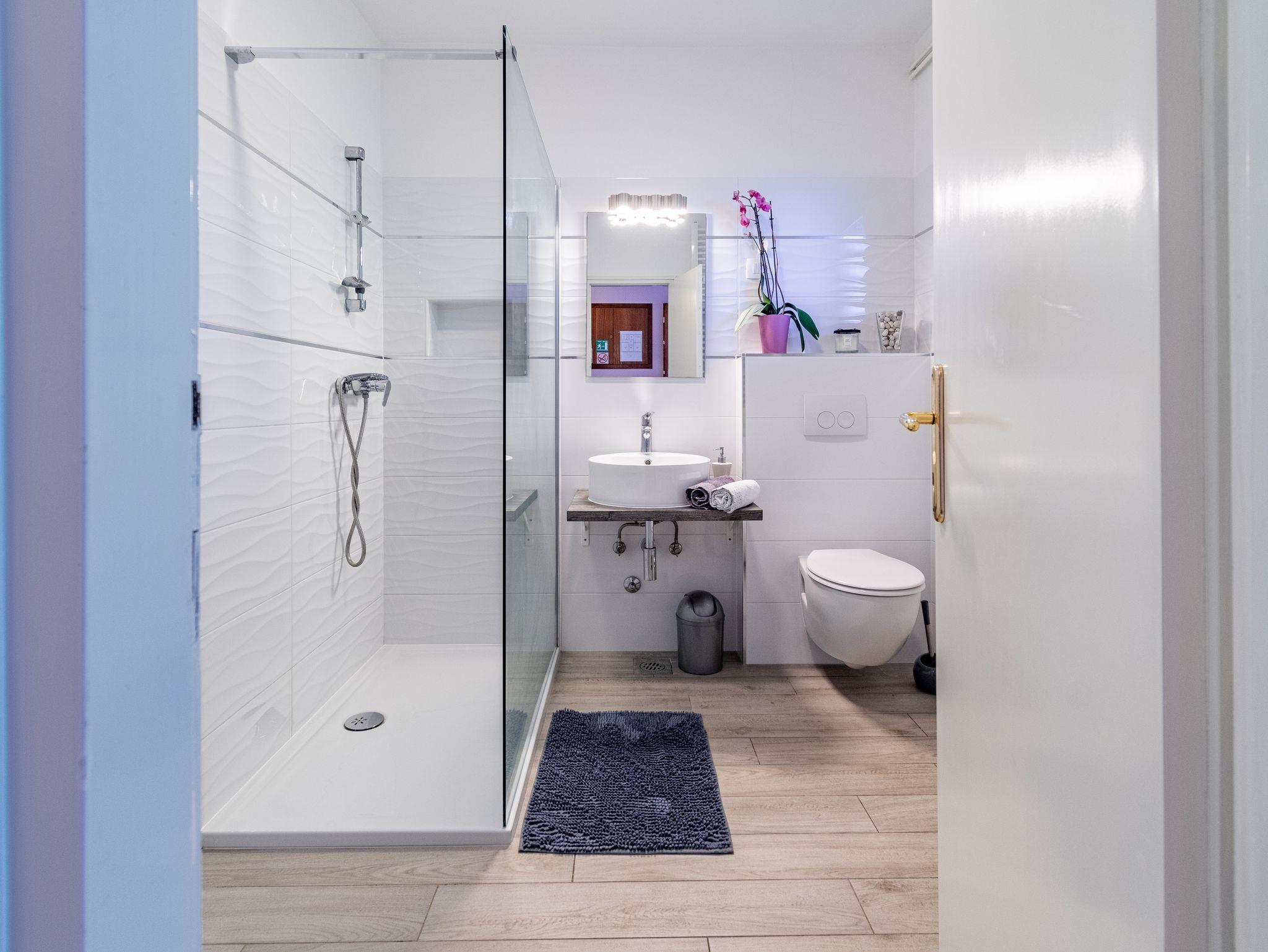 Ferienwohnung bietet Platz für 5 Gäste. Die Betten sind in Schlafzimmern, die es 3 gibt, innerhalb einer Gesamtfläche von 72m2, angeordnet. Die Gäste haben eine eigene Terrasse zur Verfügung, auf der sie in warmen Sommernächten genießen können. Das Apartment bietet Meerblick. IM PREIS INBEGRIFFEN: Kurtaxe, Endreinigung, Zentralheizung, Parkplatz, Internet, Bügeleisen, Bügelbrett. VERBINDLICHE ZUSÄTZLICHE KOSTEN: Aufzahlung für Kurzaufenthalte (prozentualer Zuschlag pro Nächtigungsanzahl: 30% - 1, 20% - 2, 10% - 3). UNVERBINDLICHE ZUSÄTZLICHE KOSTEN: Klimatisierung (5,00 € pro Nacht). Die Verfügbarkeit zusätzlicher Dienstleistungen in Ihrem reservierten Termin und die Preise derselben (falls nicht aufgeführt) müssen im Voraus überprüft werden. Zusätzliche Dienstleistungen die in der Zahlungsaufforderung nicht aufgeführt sind werden direkt beim Vermieter bezahlt, angenommen der Gast nutzt auch diese. Ermäßigung auf den Grundpreis: Gratistag 14=13 (bei einem Aufenthalt von 14 Tagen oder mehr erhalten Sie einen Gratistag für den Aufenthalt bis 31.12.26).