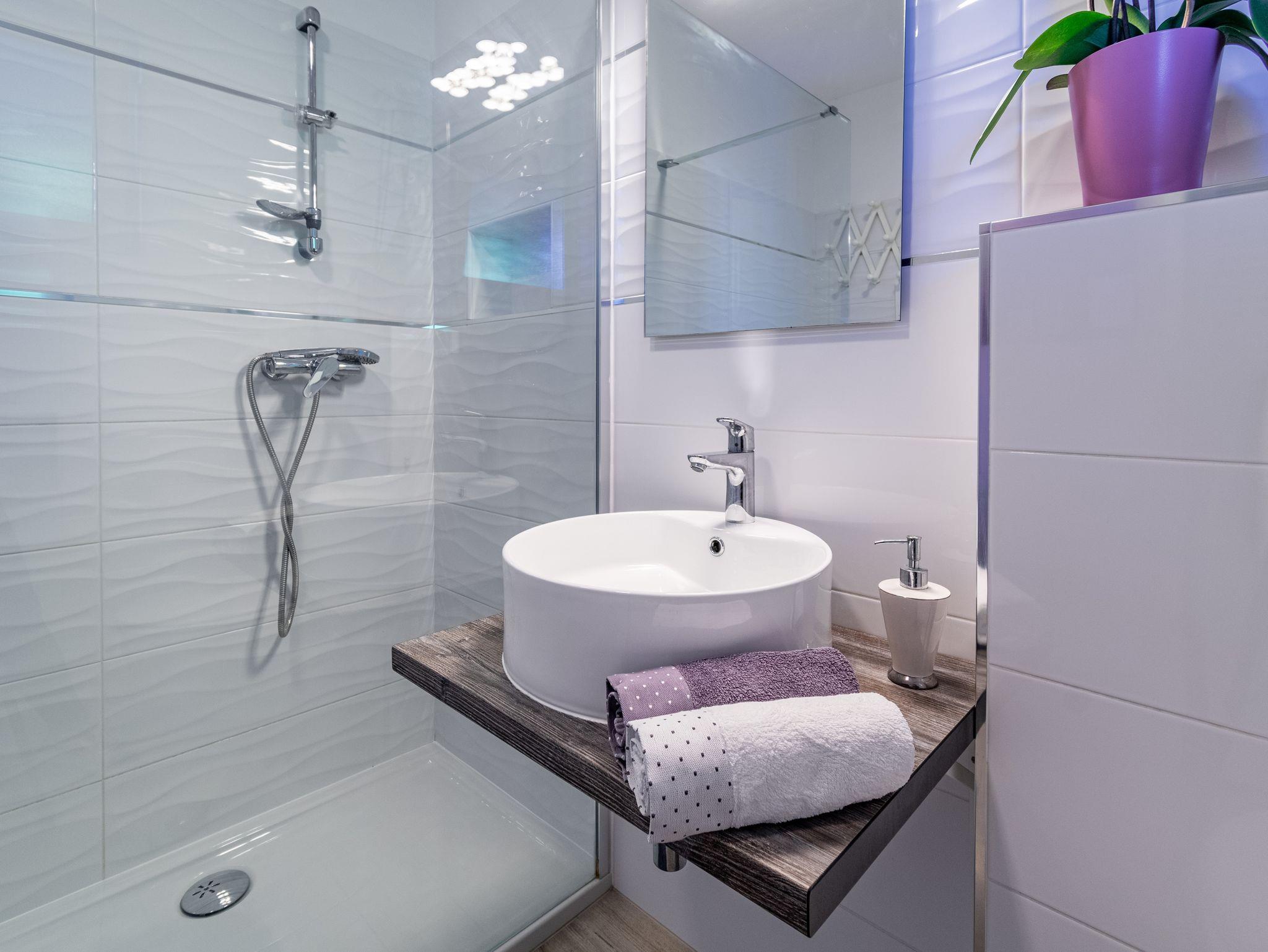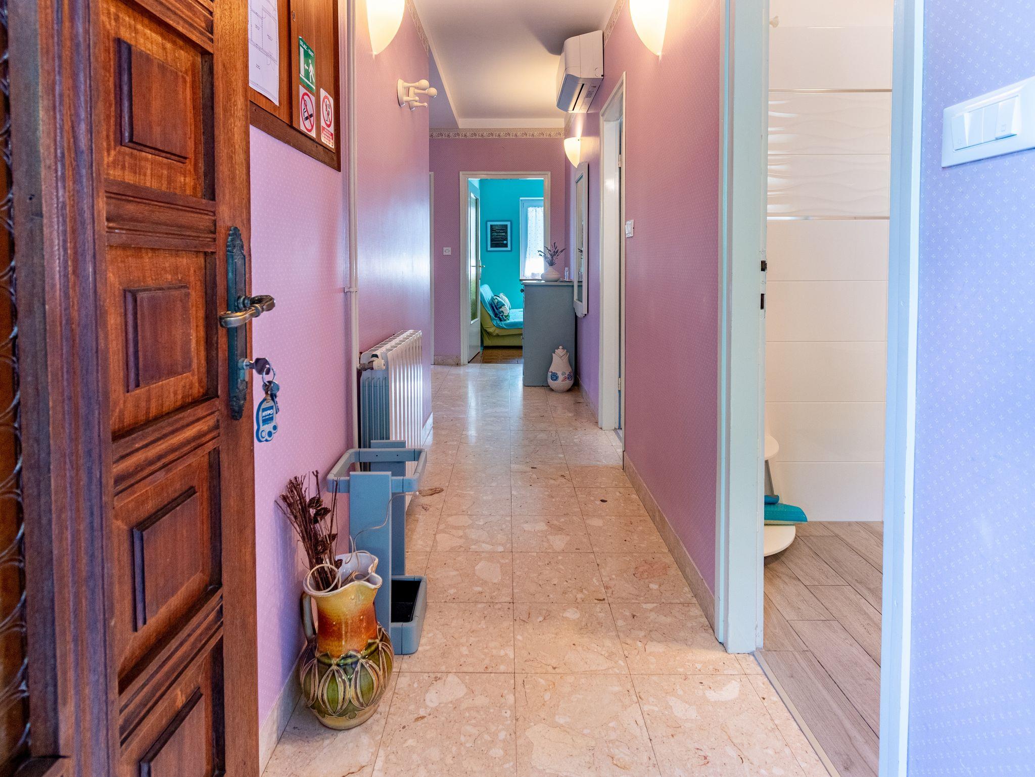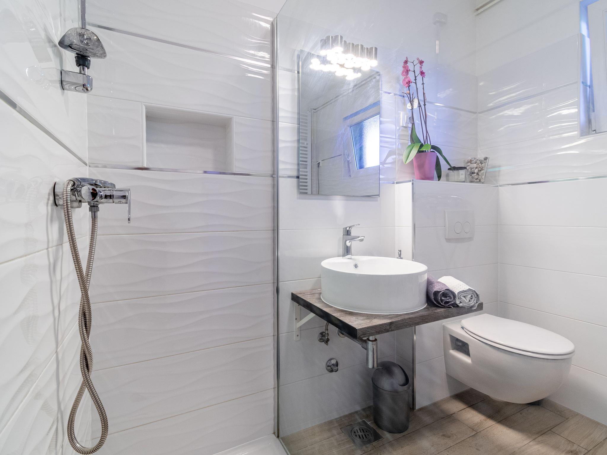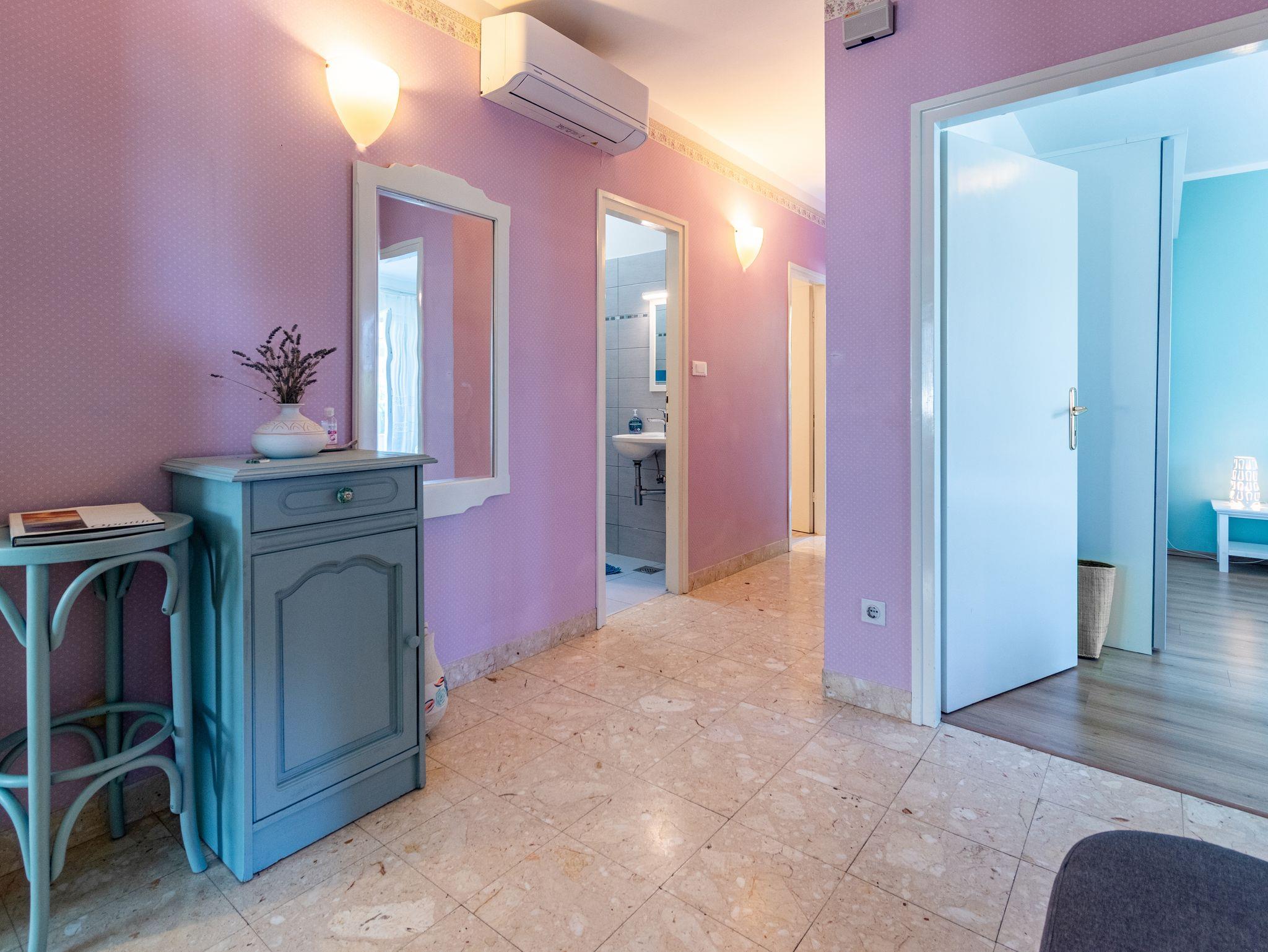 Ferienwohnung bietet Platz für 5 Gäste. Die Betten sind in Schlafzimmern, die es 3 gibt, innerhalb einer Gesamtfläche von 72m2, angeordnet. Die Gäste haben eine eigene Terrasse zur Verfügung, auf der sie in warmen Sommernächten genießen können. Das Apartment bietet Meerblick. IM PREIS INBEGRIFFEN: Kurtaxe, Endreinigung, Zentralheizung, Parkplatz, Internet, Bügeleisen, Bügelbrett. VERBINDLICHE ZUSÄTZLICHE KOSTEN: Aufzahlung für Kurzaufenthalte (prozentualer Zuschlag pro Nächtigungsanzahl: 30% - 1, 20% - 2, 10% - 3). UNVERBINDLICHE ZUSÄTZLICHE KOSTEN: Klimatisierung (5,00 € pro Nacht). Die Verfügbarkeit zusätzlicher Dienstleistungen in Ihrem reservierten Termin und die Preise derselben (falls nicht aufgeführt) müssen im Voraus überprüft werden. Zusätzliche Dienstleistungen die in der Zahlungsaufforderung nicht aufgeführt sind werden direkt beim Vermieter bezahlt, angenommen der Gast nutzt auch diese. Ermäßigung auf den Grundpreis: Gratistag 14=13 (bei einem Aufenthalt von 14 Tagen oder mehr erhalten Sie einen Gratistag für den Aufenthalt bis 31.12.26).