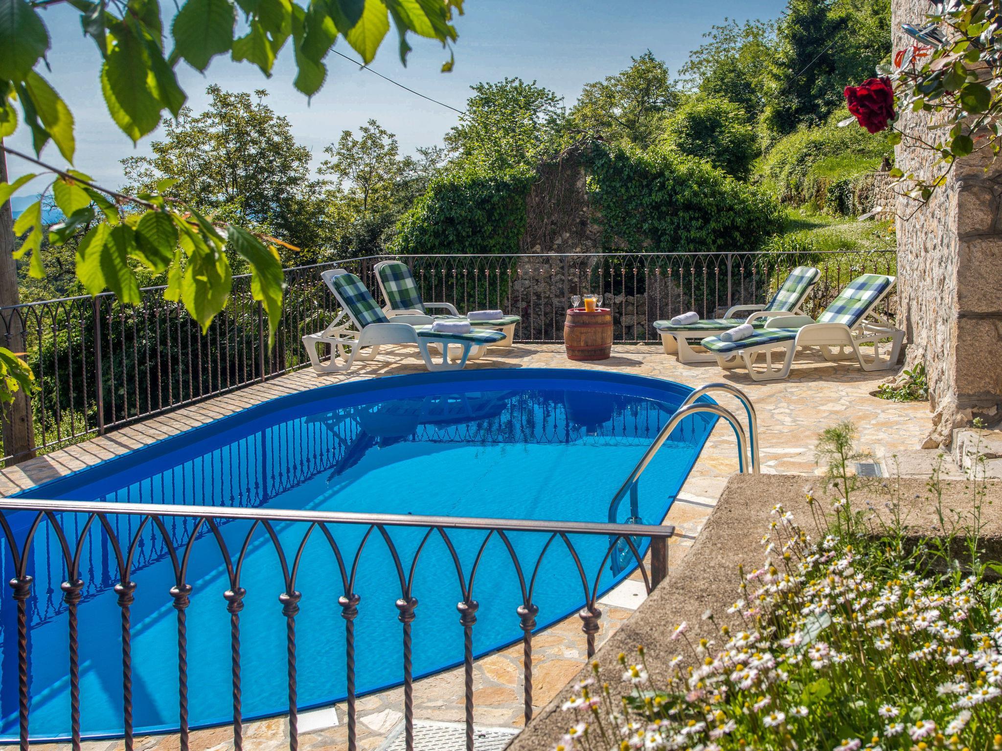 Lovranska Draga 8 km from Lovran: Old, rustic single-family house "Sirotnjak", 2 storeys. Above Lovran, in a quiet, sunny position on a slope, along the wooded area, 8 km from the sea, 8 km from the beach, in the countryside. For shared use: swimming pool (6 x 4 m, depth 150 cm, seasonal availability: 01.May. - 30.Sep.). Outdoor shower. Private: garden with lawn 45 m2, swimming pool (6 x 4 m, depth 150 cm, seasonal availability: 01.May. - 30.Sep.). Outdoor shower, garden furniture, barbecue. In the house: internet access, billiard table, table football, air conditioning, washing machine. Parking at the house on the premises. Shop 3.6 km, supermarket 8.2 km, restaurant 1 km, bus stop 400 m, pebble beach 8 km, public bathing area 8 km. Walking paths from the house 50 m. Groups of teenagers on request only. The unit consists of a semi-detached house and a separate house, rented as one unit. For private use: traditional tavern with dining table, refrigerator and dishwasher.