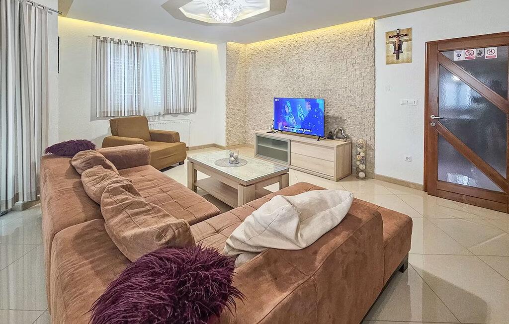 Fahren Sie an die Makarska Riviera und verbringen Sie entspannte Stunden an den gepflegten Kiesstränden mit kristallklarem Wasser. Erkunden Sie die reizvolle Landschaft rund um Donji Proložac, die von sanften Hügeln, Weinbergen und dem nahegelegenen Naturphänomen des Blauen Sees geprägt ist. Besuchen Sie die Stadt Imotski, die nur wenige Fahrminuten entfernt liegt, und entdecken Sie historische Sehenswürdigkeiten, kleine Geschäfte sowie Cafés und Restaurants.