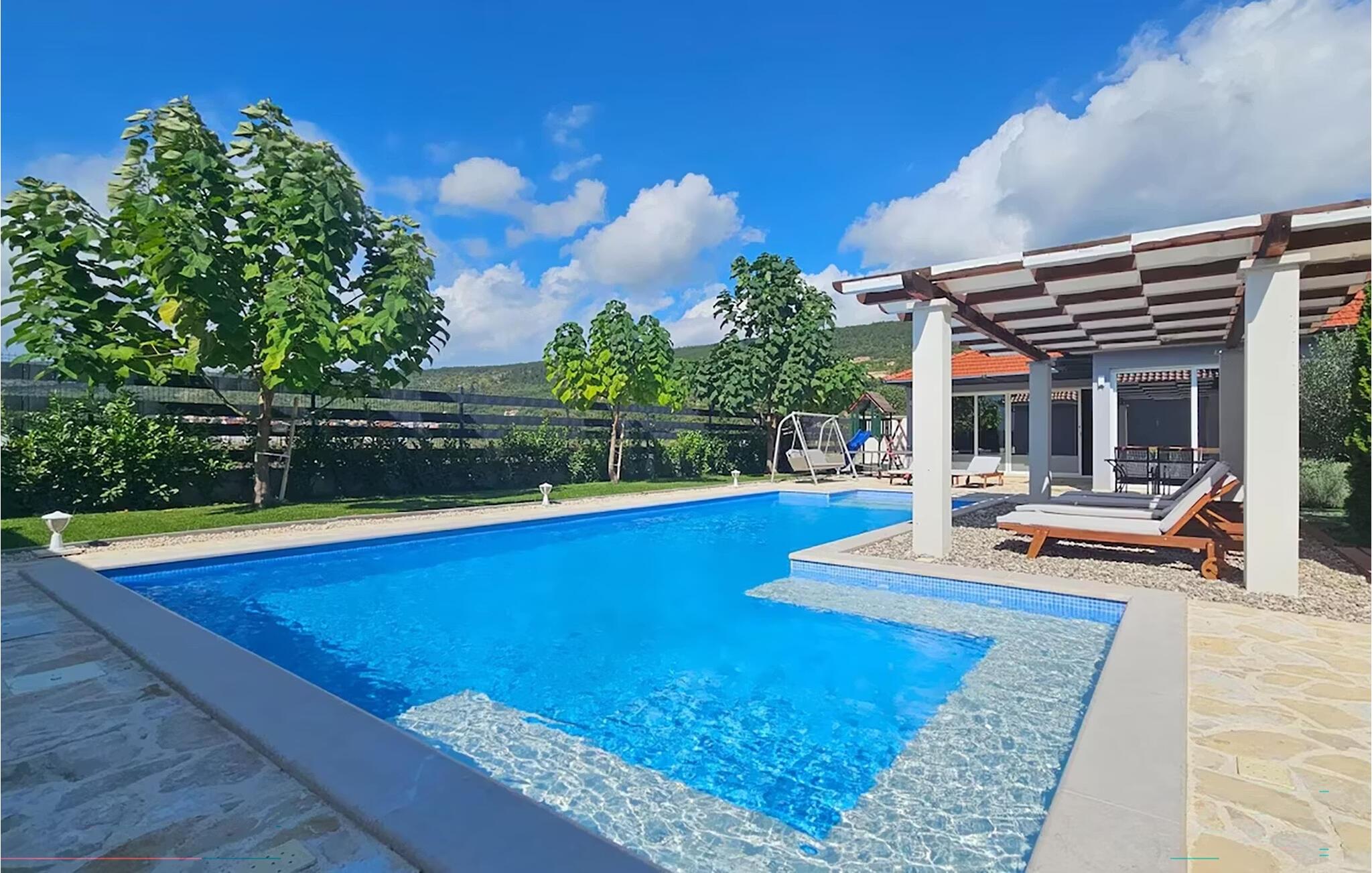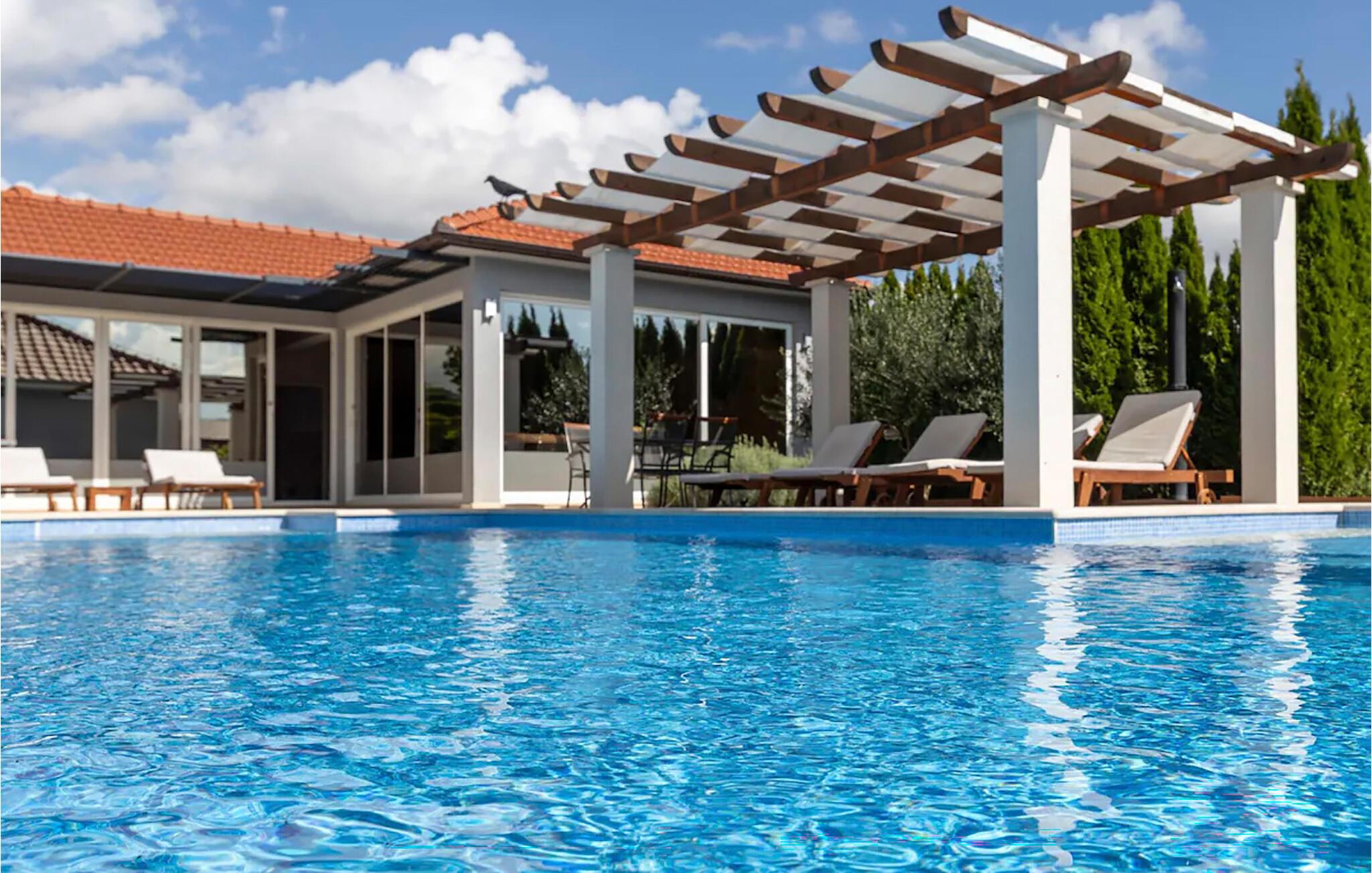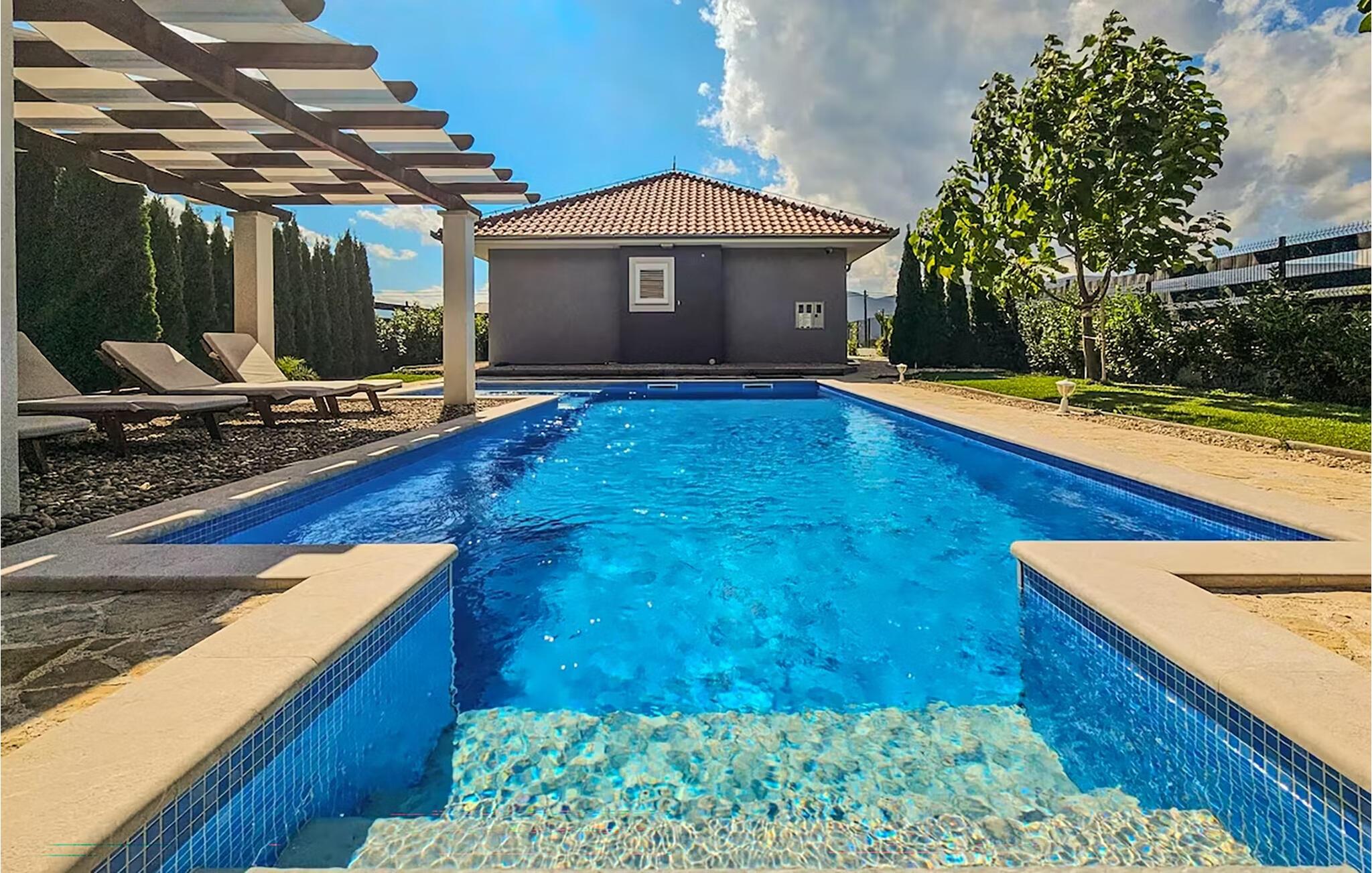 Genießen Sie den Urlaub im komfortablen Ferienhaus mit Pool und Wellness im Freien.