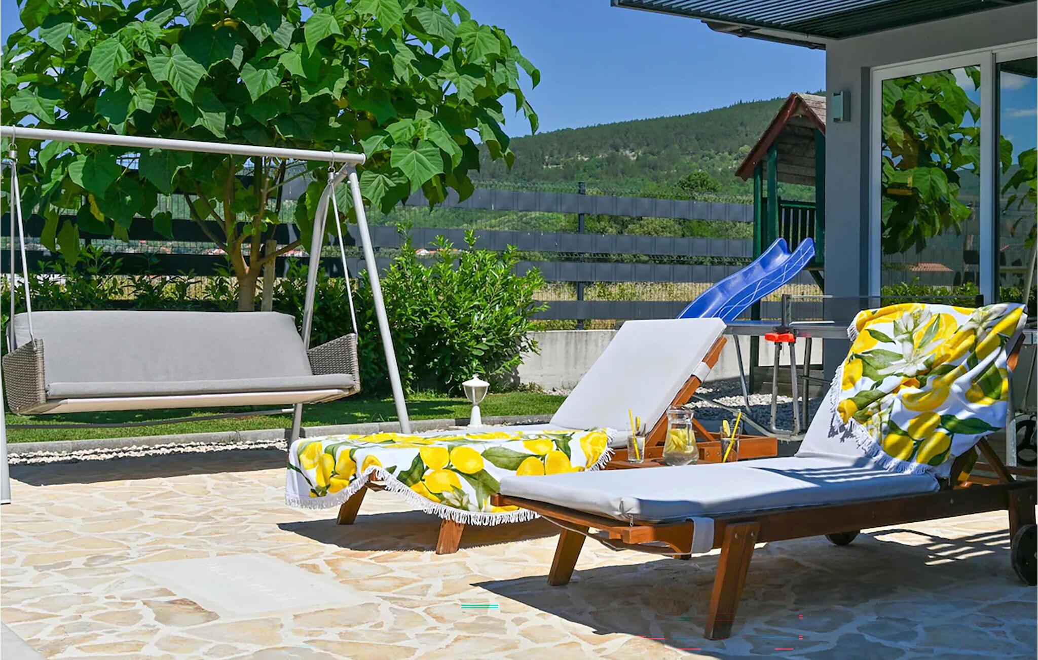 Genießen Sie auf dem Balkon und der Terrasse die Sonne, der Pool bietet wohltuende Erfrischung an heißen Tagen. Lassen Sie bei einem Bad im Whirlpool den Blick über die Umgebung schweifen, Ihre Kinder finden viele Spielmöglichkeiten vor. Abends können Sie die ganze Familie zu einem leckeren Essen im Freien versammeln.