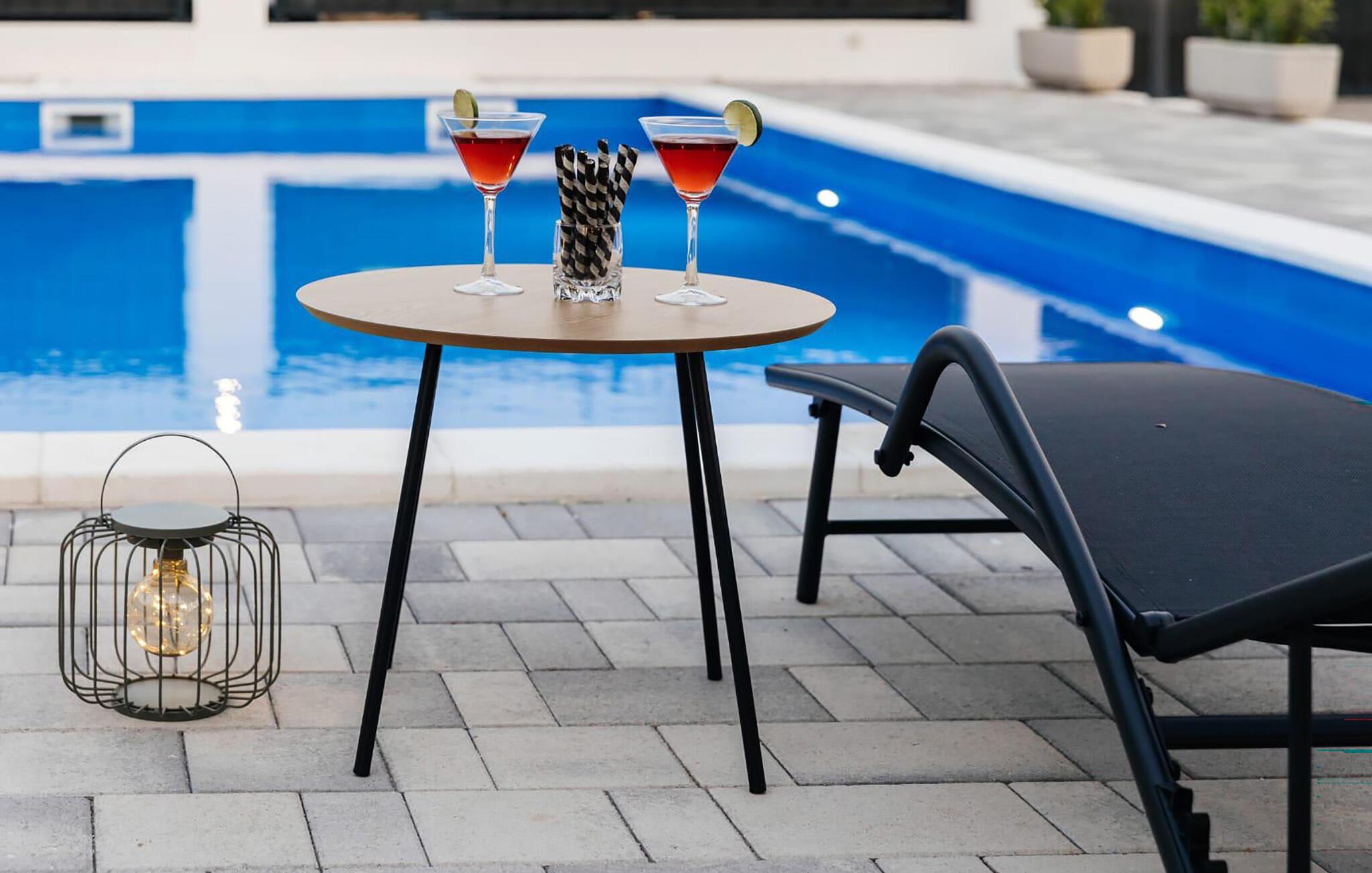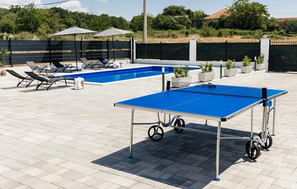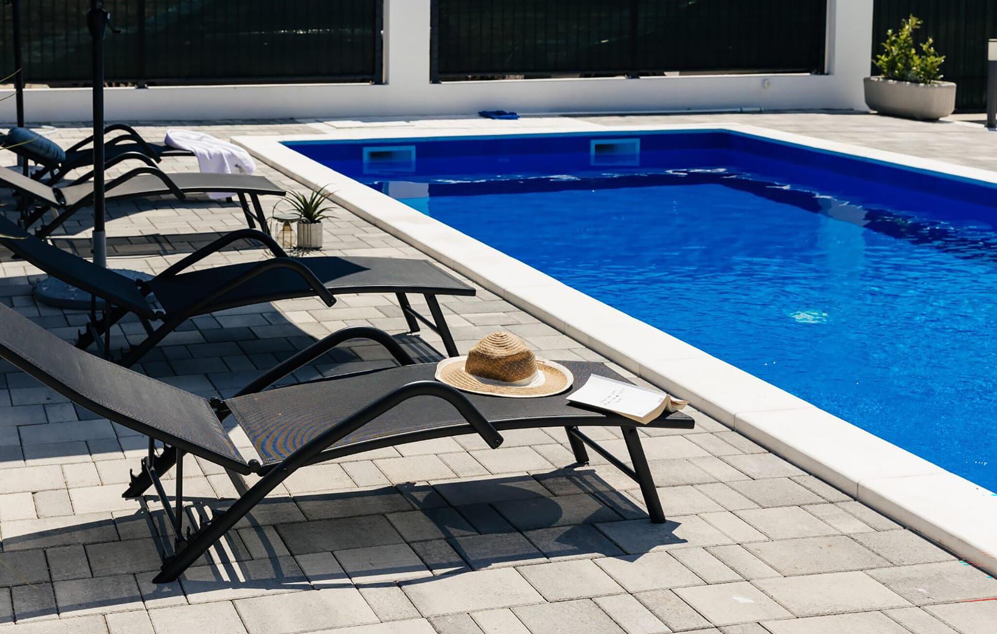 Spazieren Sie barfuß auf Ihre großzügige Terrasse, tauchen Sie in den glitzernden Pool ein und servieren Sie ein köstliches Frühstück auf der Terrasse. Tanken Sie neue Energie auf der Sonnenliege, spielen Sie eine Runde Tischtennis und plaudern Sie bei einem Glas Wein bis in die lauen Sommernächte hinein.