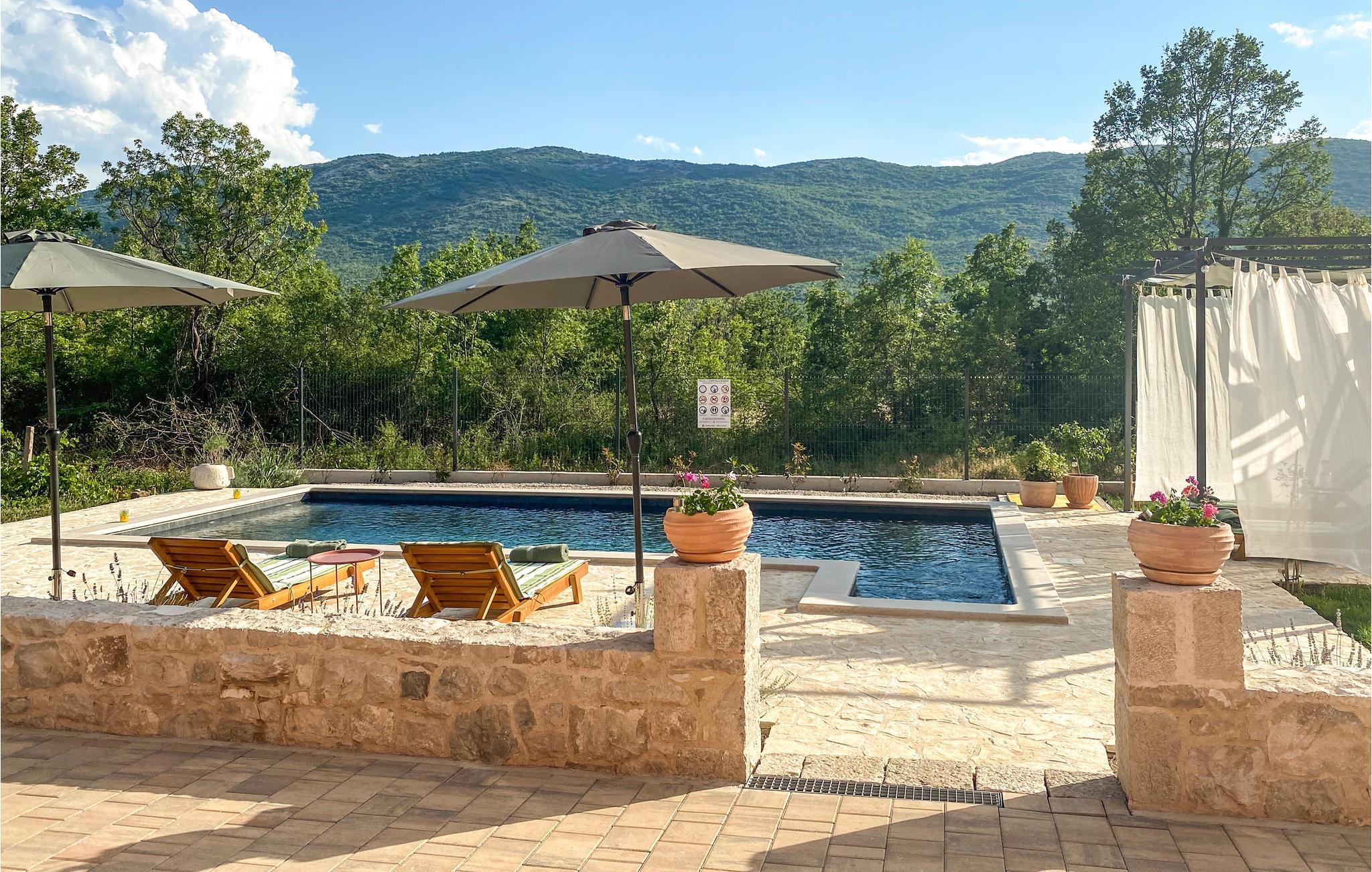 Freuen Sie sich auf einen wunderbaren Urlaub in einem Ferienhaus mit stilvoller Einrichtung und charmanten Details. Hier werden Sie sich vom ersten Moment an wohlfühlen und das geschmackvolle Ambiente genießen. Lassen Sie sich mit Ihrer Familie in diesem geräumigen Domizil nieder und entspannen sich bei Stunden beisammen. Dieses wunderschön eingerichtete Ferienhaus liegt im dalmatinischen Hinterland gleich hinter der Makarska Riviera. Es hat alles, was Sie für einen angenehmen und unbeschwerten Urlaub brauchen. Genießen und finden Sie wahre Erfrischung im versteckten Pool oder die Zubereitung eines Grillgerichts, während die Jüngsten sich auf dem Kinderspielplatz vergnügen. Wenn Sie ein Liebhaber des Schwimmens und der Natur sind und Ruhe und Erholung suchen, sind Sie hier genau richtig.