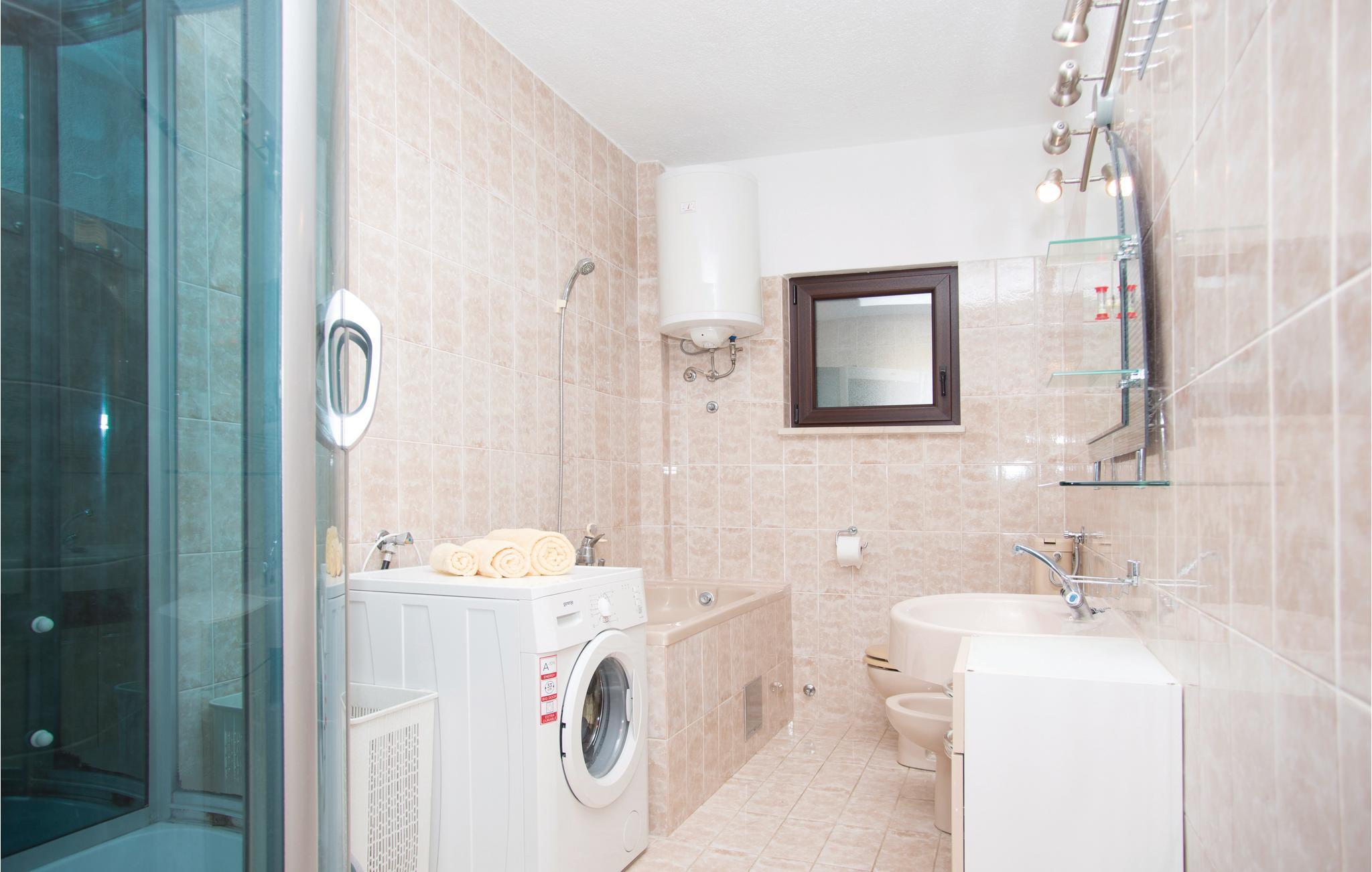 Badezimmer (nr. 1) - WC. Warmes und kaltes Wasser. Dusche und Badewanne
