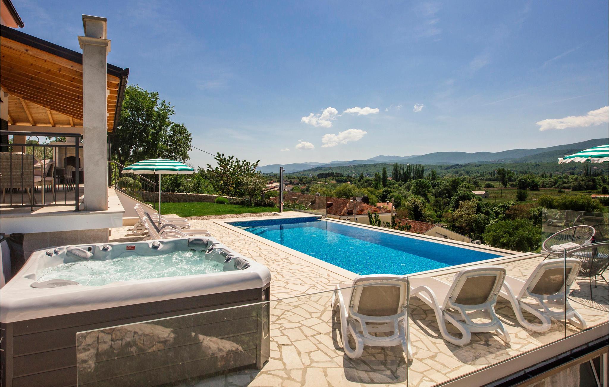 Dieses hervorragend ausgestattete Ferienhaus mit Pool liegt im Landesinneren Dalmatiens, unweit der Makarska Riviera. Es bietet viel Platz, auch für größere Gruppen. Hier wird jeder Gast gemütliche Ecken zum Entspannen, aber auch zum Beisammensein finden. Vor dem Ferienhaus befindet sich eine große überdachte Terrasse mit Grill für gemütliche Grillabende. Hier können Sie wunderbar gemeinsam essen oder den Tag bei einem Glas Wein ausklingen lassen. Neben der Terrasse finden Sie den Kinderspielplatz für die Jüngsten. Erfrischung an warmen Sommertagen finden Sie im attraktiven beheizten Pool vor dem Ferienhaus, daneben befindet sich ein Whirlpool zum Entspannen mit herrlichem Blick auf die umliegenden Felder und Berge. Hinter dem Ferienhaus befindet sich auch ein multifunktionaler Spielplatz für Kleinfeldfußball, Basketball und Badminton. Fahrräder stehen zur Verfügung, so können Sie die Umgebung erkunden. Genießen Sie die schöne Landschaft dieser Region und entdecken Sie die schönen Kiesstrände an der Makarska Riviera.