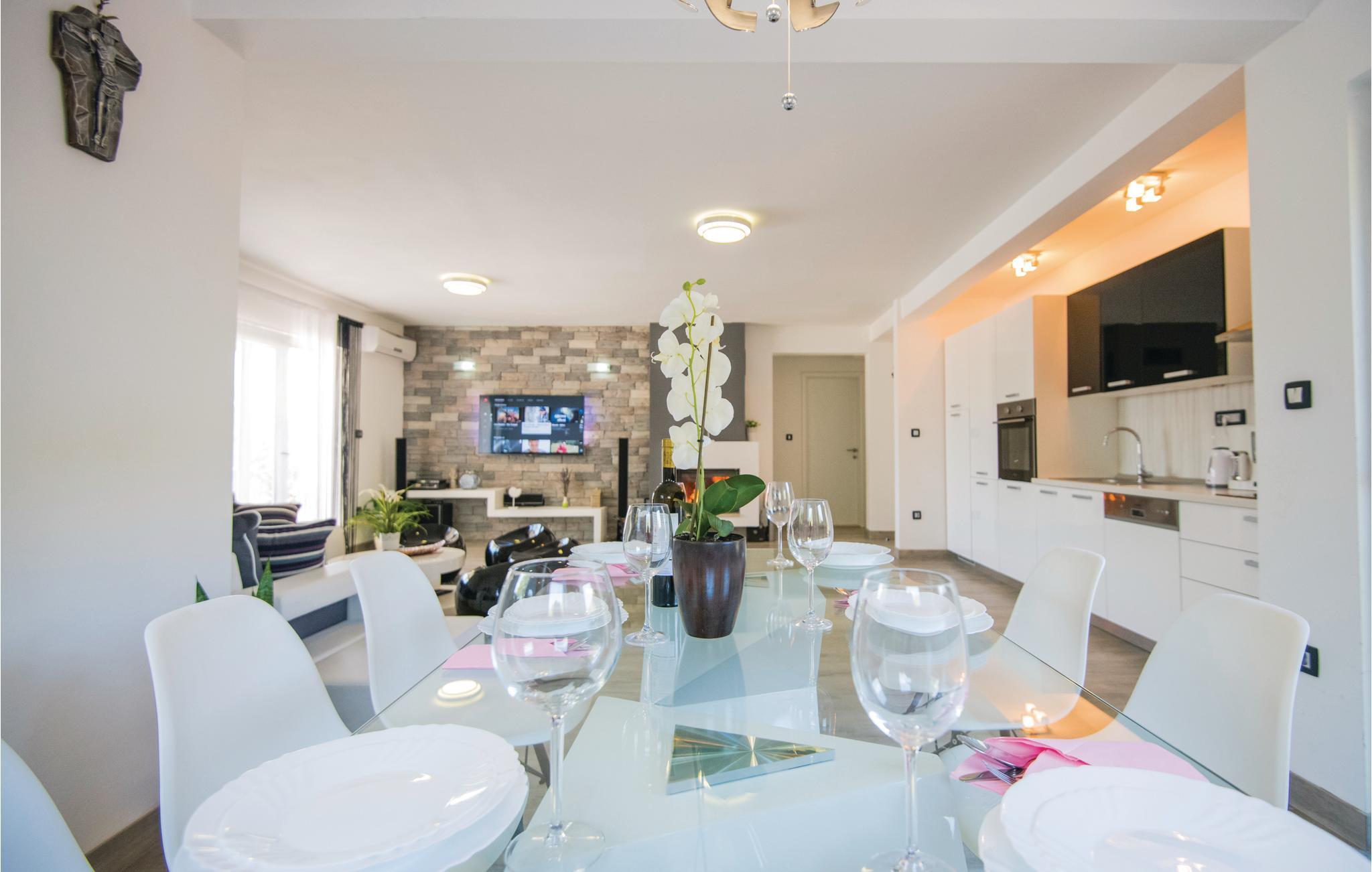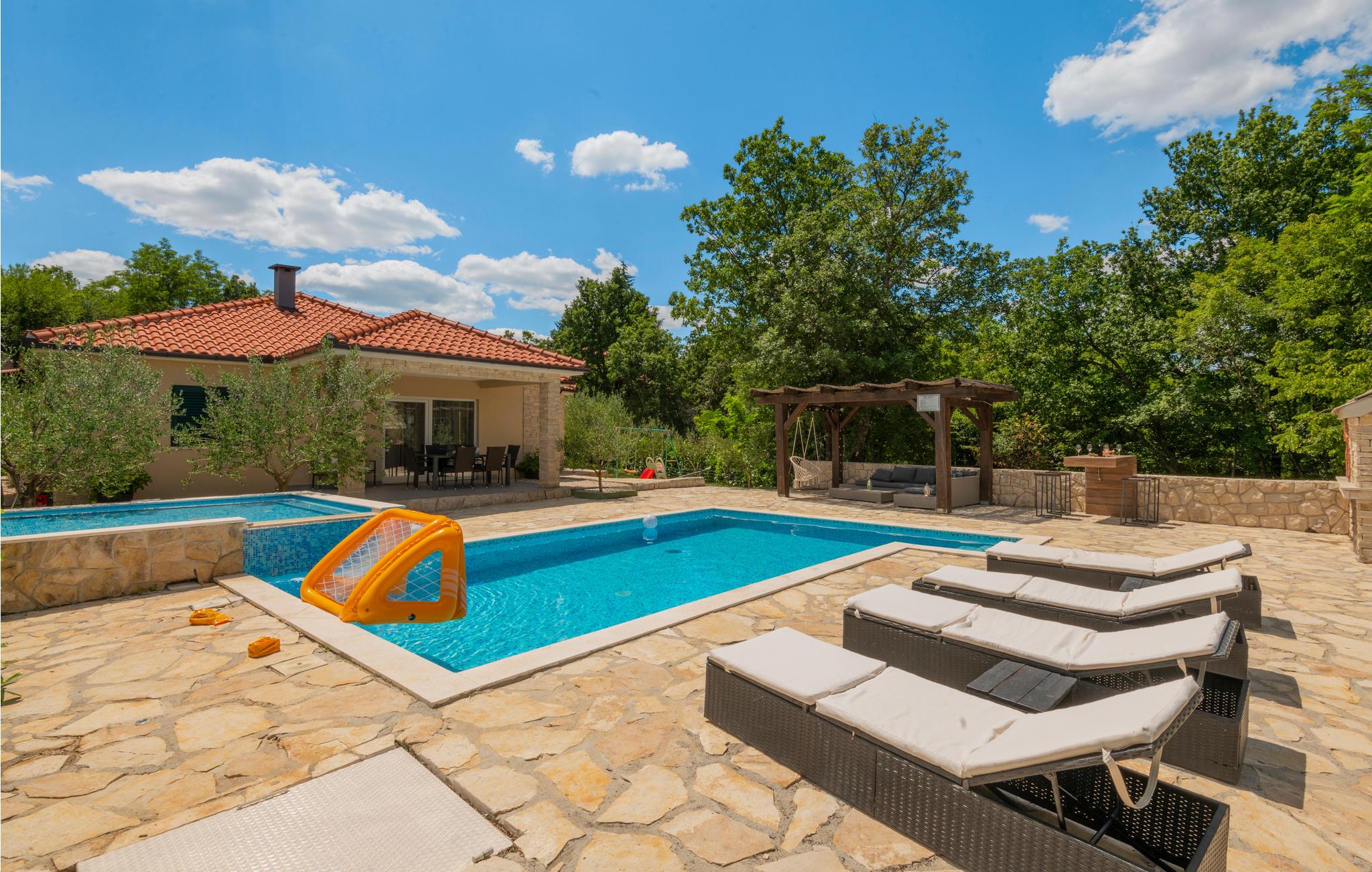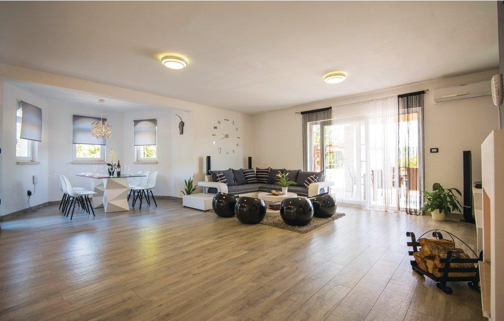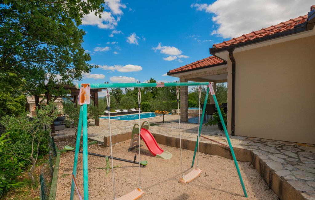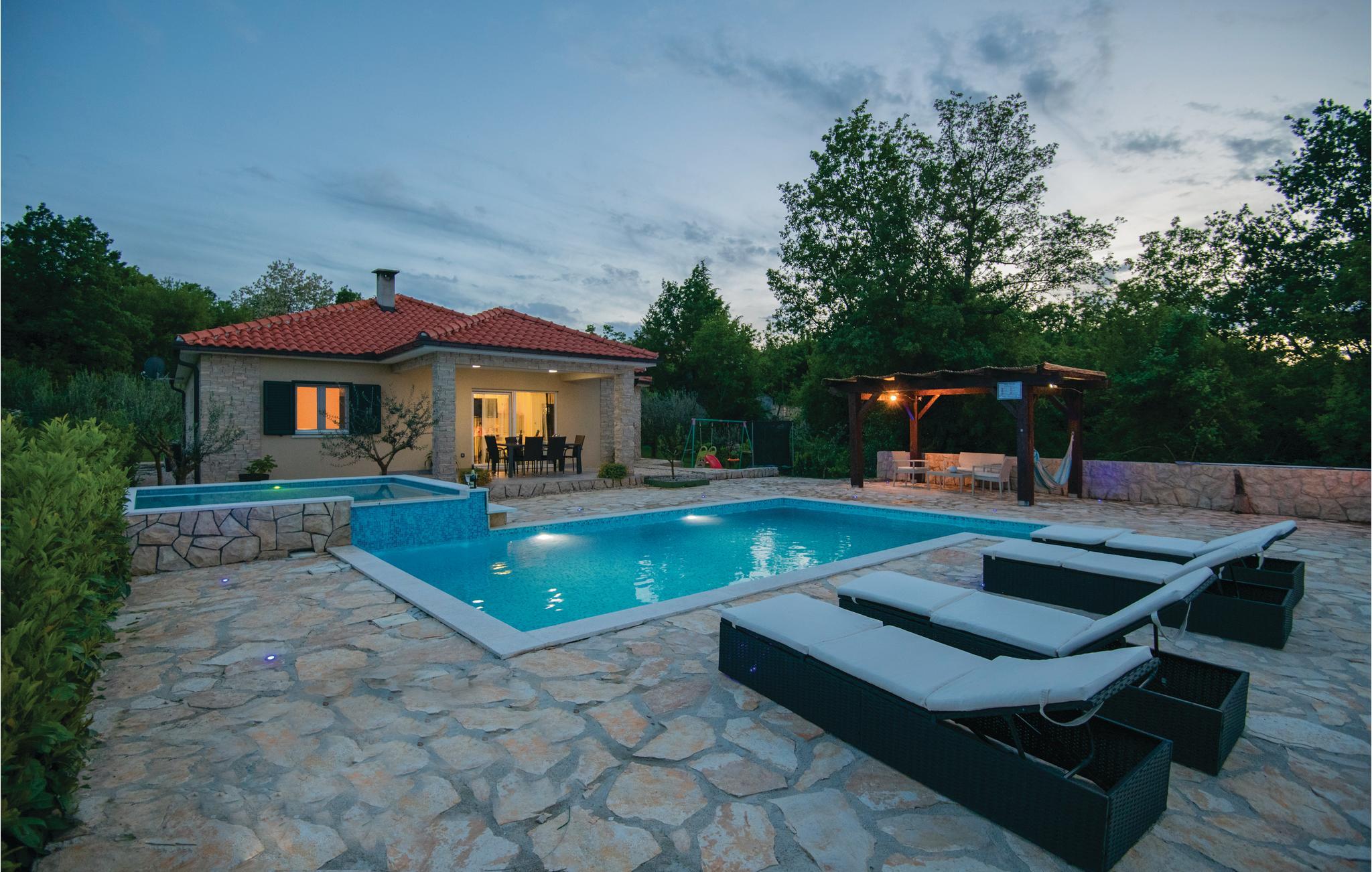 Das moderne Ferienhaus mit Pool befindet sich im zentralen Dalmatien. Es ist mit allem, was Sie für einen angenehmen Urlaub benötigen ausgestattet. Während Sie Ihre Runden im Pool schwimmen, werden die Kleinsten ihr Badevergnügen im Kinderpool haben. Auf der überdachten Terrasse mit Grill genießen Sie die leckeren Köstlichkeiten. Die Kinder können an den für sie vorgesehenen Geräten spielen. Das Haus liegt in einer idyllischen Umgebung auf einem großen Grundstück mit Obstgarten und Olivenhain. Nur ca. 20 Fahrminuten entfernt befindet sich der Kiesstrand in Baška Voda, und die Stadt Imotski mit ihren natürlichen Schönheiten - Crveno i Modro jezero - ist nur ca. 5 km entfernt.