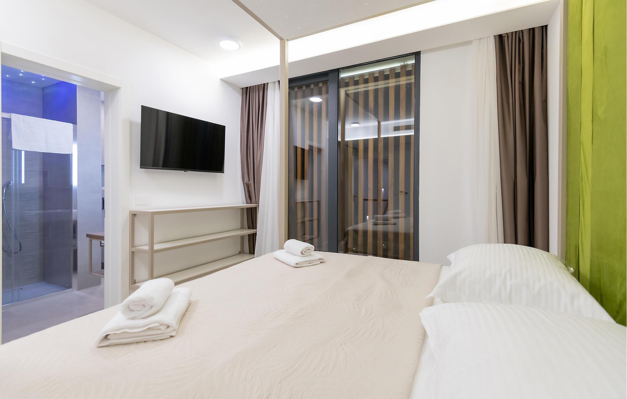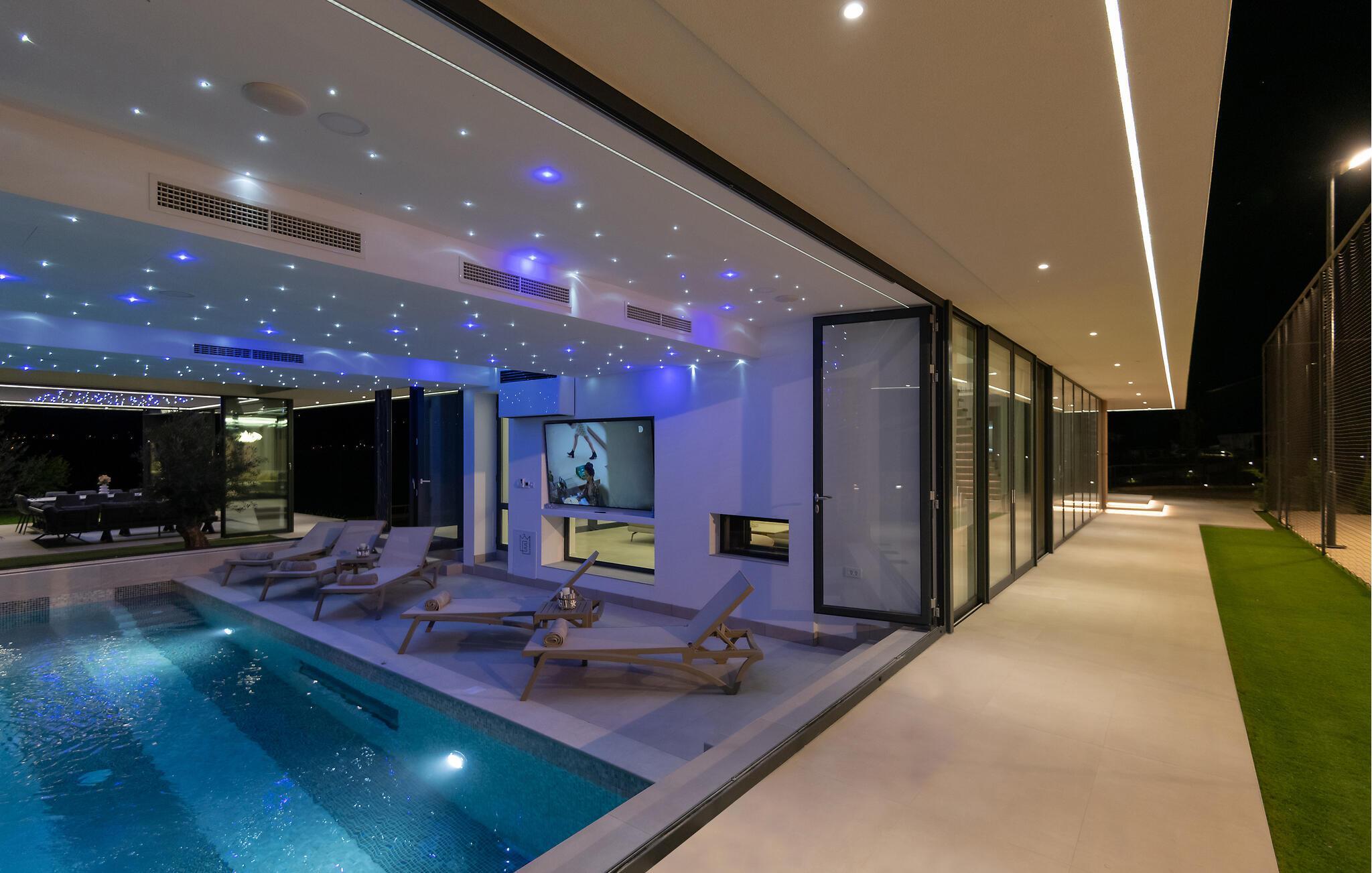Umgeben von einer malerischen Landschaft, bietet dieses große Ferienhaus in Grubine Platz für bis zu vier Familien, die hier einen luxuriösen Urlaub in völliger Ruhe inmitten der Natur genießen können. Starten Sie in den Tag mit einem erfrischenden Bad im Innenpool, der für angenehme Stunden im Wasser sorgt, oder im Whirlpool auf der fantastischen Terrasse mit schönem Blick auf die umliegende Landschaft. Entspannen Sie anschließend im eleganten Ambiente Ihres Ferienhauses, das Ihnen höchsten Komfort bietet. Hier ist Platz für alle Urlaubsgäste, sei es auf einem der bequemen Sofas oder am langen Esstisch bei den gemeinsamen Mahlzeiten.