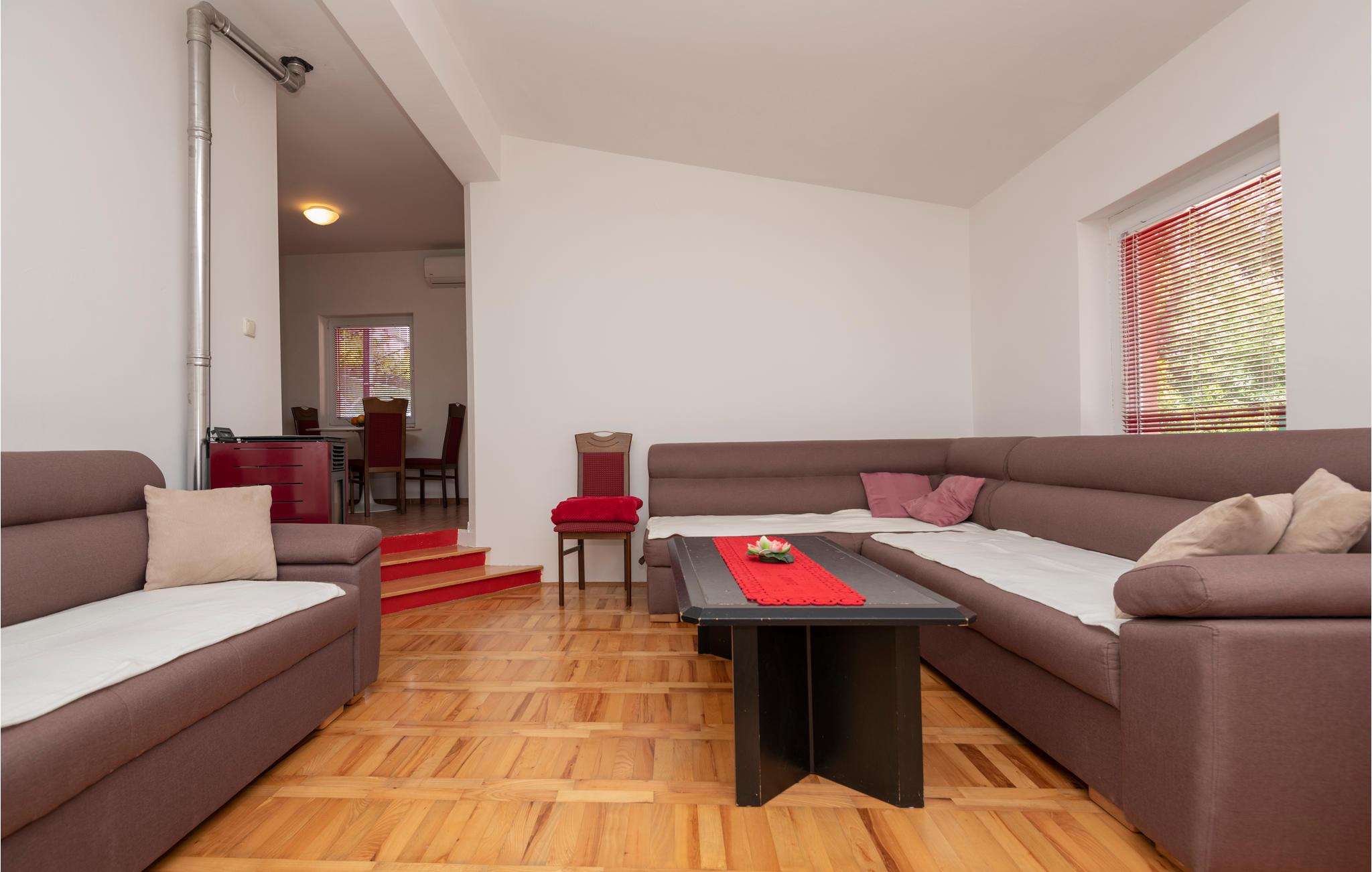 Dieses schöne und einfach eingerichtete Ferienhaus liegt in der Nähe der Stadt Imotski. Das Haus steht auf einem komplett eingezäunten Grundstück und es gibt einen Swimmingpool, der an heißen Sommertagen für die nötige Erfrischung sorgt. Die Terrasse mit Grill vor dem Haus ist ideal für gemütliche Zusammenkünfte. Das Erdgeschoss und der erste Stock sind durch eine Innentreppe verbunden. Lassen Sie alle Sorgen hinter sich und genießen Sie die Ruhe, in der Sie am Pool entspannen können. Abends lockt der Grill für ein leckeres Barbecue mit regionalen Produkten.